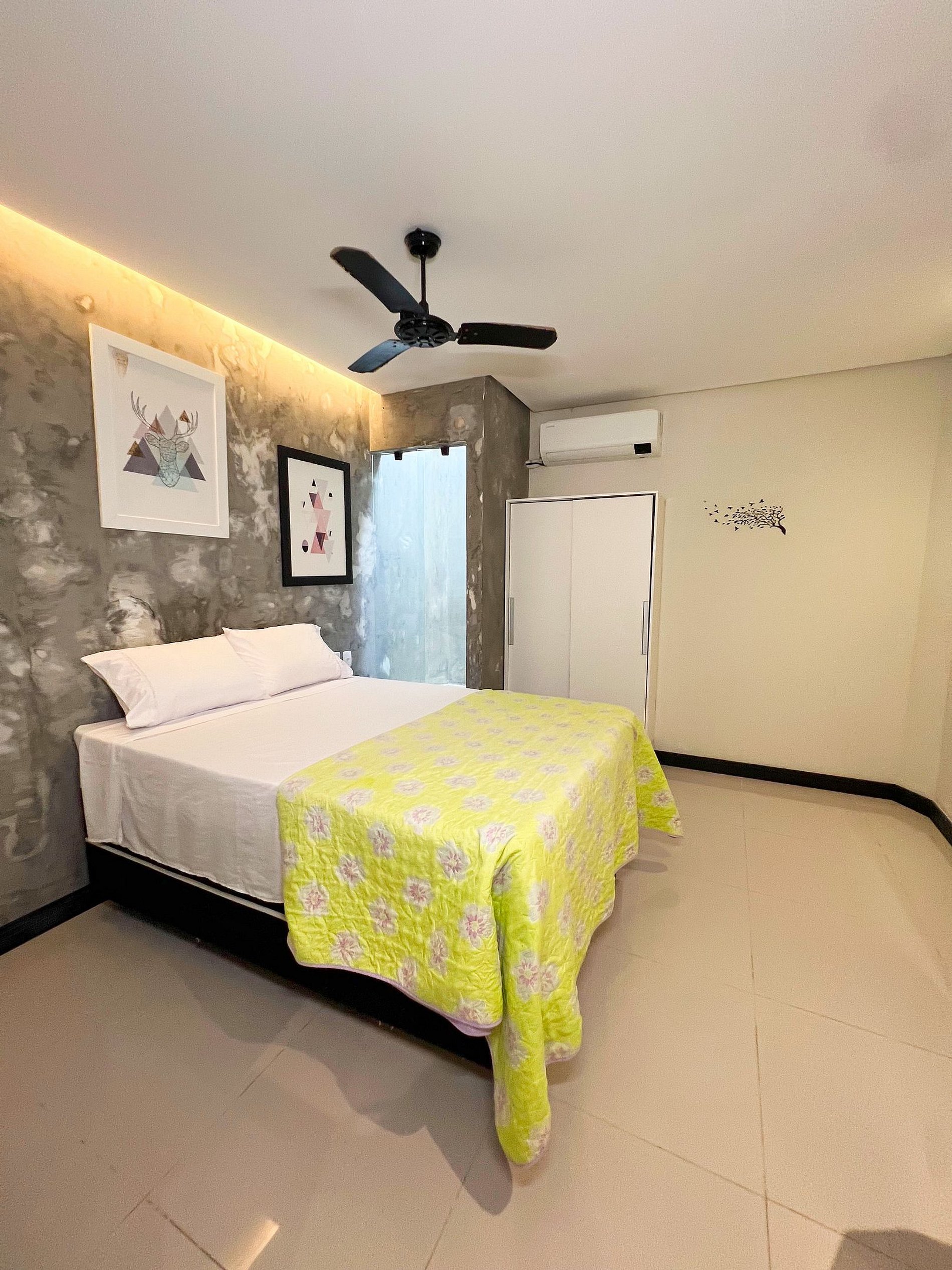 Ideal para até 2 pessoas, o espaço oferece uma confortável cama de casal, ar-condicionado para noites tranquilas e uma cozinha completa para quem ama praticidade.