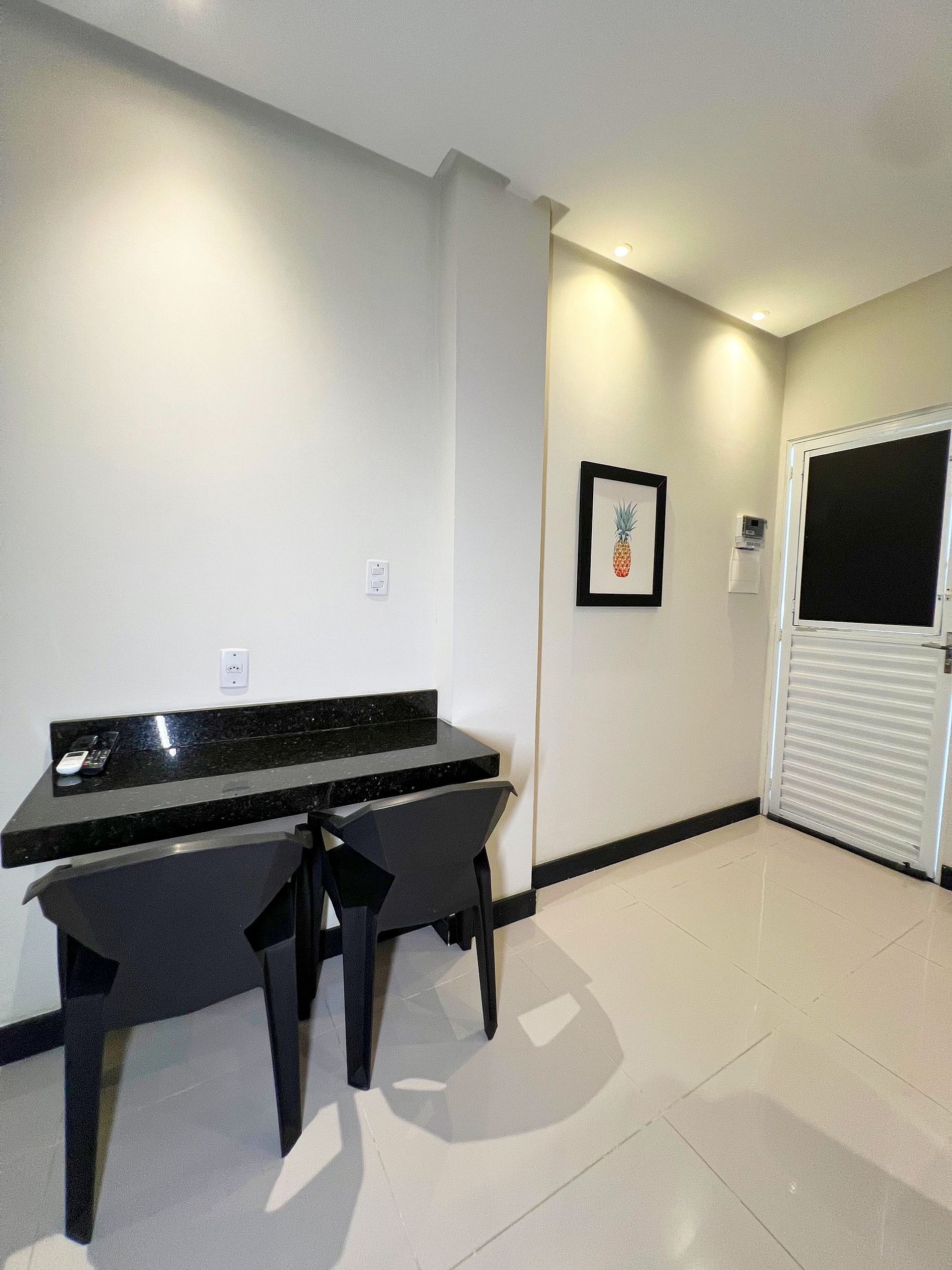 Conta ainda com Wi-Fi, banheiro privativo e uma charmosa área externa com mesinha voltada para a piscina compartilhada — perfeita para curtir momentos relaxantes ao ar livre.