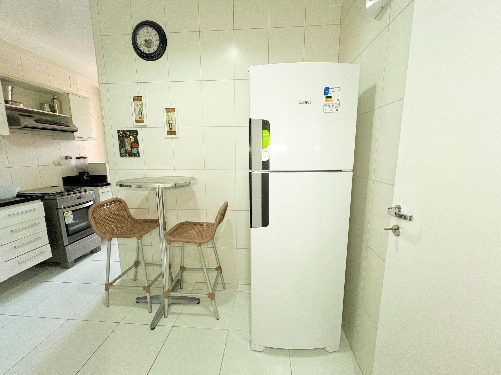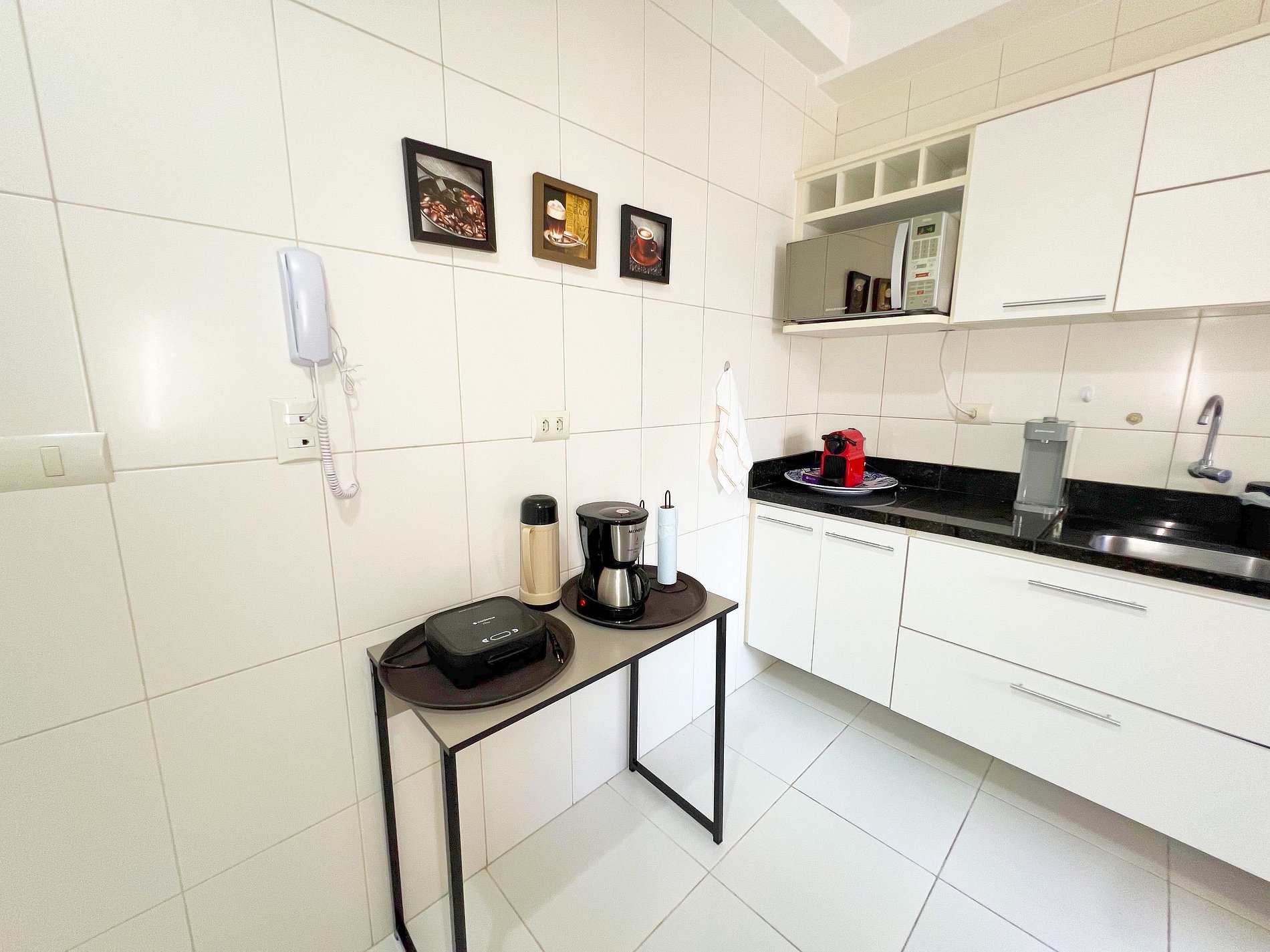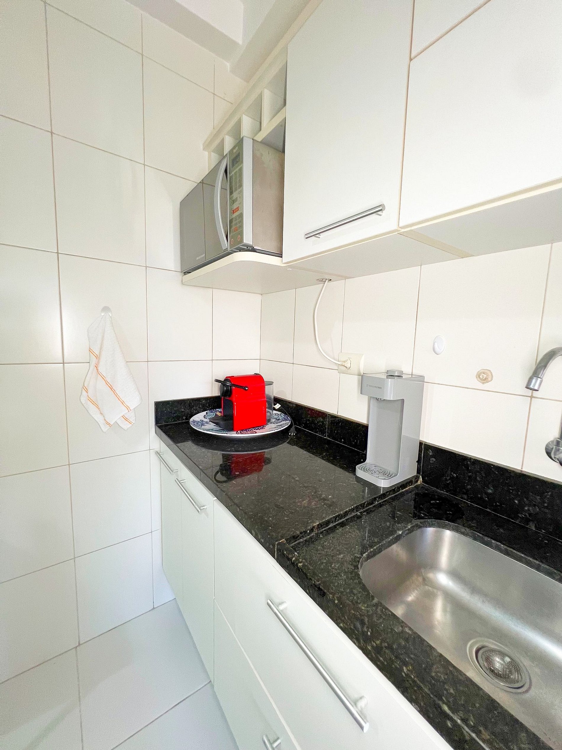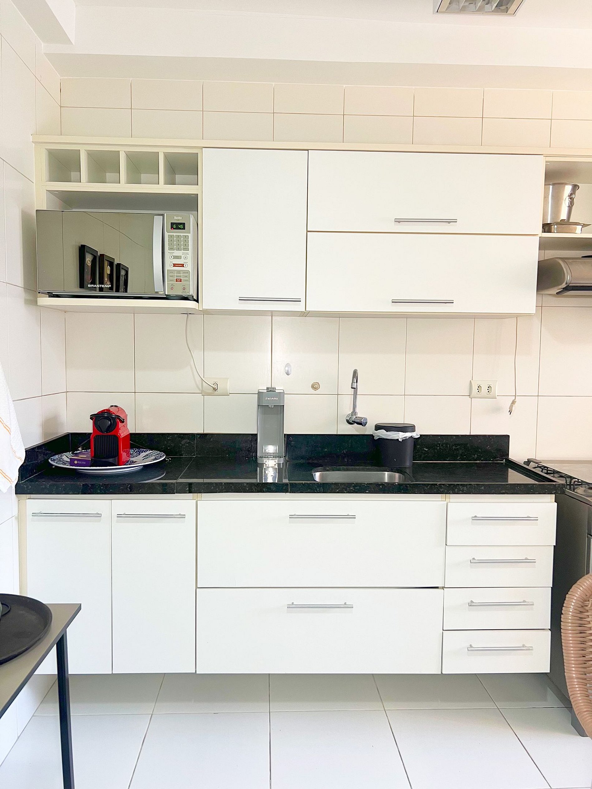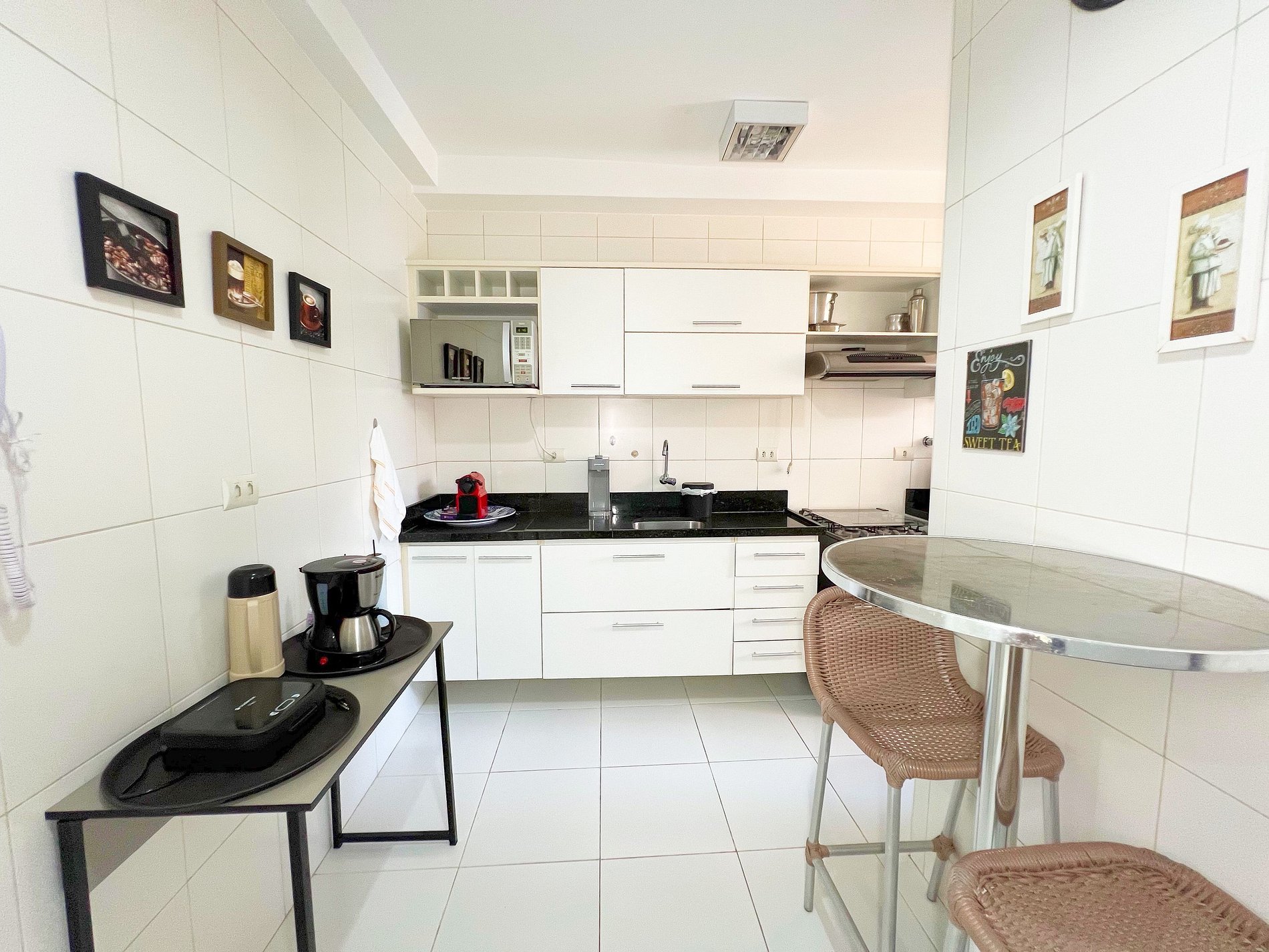 - Cozinha Gourmet Completa: Totalmente equipada para você se sentir em casa. Possui fogão, forno, geladeira, micro-ondas, além de eletrodomésticos essenciais como cafeteira, liquidificador e um prático filtro de água.