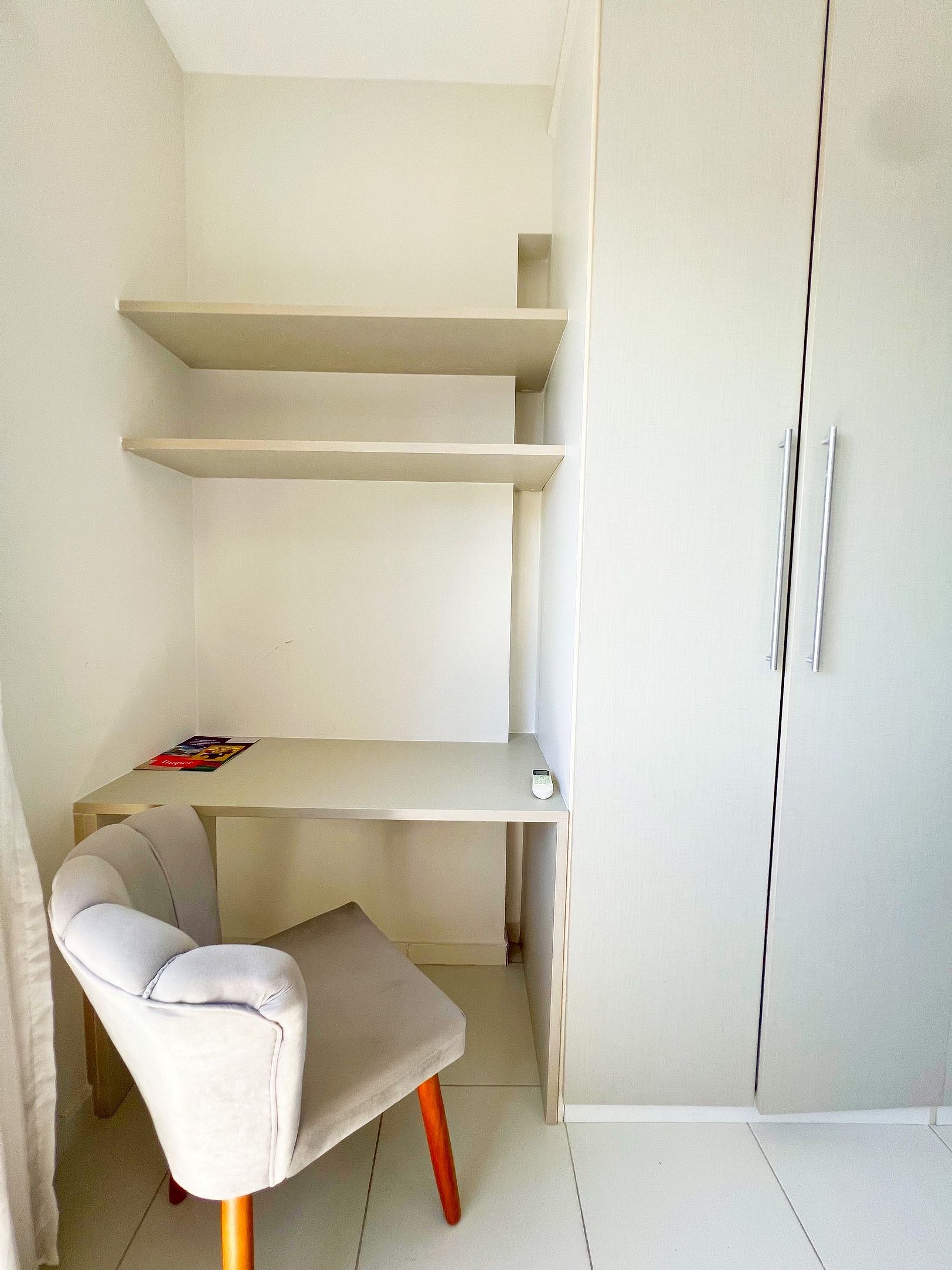 - Suíte Master (Quarto 1): Um verdadeiro refúgio com Cama Queen, Ar-Condicionado, armário amplo e uma mesa de trabalho dedicada — ideal para nômades digitais ou quem precisa de um espaço para home office.