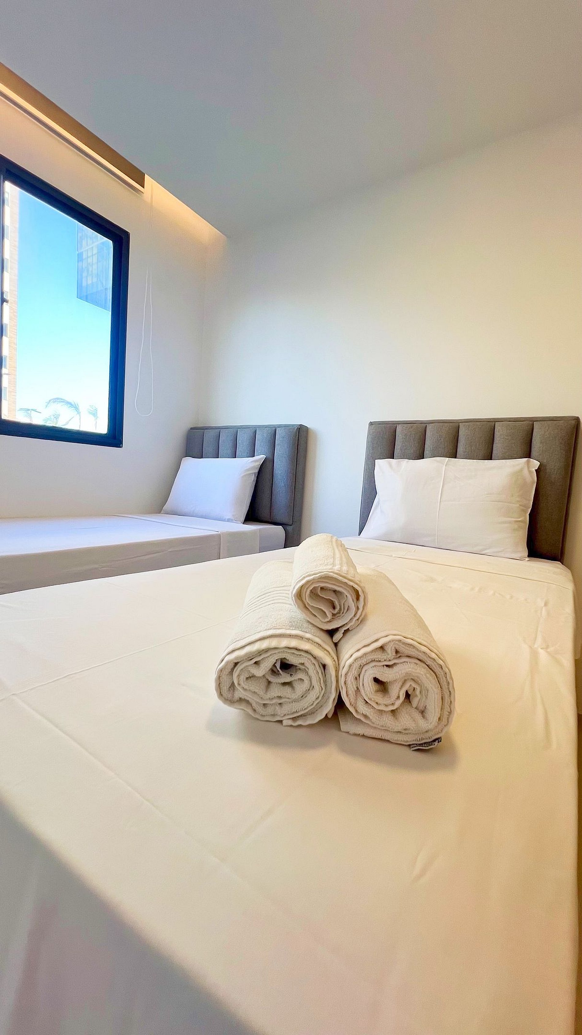 Duas confortáveis camas de solteiro.