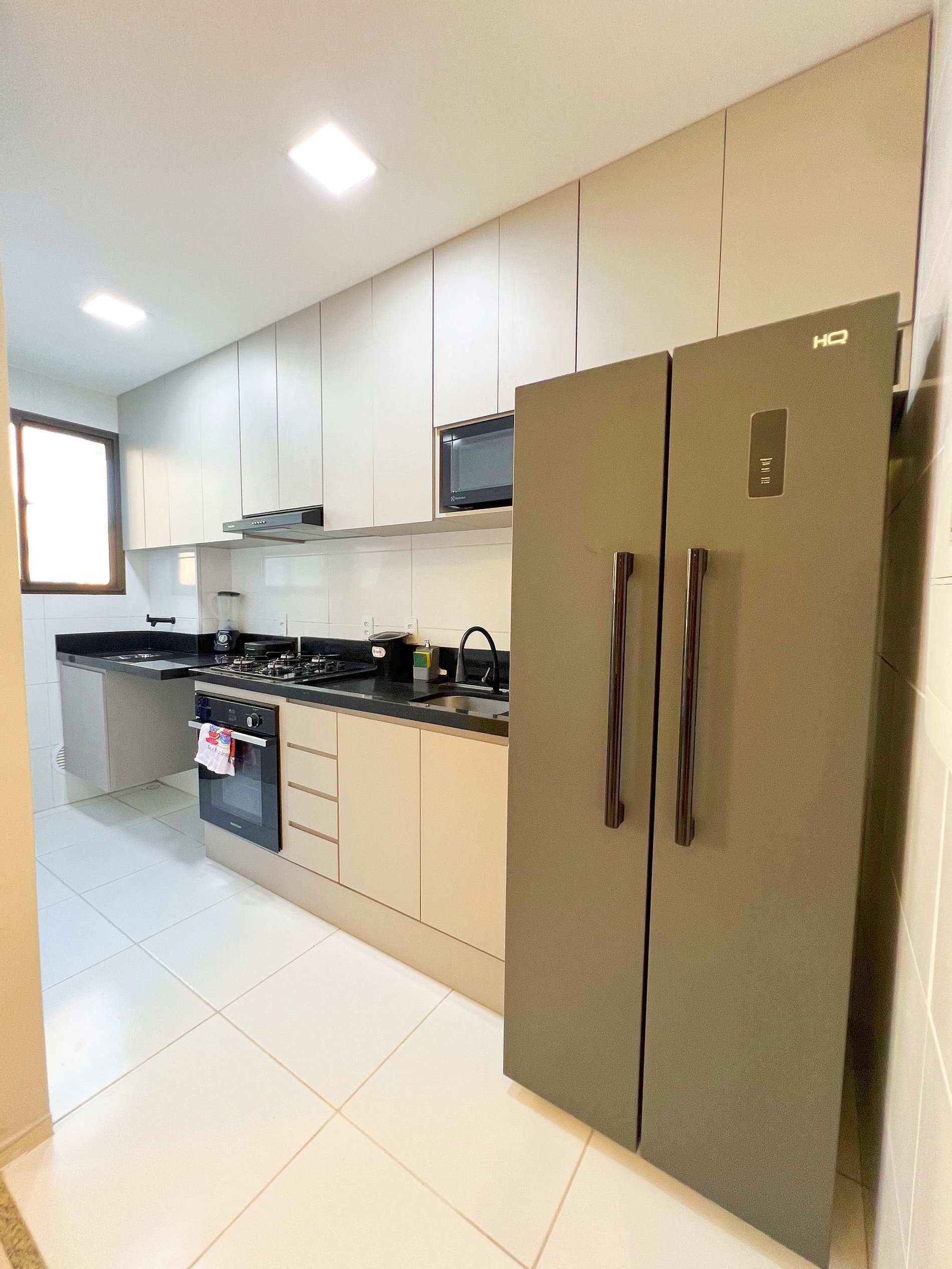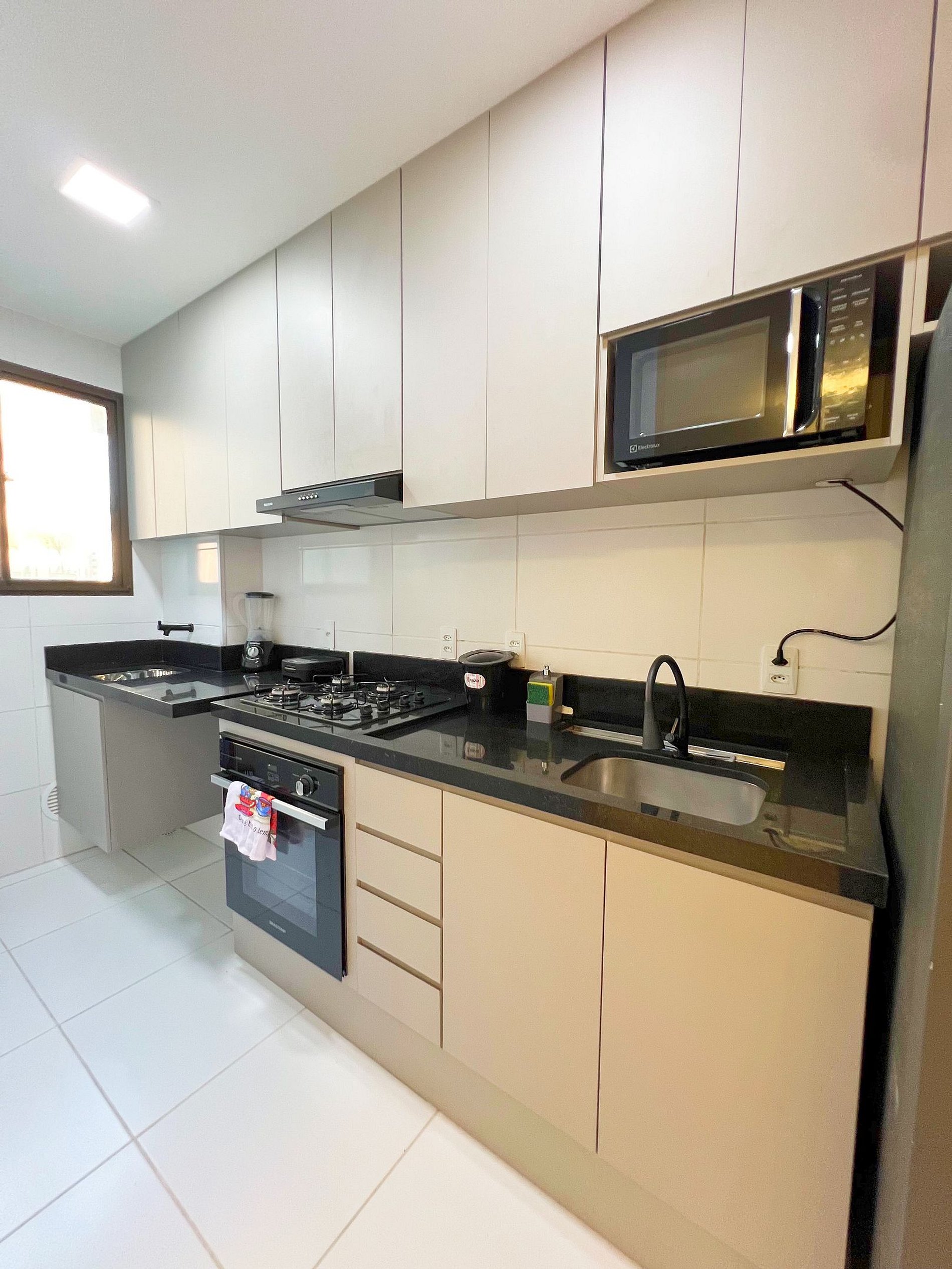 Extremamente bem equipada com geladeira, fogão, micro-ondas, sanduicheira, liquidificador e todos os utensílios que você precisa para preparar suas refeições como se estivesse em casa.