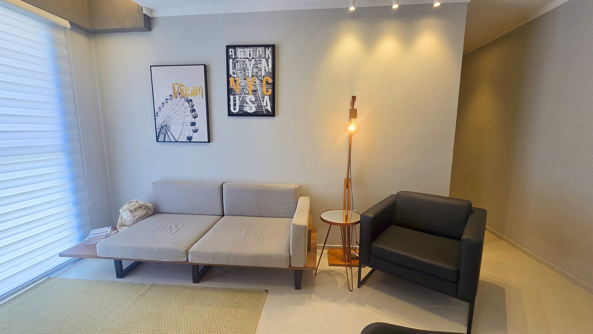 Área de estar com sofá/cadeira