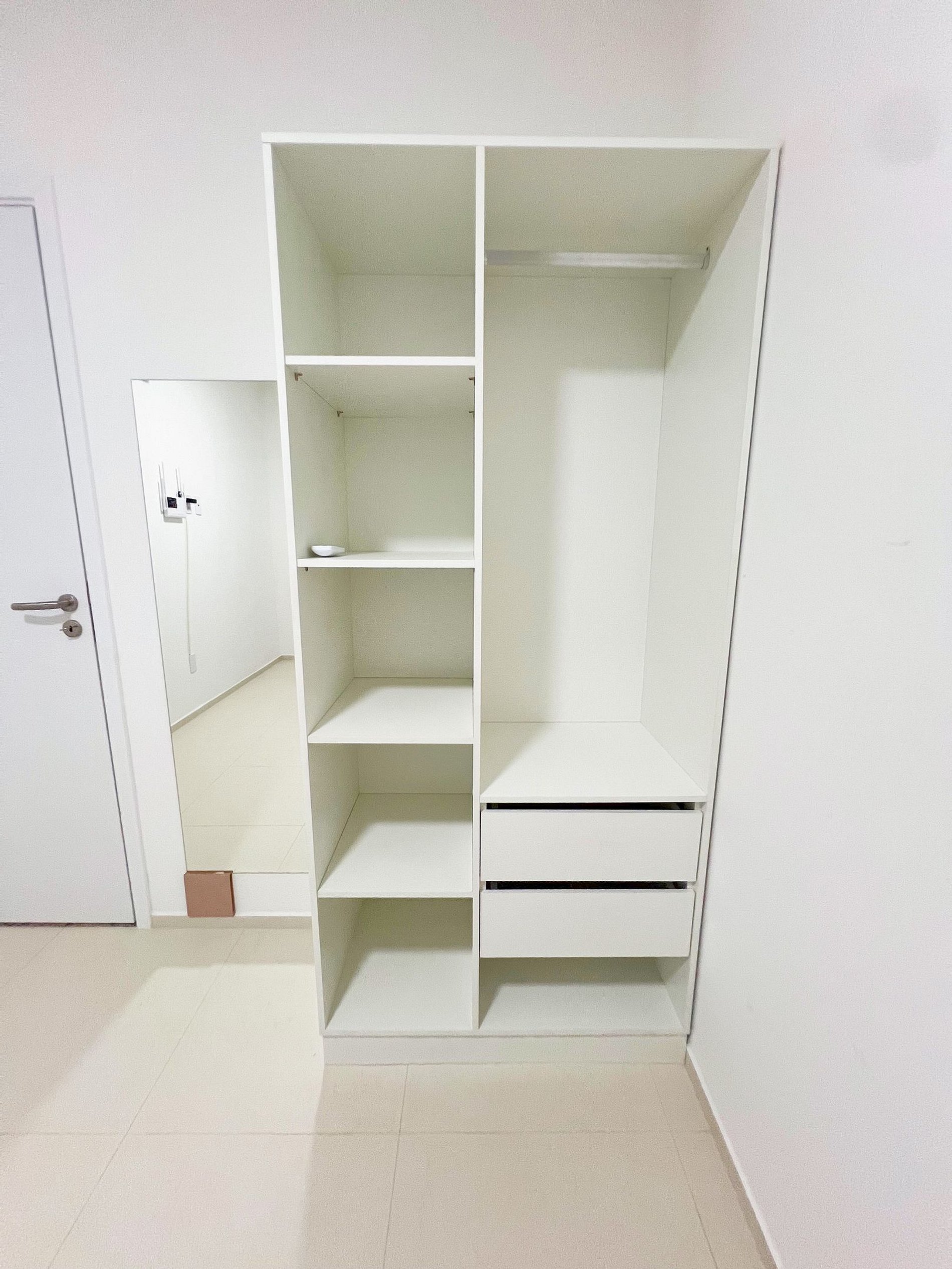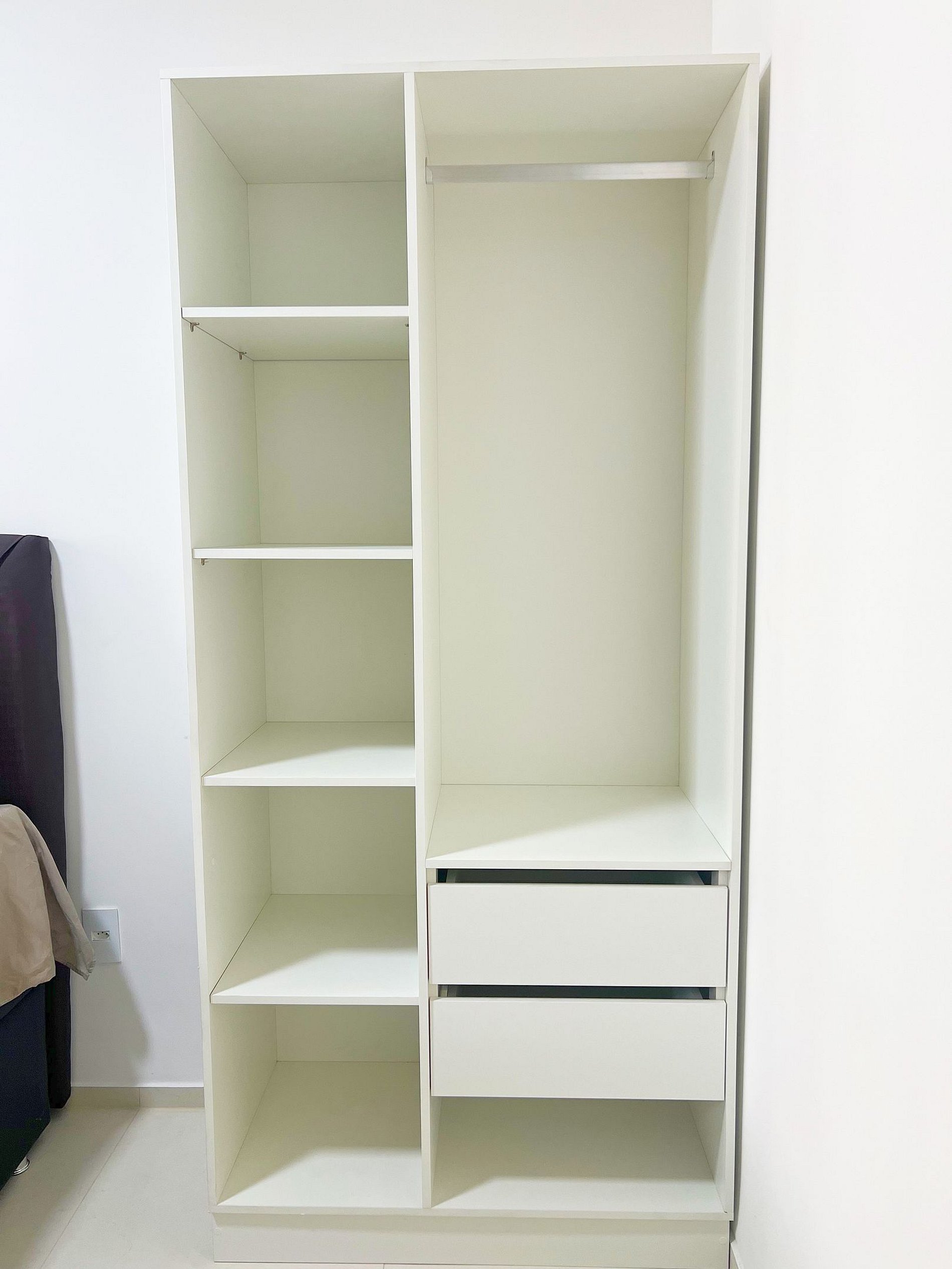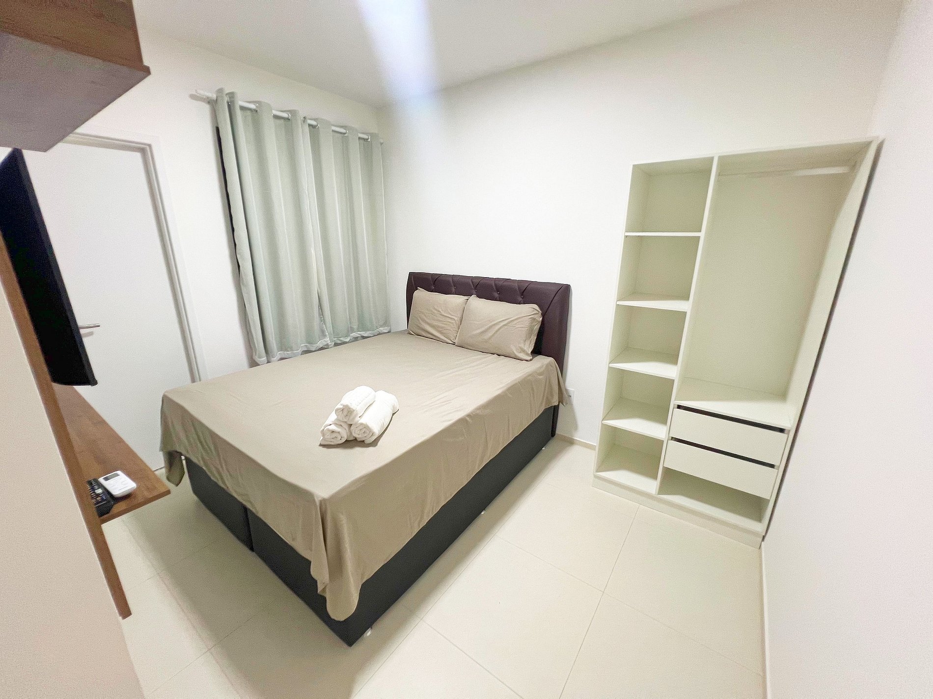 Ar-Condicionado e armário espaçoso para organizar suas roupas.