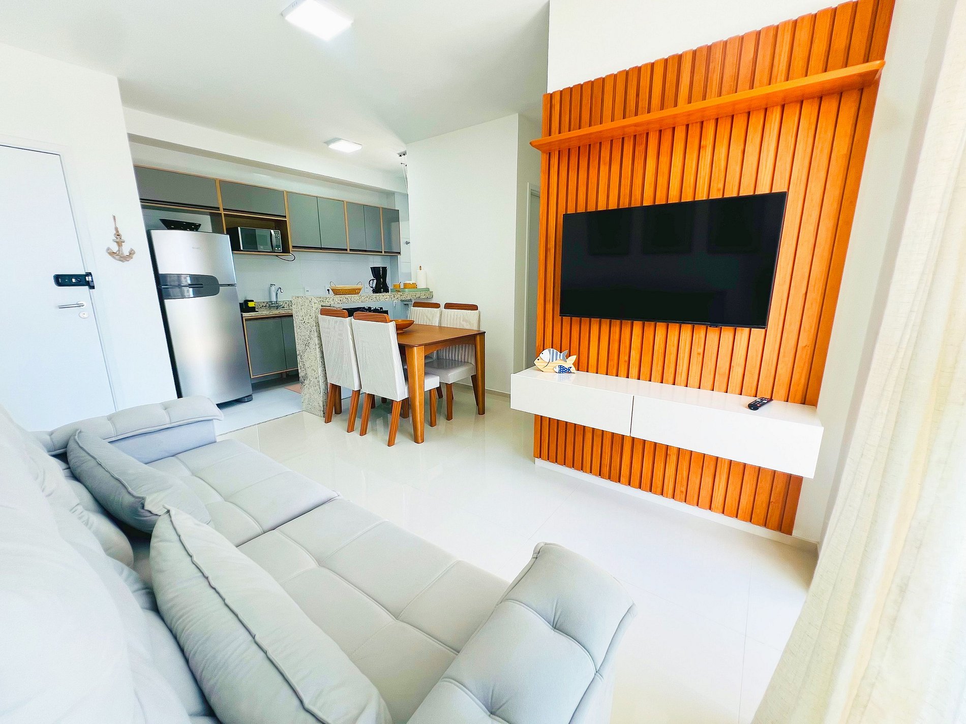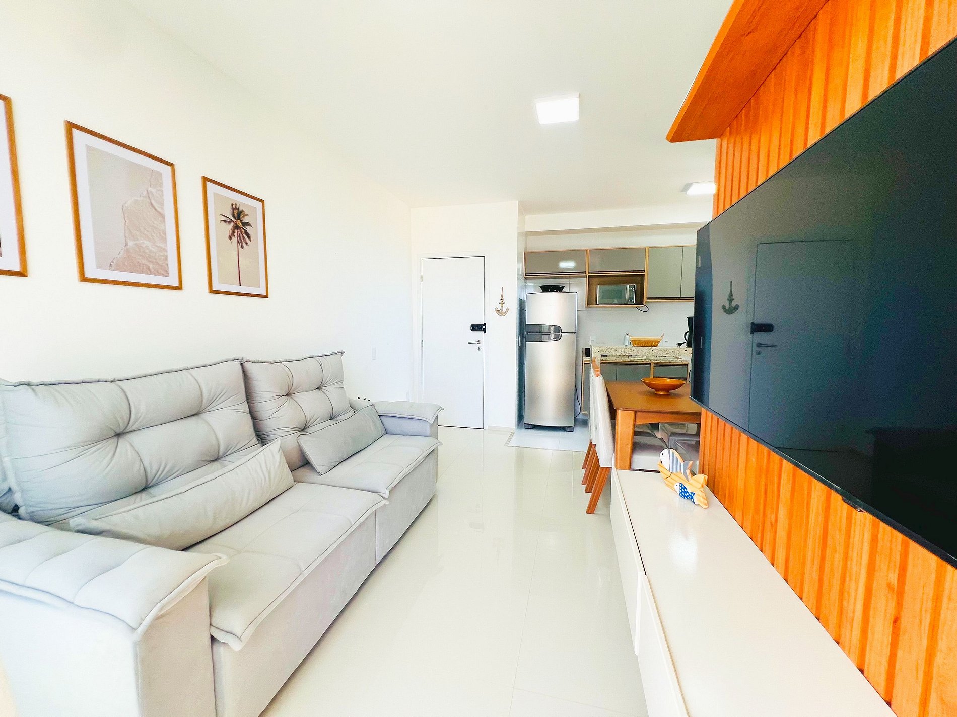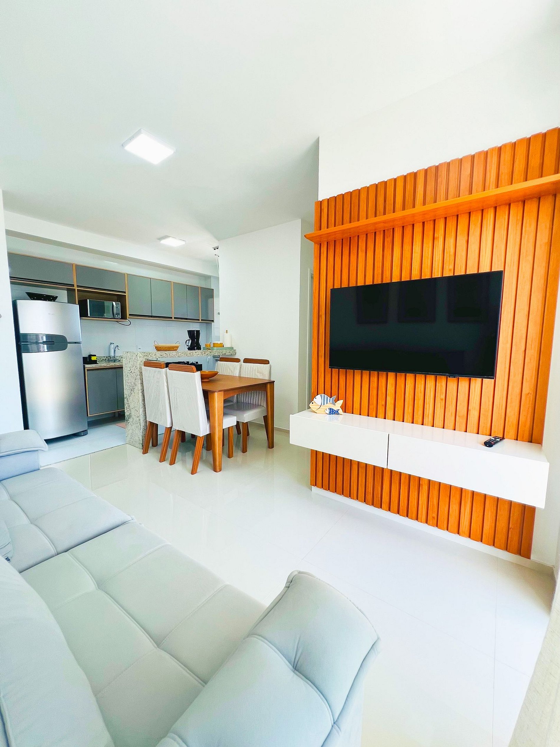 Sala de Estar: Um ambiente agradável com Smart TV para seus momentos de lazer e um sofá