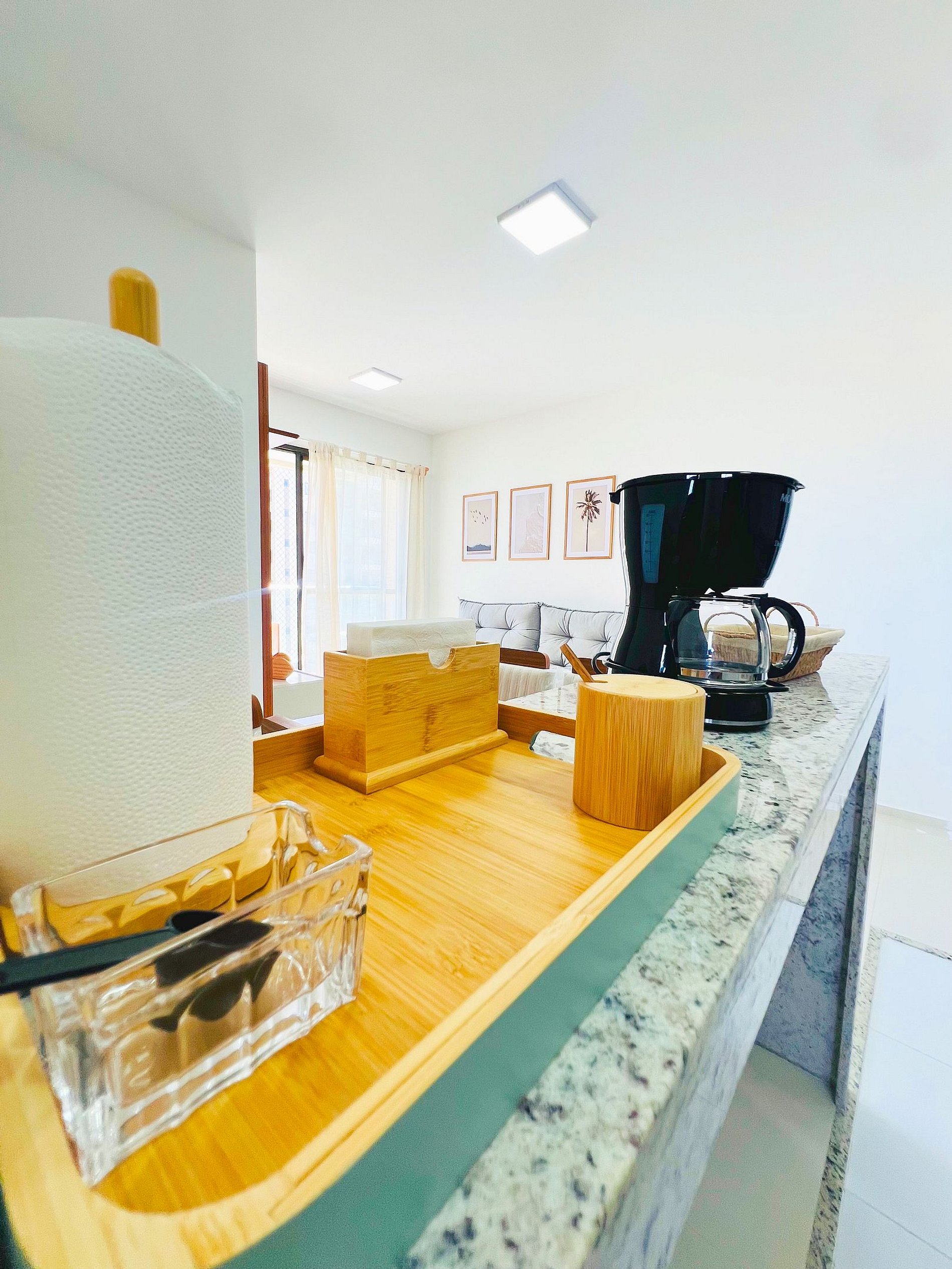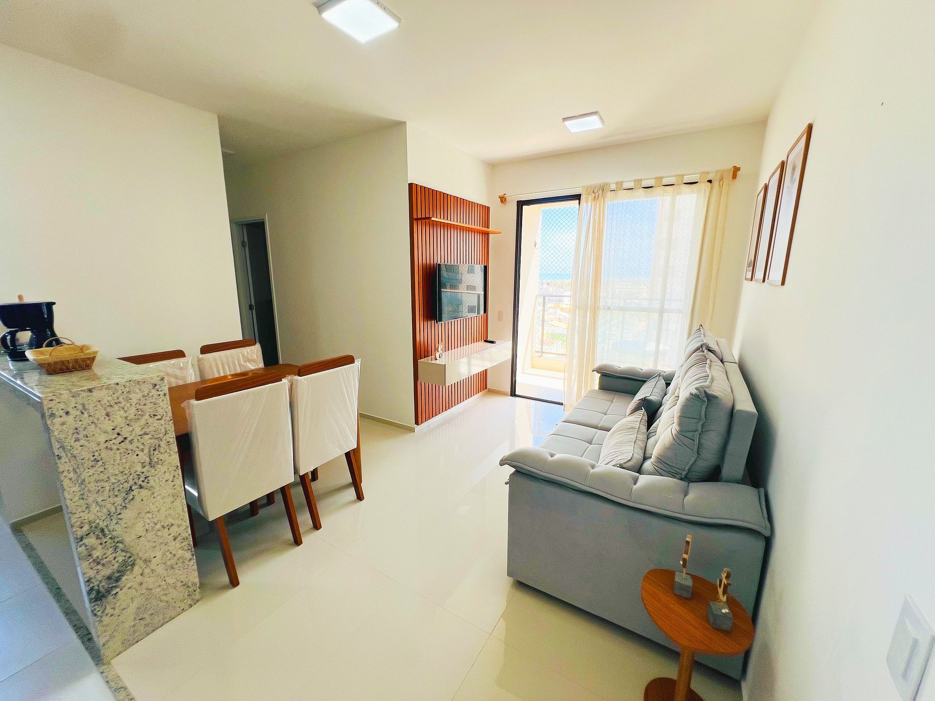 Apê inteiro, aconchegante e com decoração moderna, ideal para até 5 hóspedes. Localizado em andar alto com linda vista para o mar.