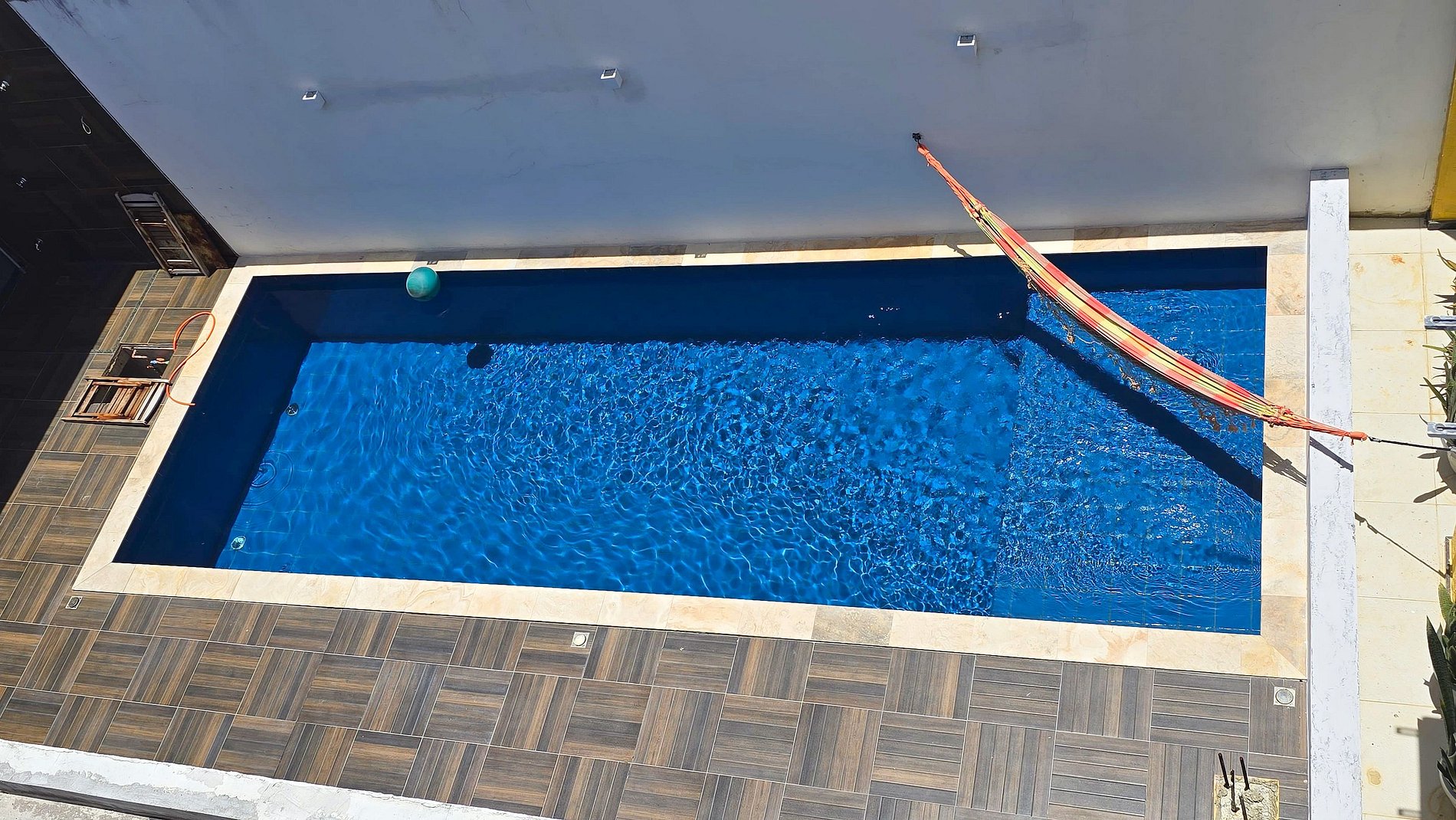 E o melhor? Uma mesinha, piscina e churrasqueira na área externa te espera para momentos inesquecíveis ao ar livre.