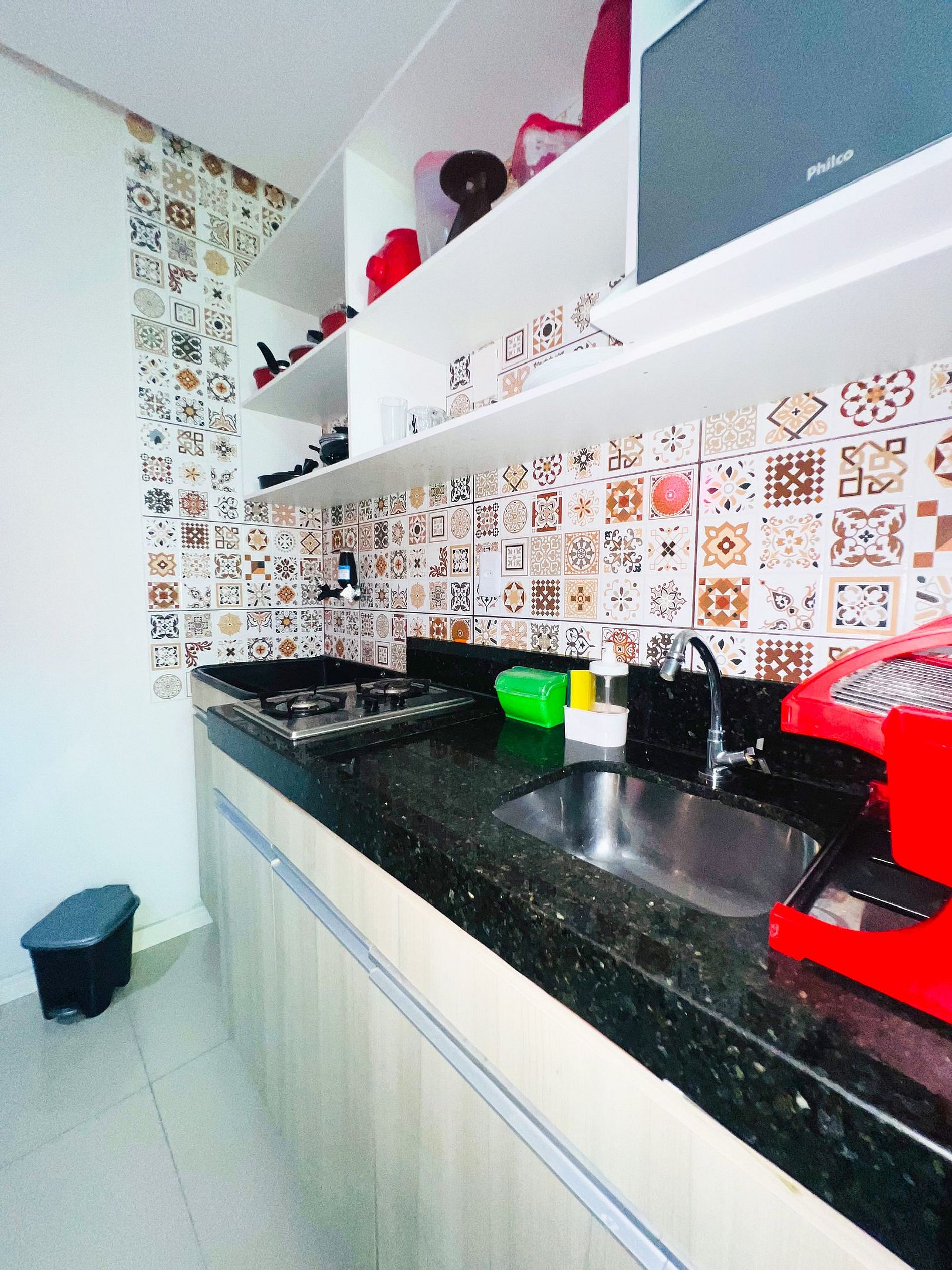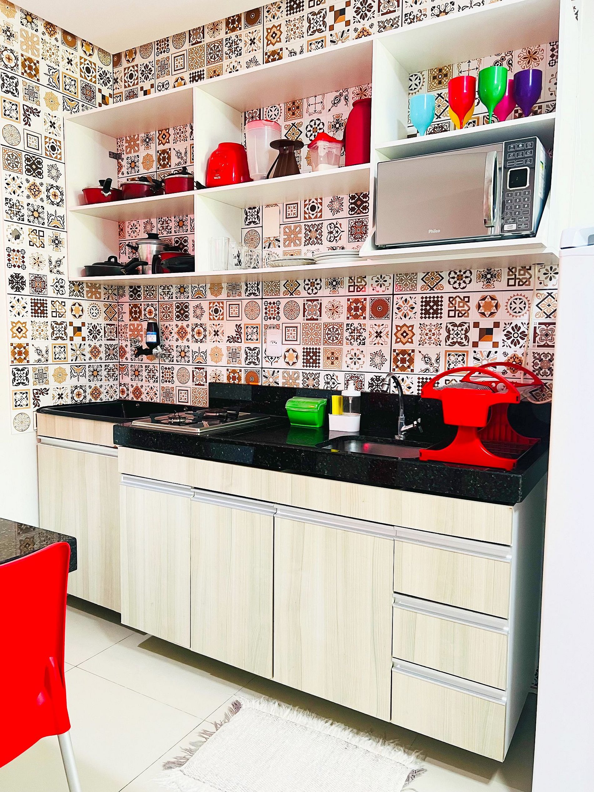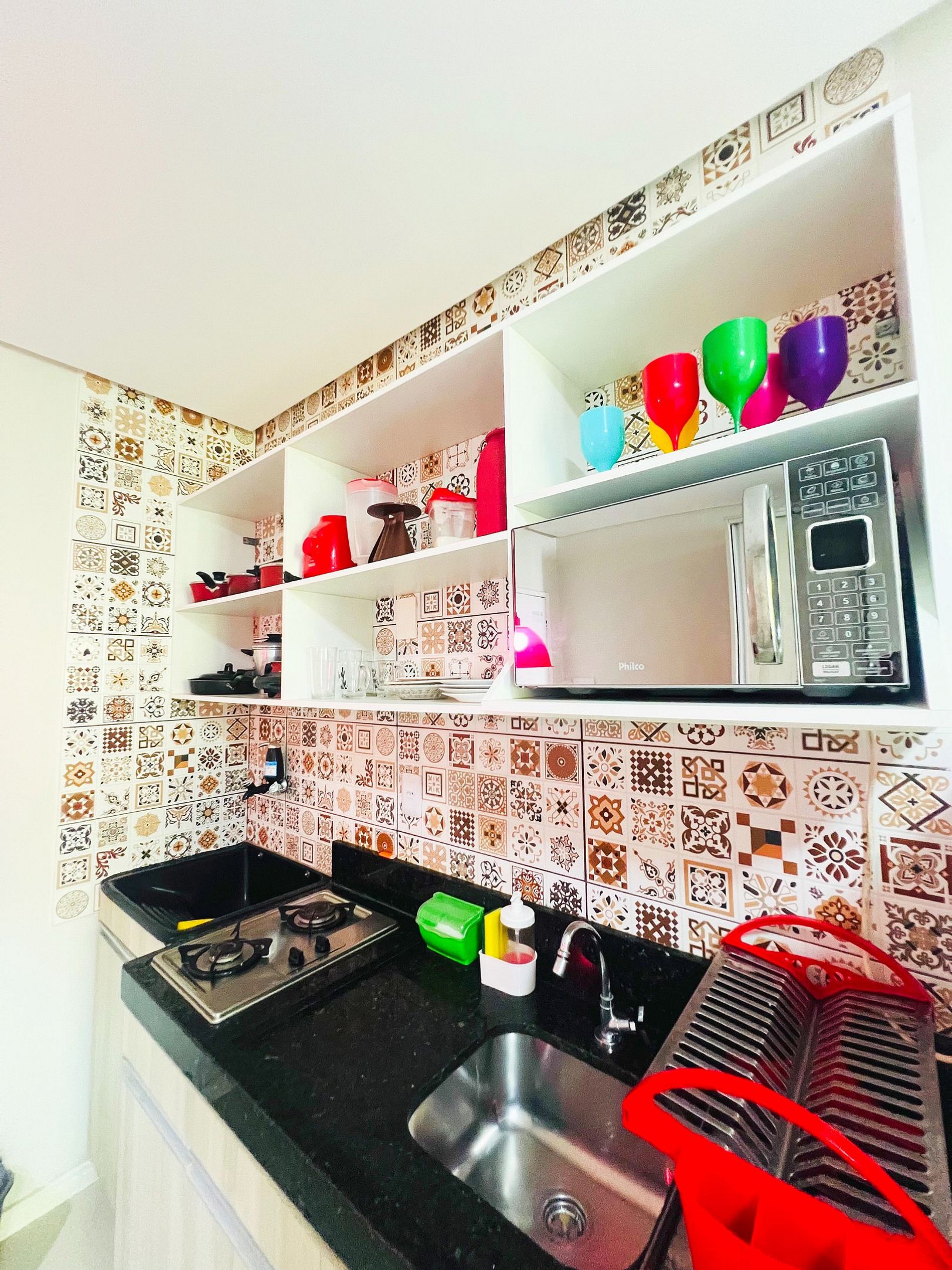 Cozinha compacta 100% equipada ( panelas, utensílios, talheres, copos, pratos, canecas, microondas, cooktop 2 bocas, sanduicheira, liquidificador)