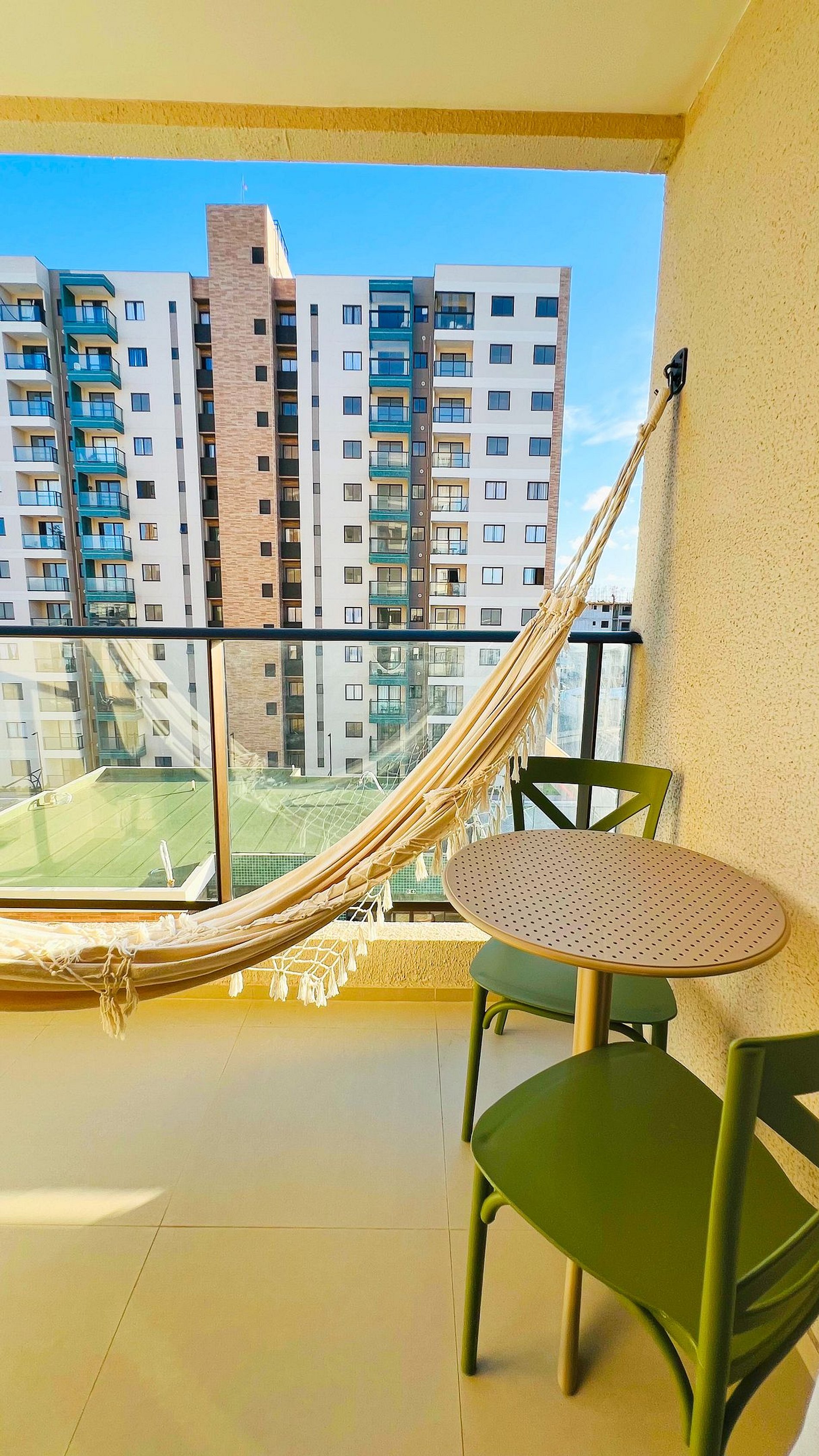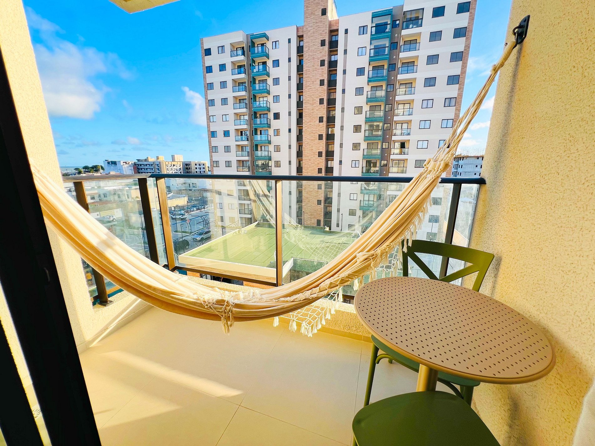 Varanda: Localizada em andar alto, é o nosso ponto alto! Desfrute da varanda com vista panorâmica para o mar e da brisa constante que torna o ambiente incrivelmente ventilado.