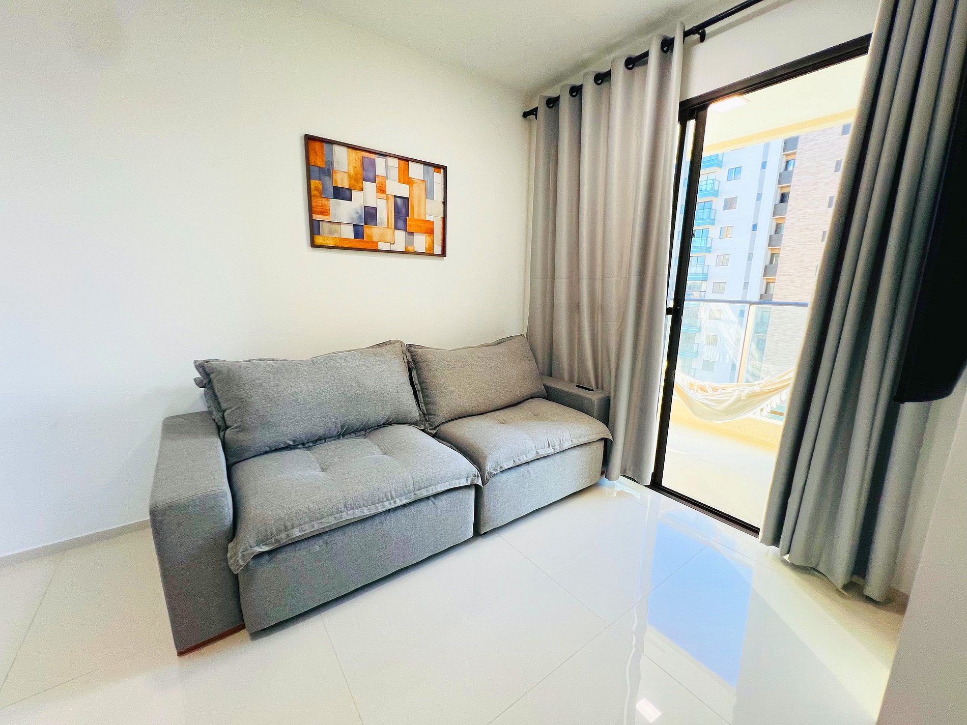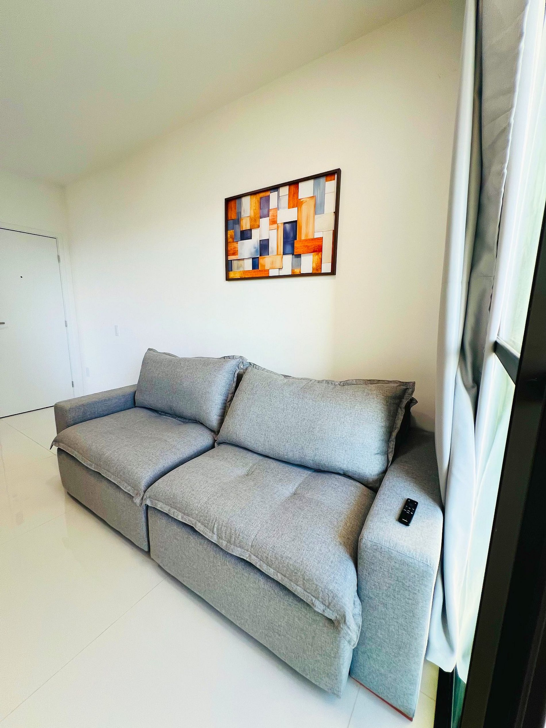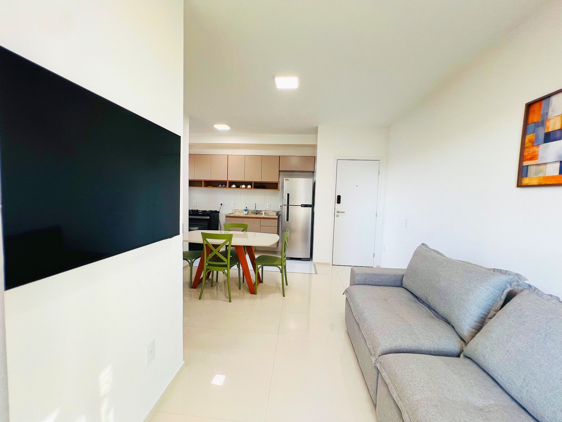 Apê inteiro, aconchegante e com decoração moderna, ideal para até 5 hóspedes. Localizado em andar alto com linda vista para o mar.