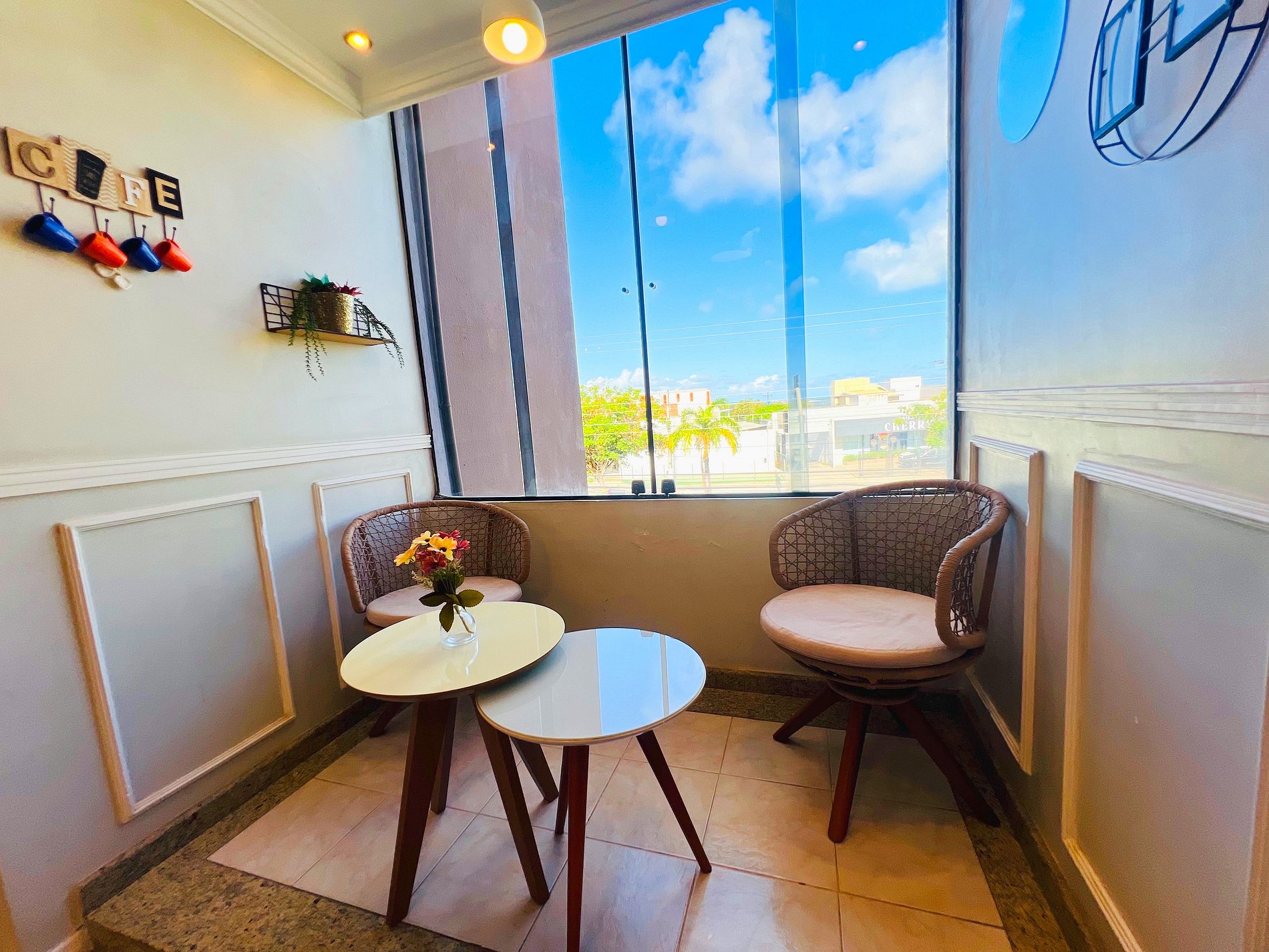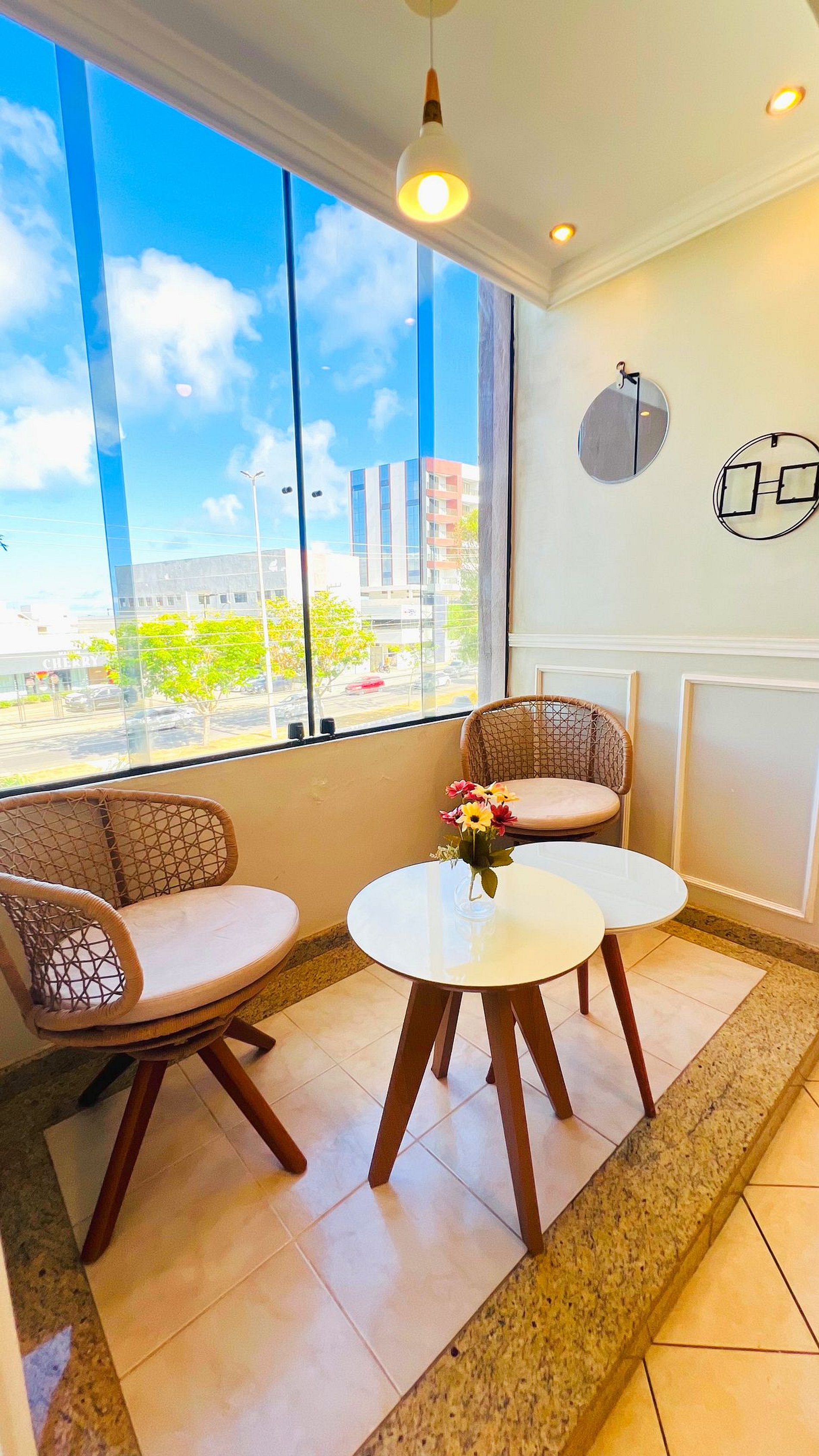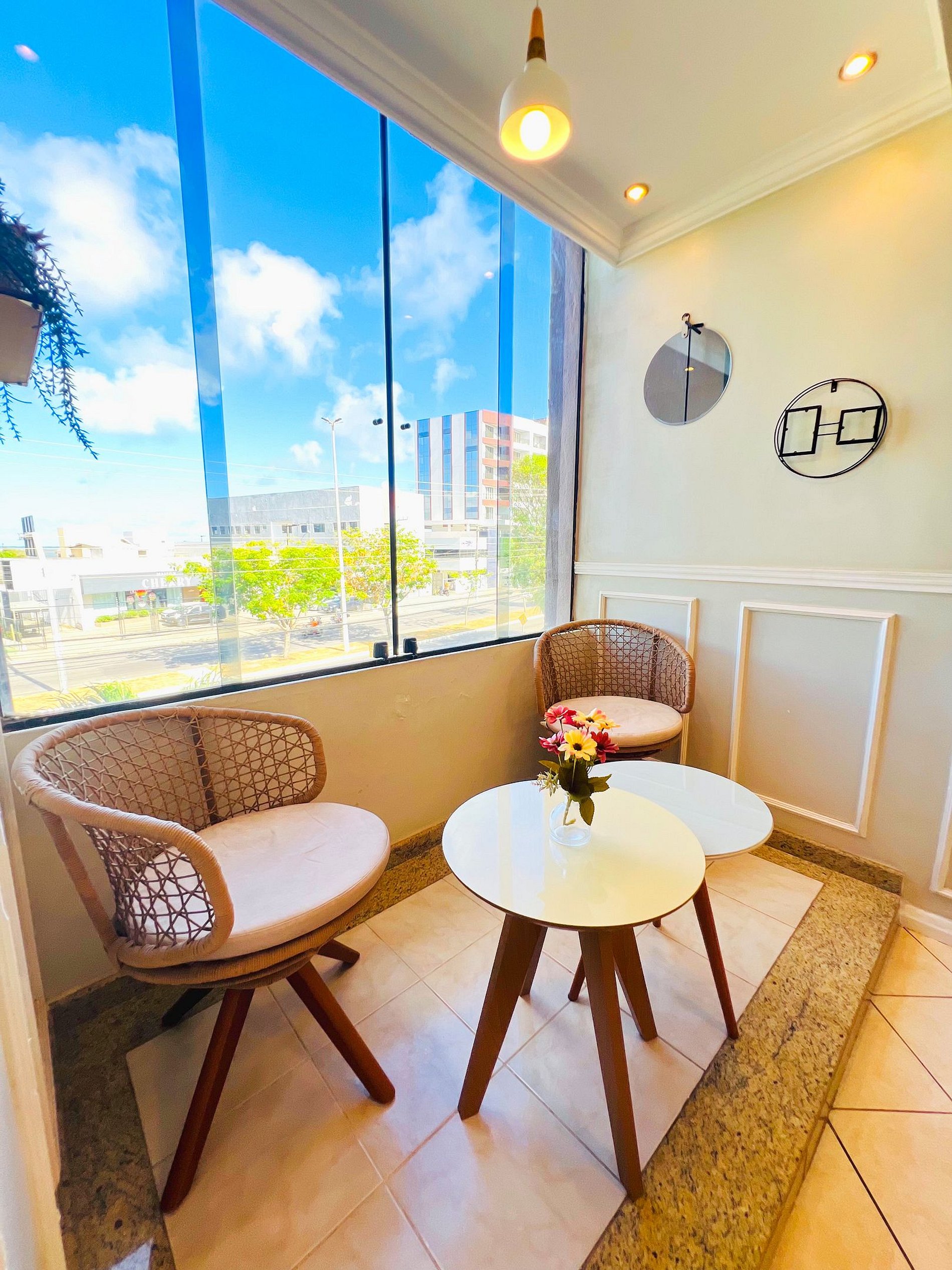 - Varanda Integrada: Um espaço iluminado com janelões de vidro, poltronas de vime e uma vista relaxante, perfeito para o café da manhã ou para ler um livro sentindo a brisa da cidade.