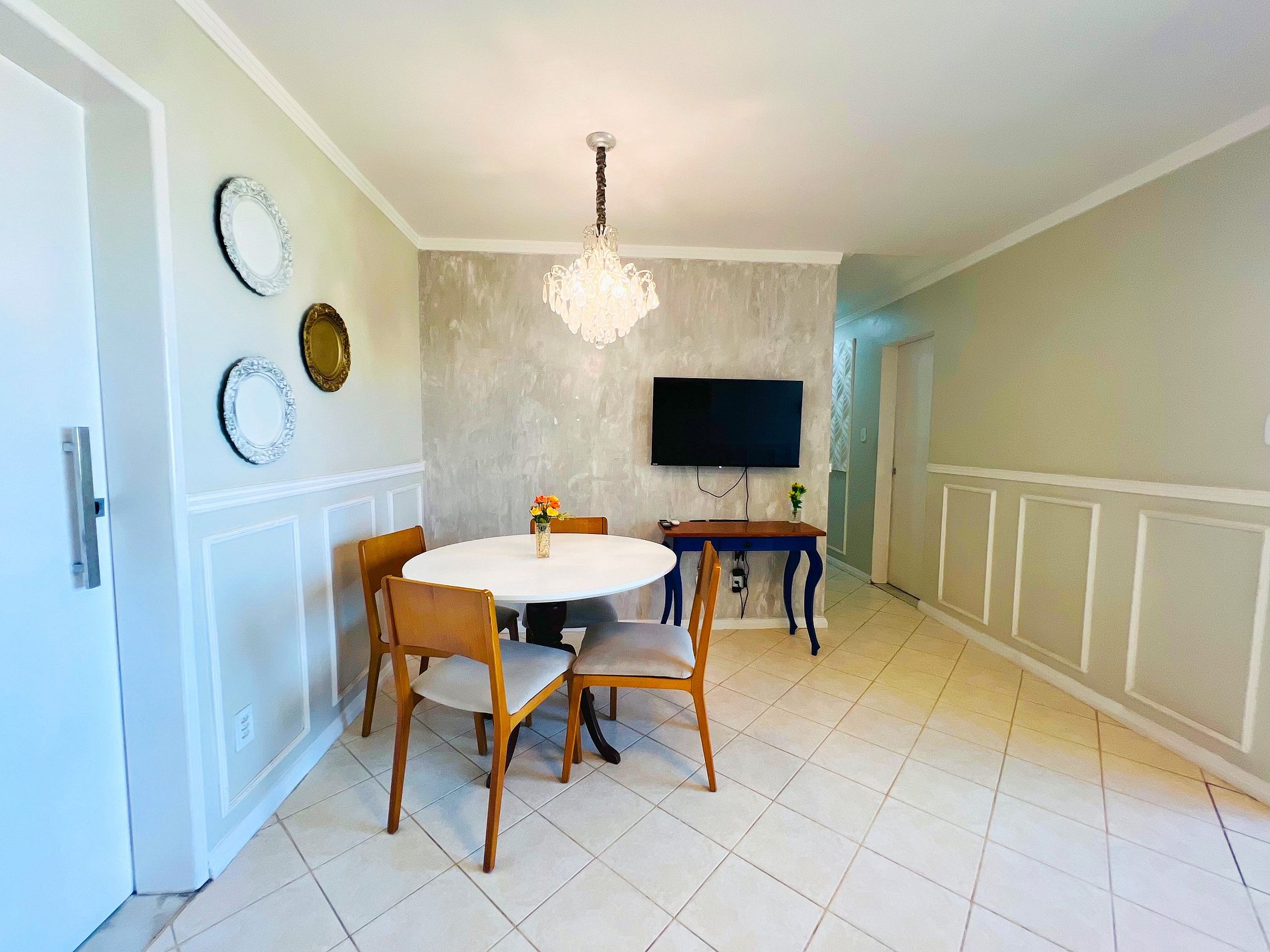 Para garantir o seu máximo conforto, investimos em uma decoração clássica e acolhedora, com iluminação pensada para relaxar após um dia de praia ou trabalho. O apartamento é amplo, ventilado e ideal para grupos maiores ou famílias que não abrem mão de privacidade, já que contamos com 4 quartos privativos.
