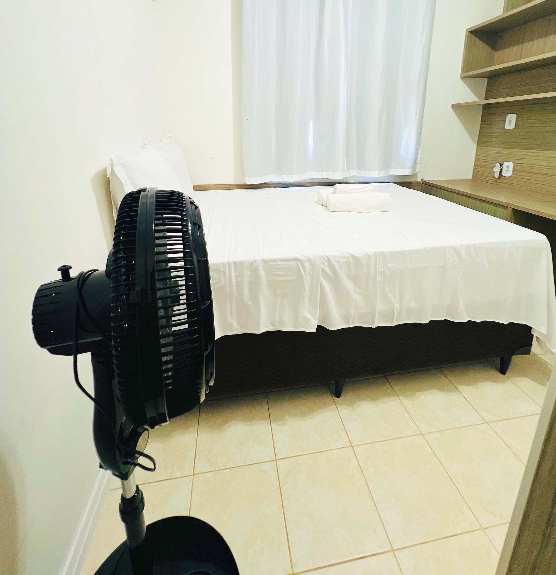 - Quarto 3: Equipado com uma cama de casal e ventilador portatil, ideal para crianças ou amigos.