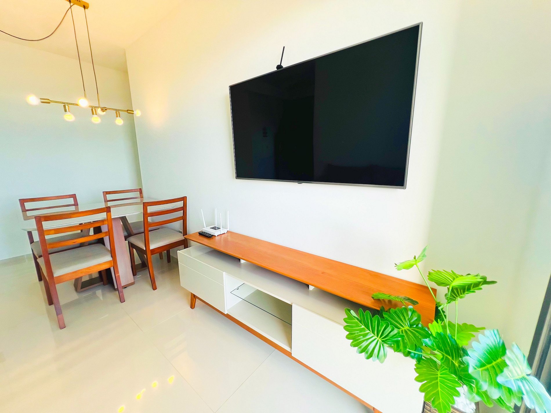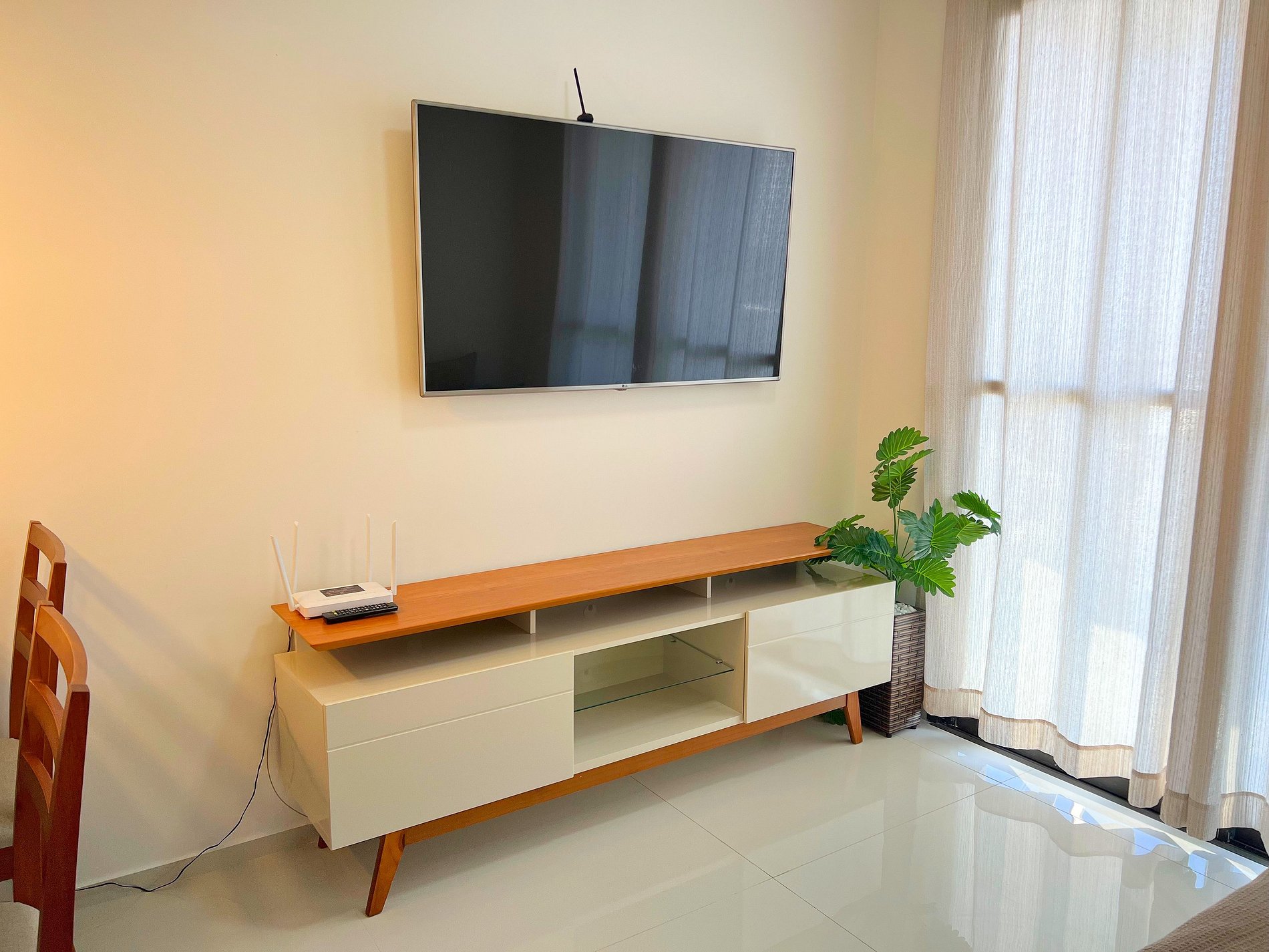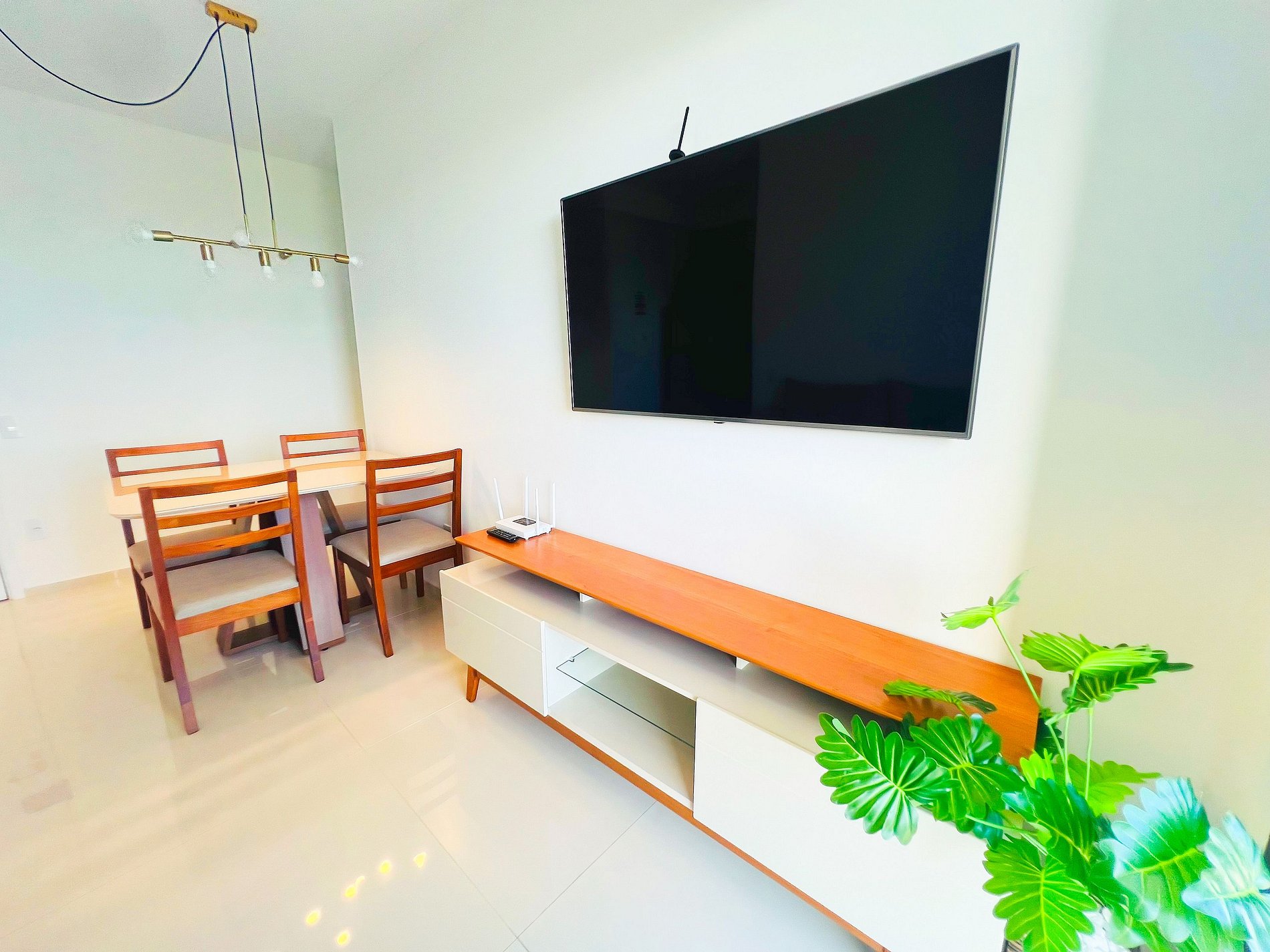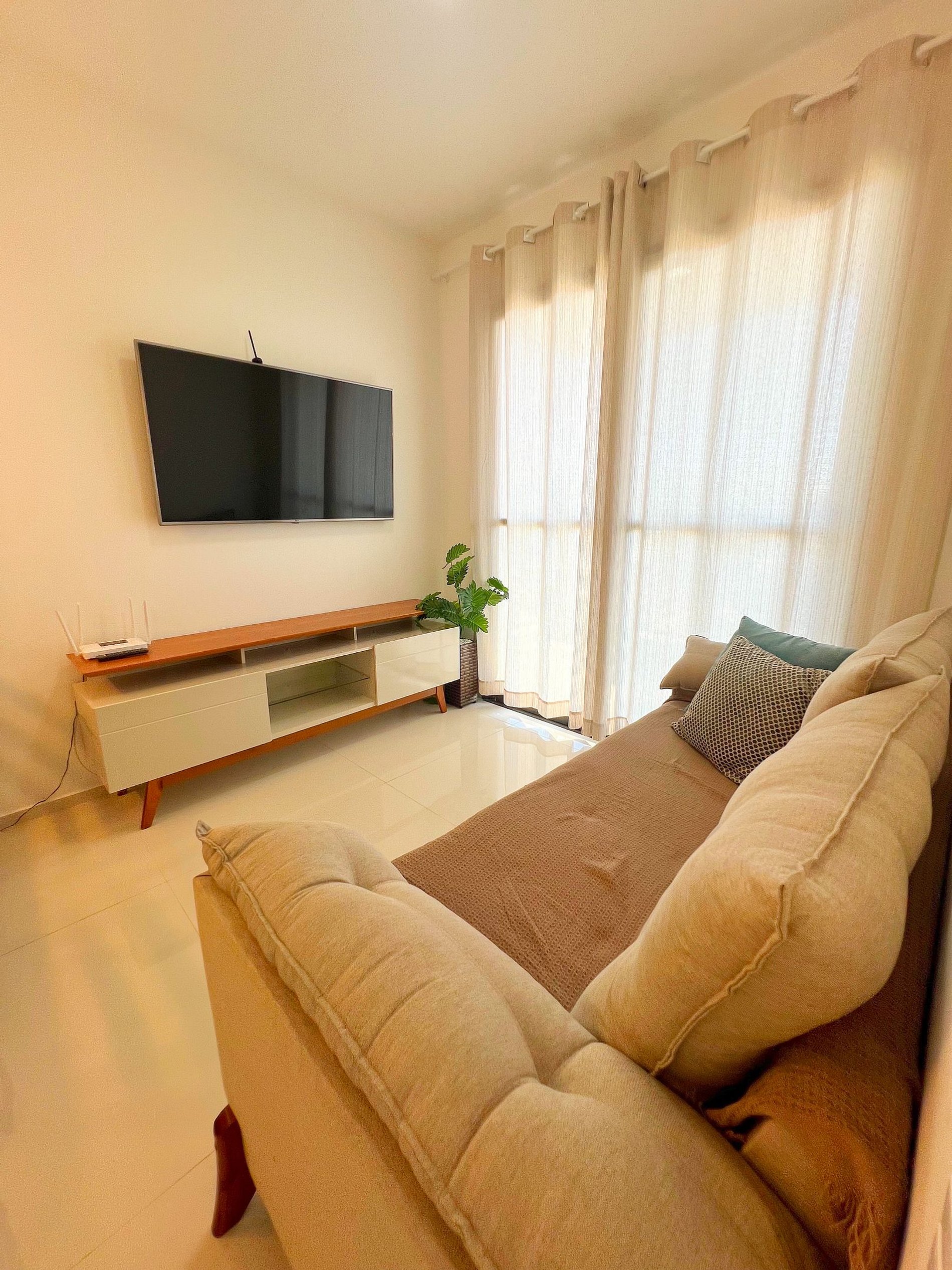 Sala de Estar: Um ambiente agradável com Smart TV para seus momentos de lazer e um sofá
