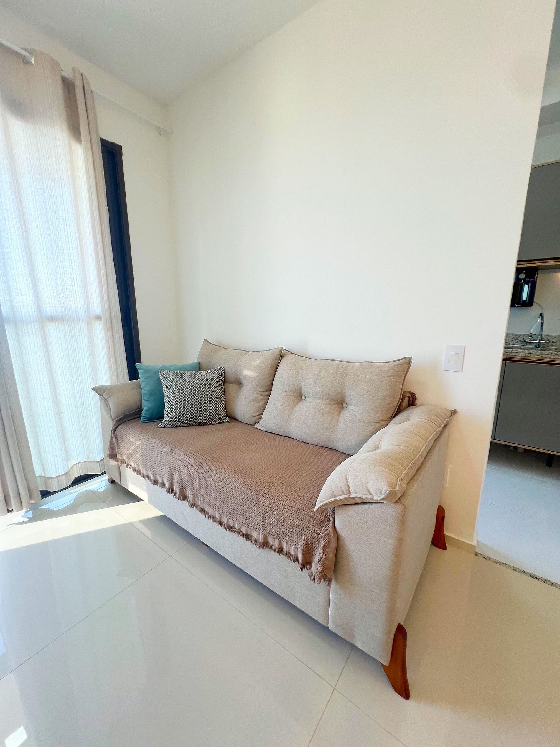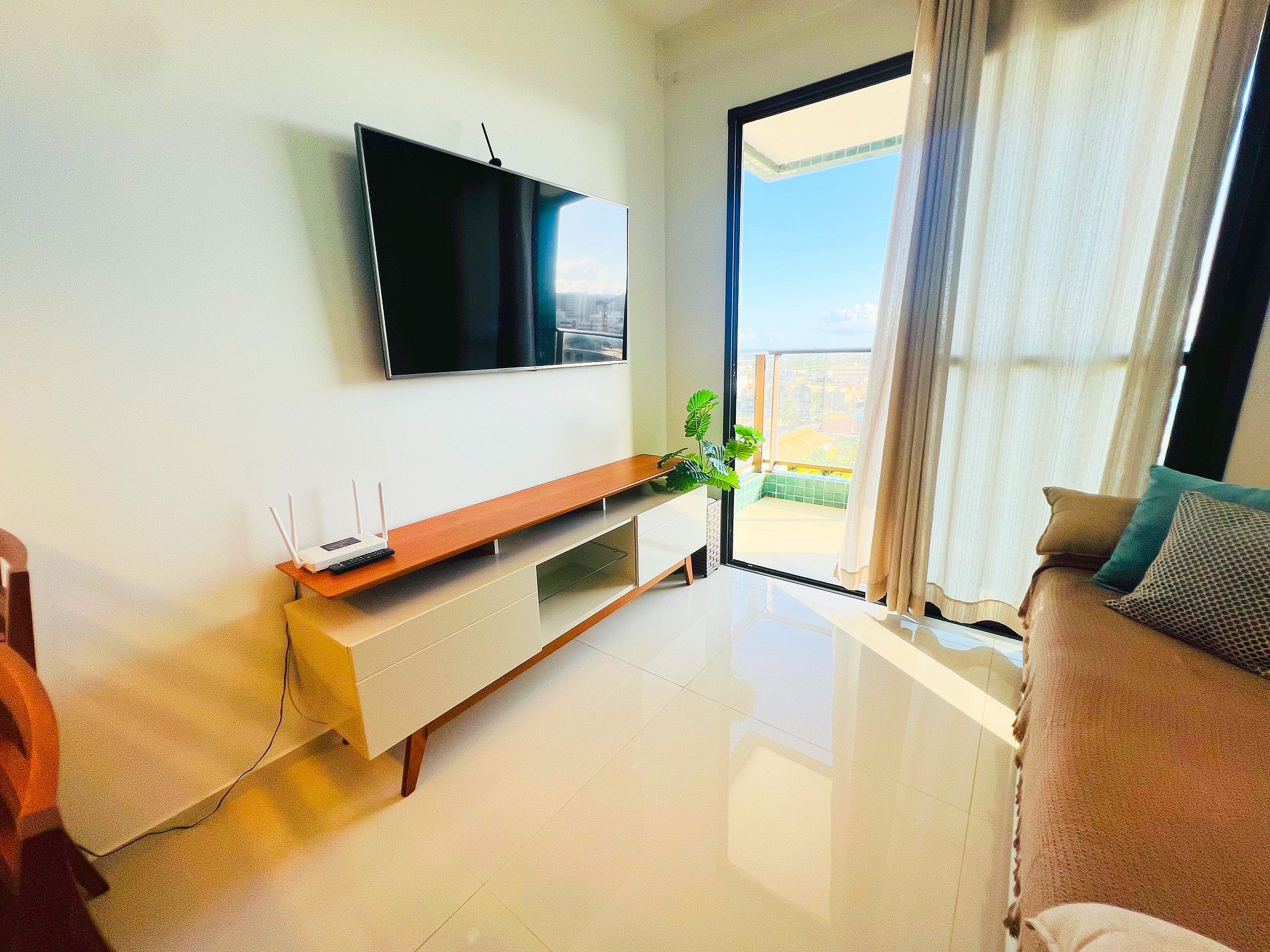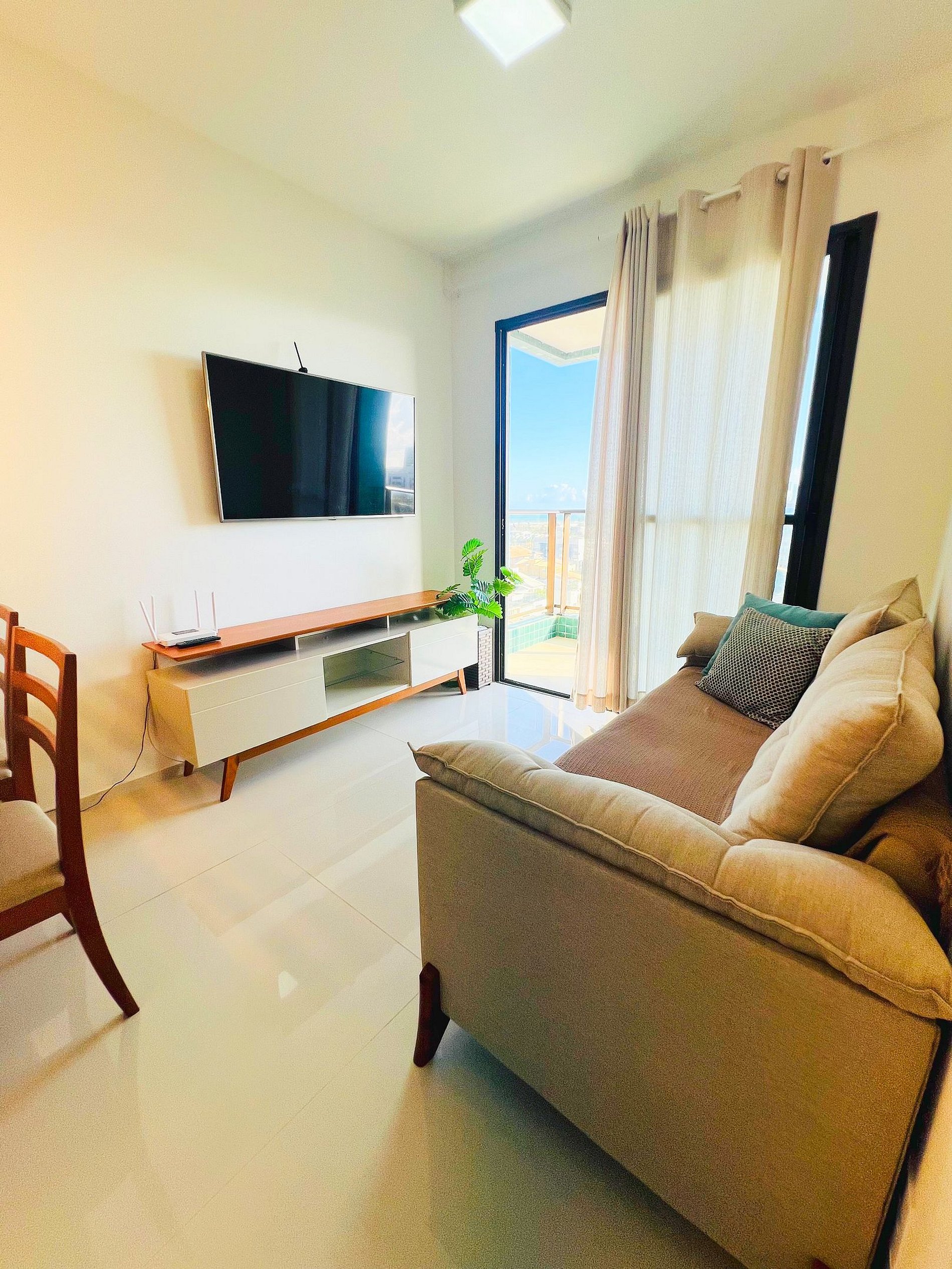 Apê inteiro, aconchegante e com decoração moderna, ideal para até 4 hóspedes. Localizado em andar alto com linda vista para o mar.