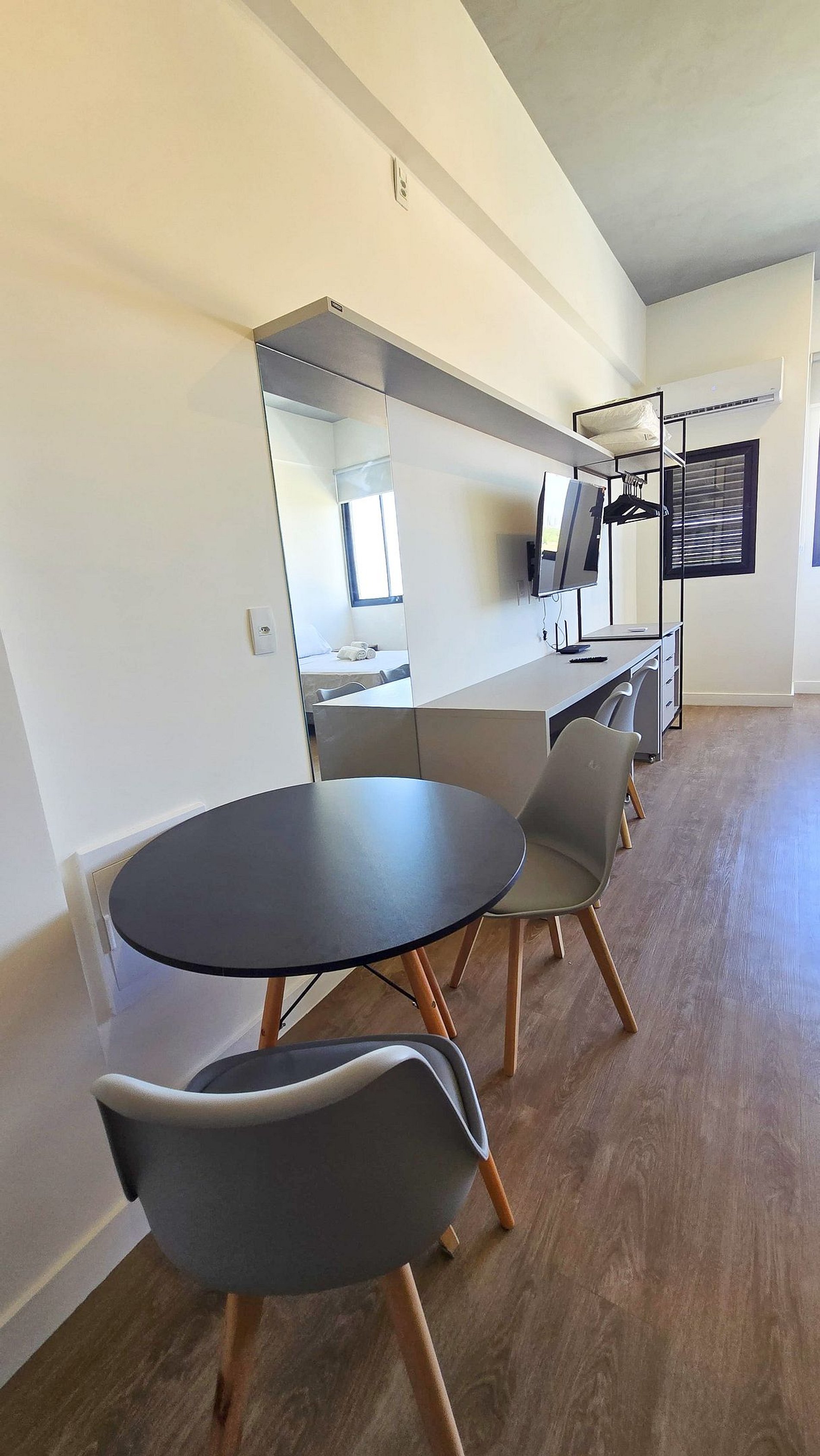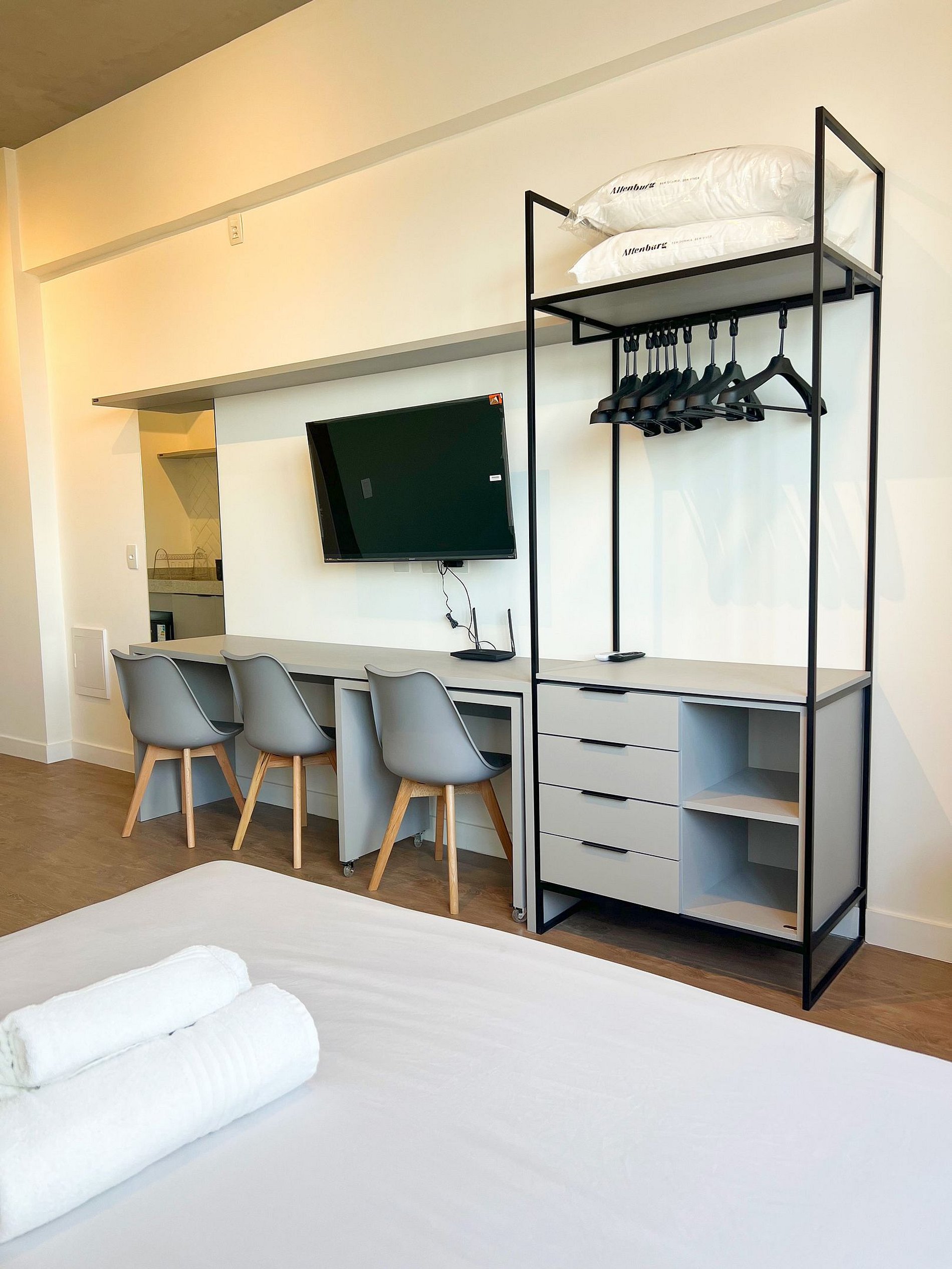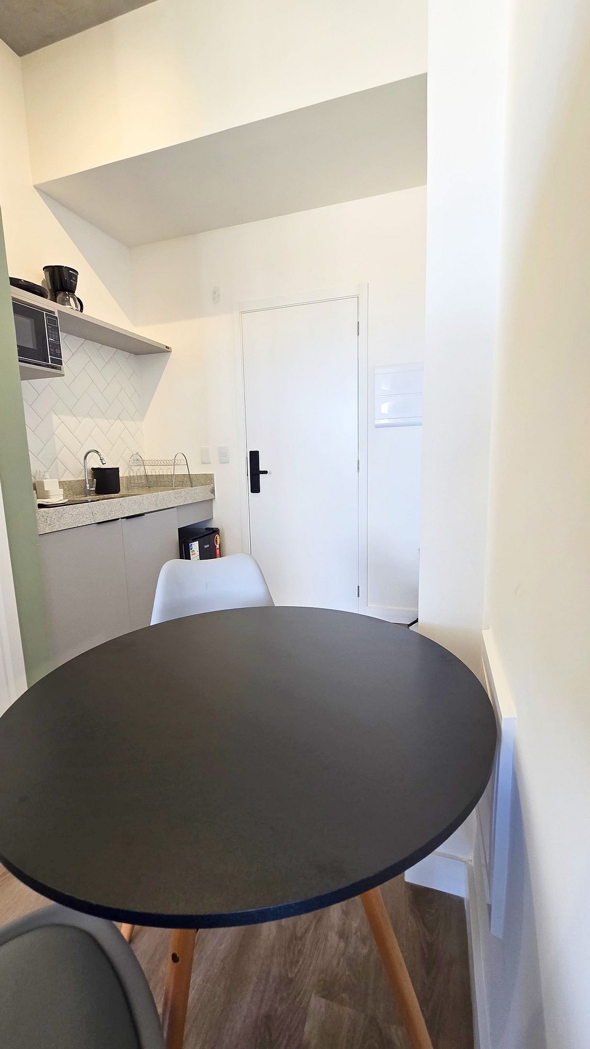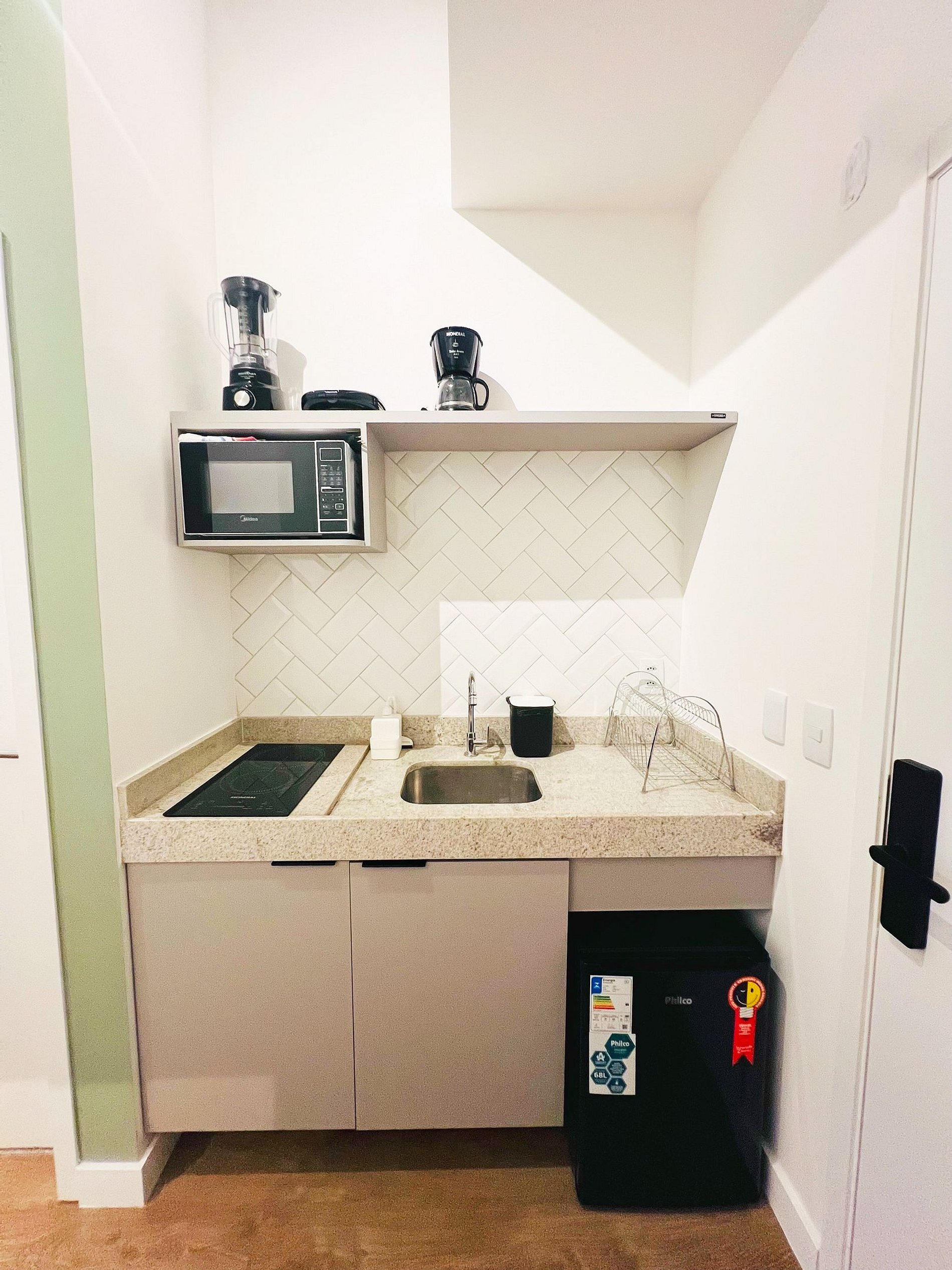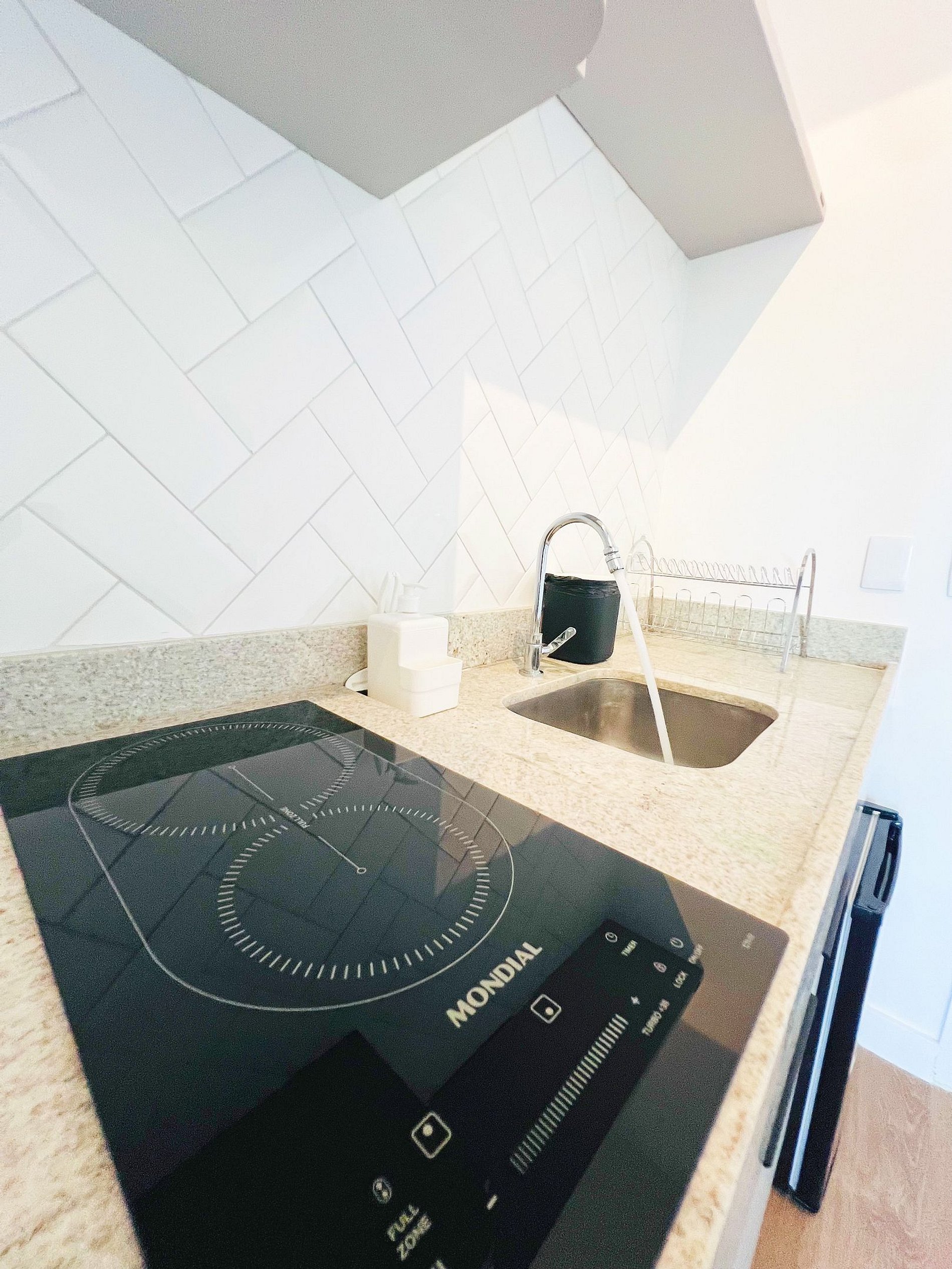 Este estúdio foi projetado para oferecer o máximo de funcionalidade em um ambiente moderno e minimalista. Seja para uma viagem de lazer ou um período de trabalho remoto, você encontrará tudo o que precisa: