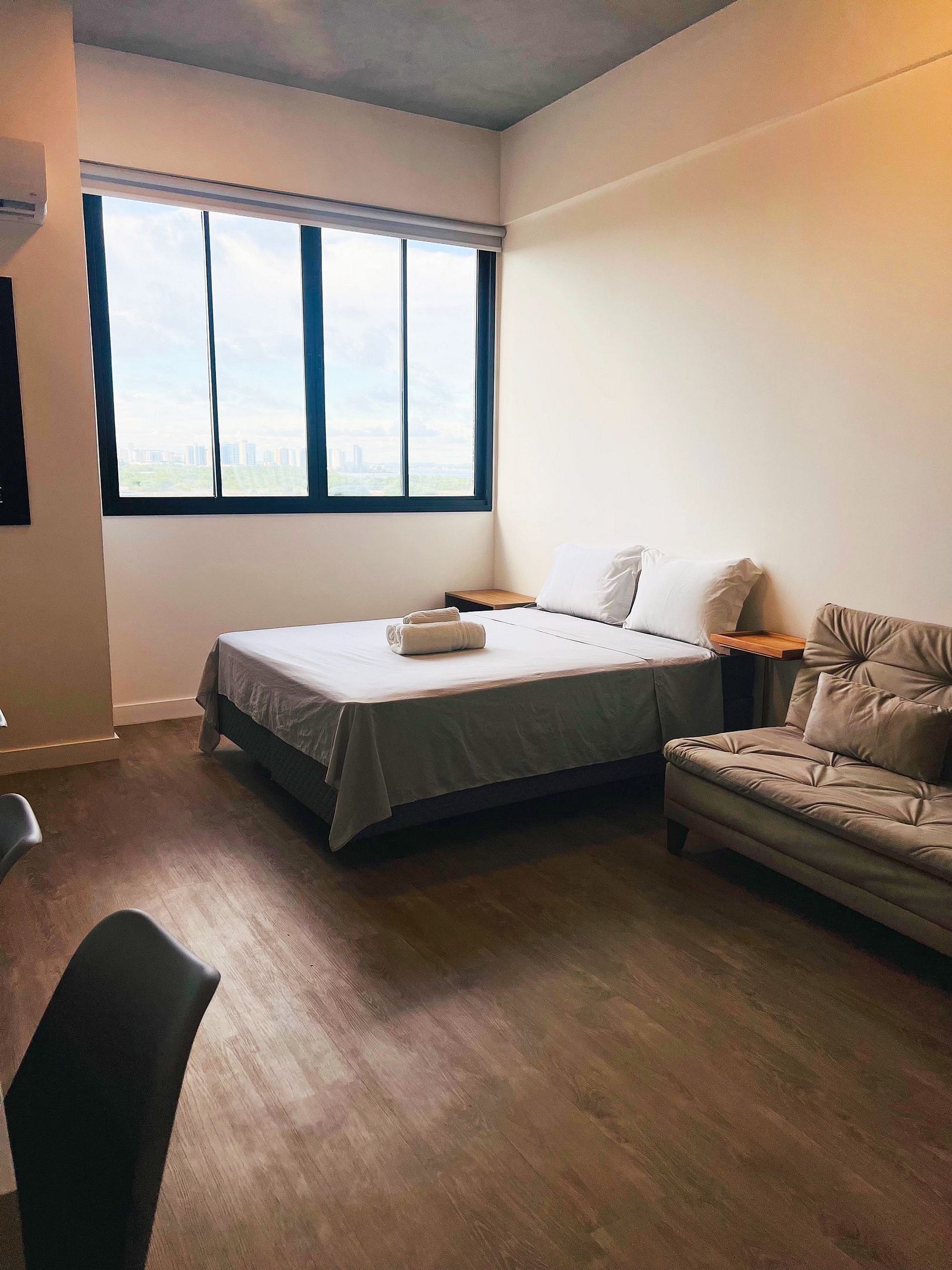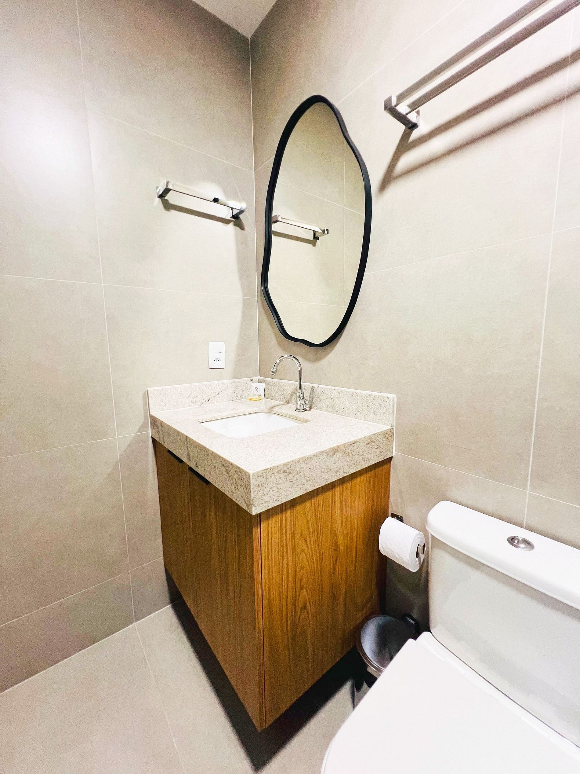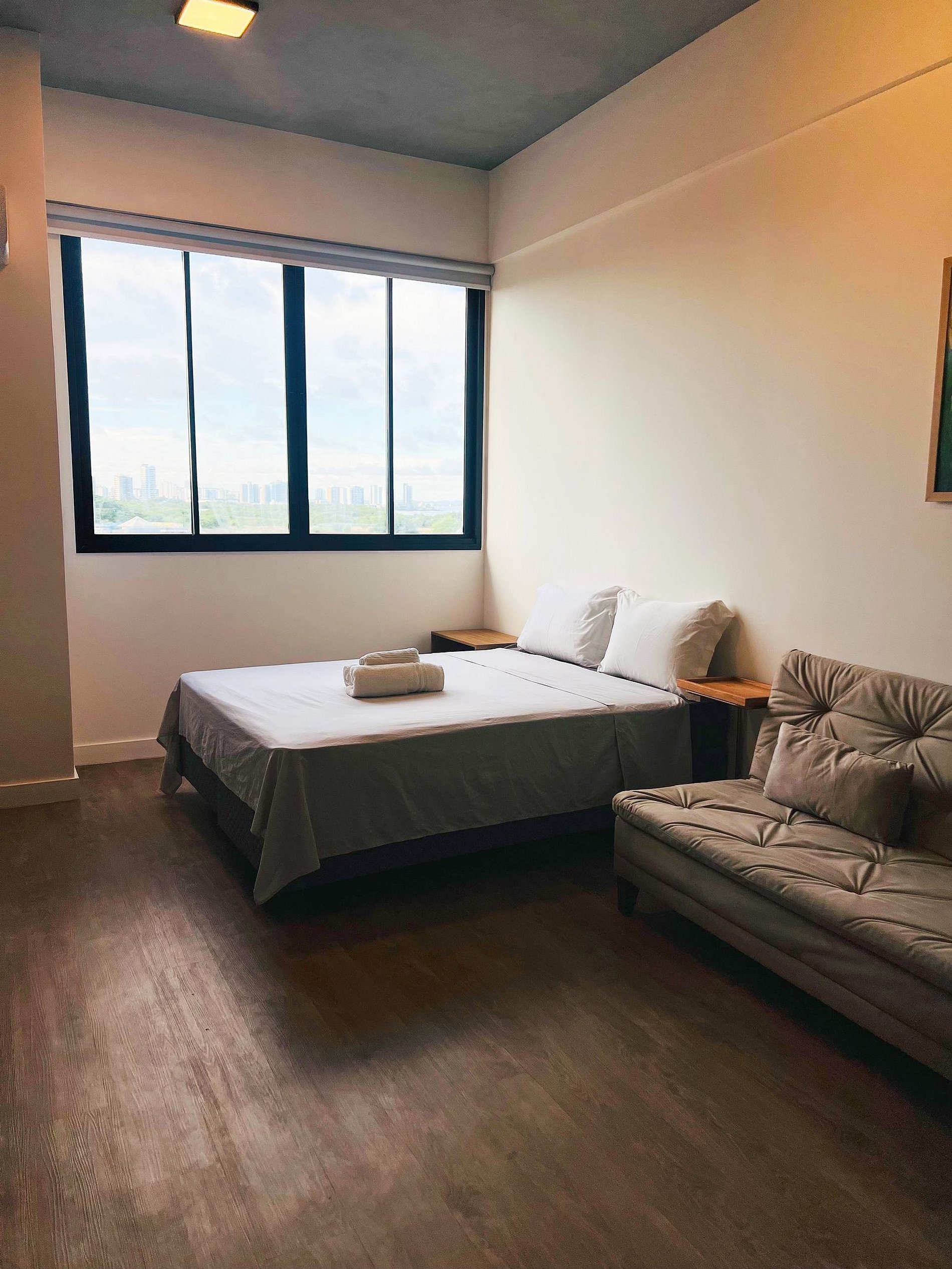 Em uma cidade ensolarada como Aracaju, criamos um refúgio com design minimalista e "clean", onde o hóspede não se sente apertado.