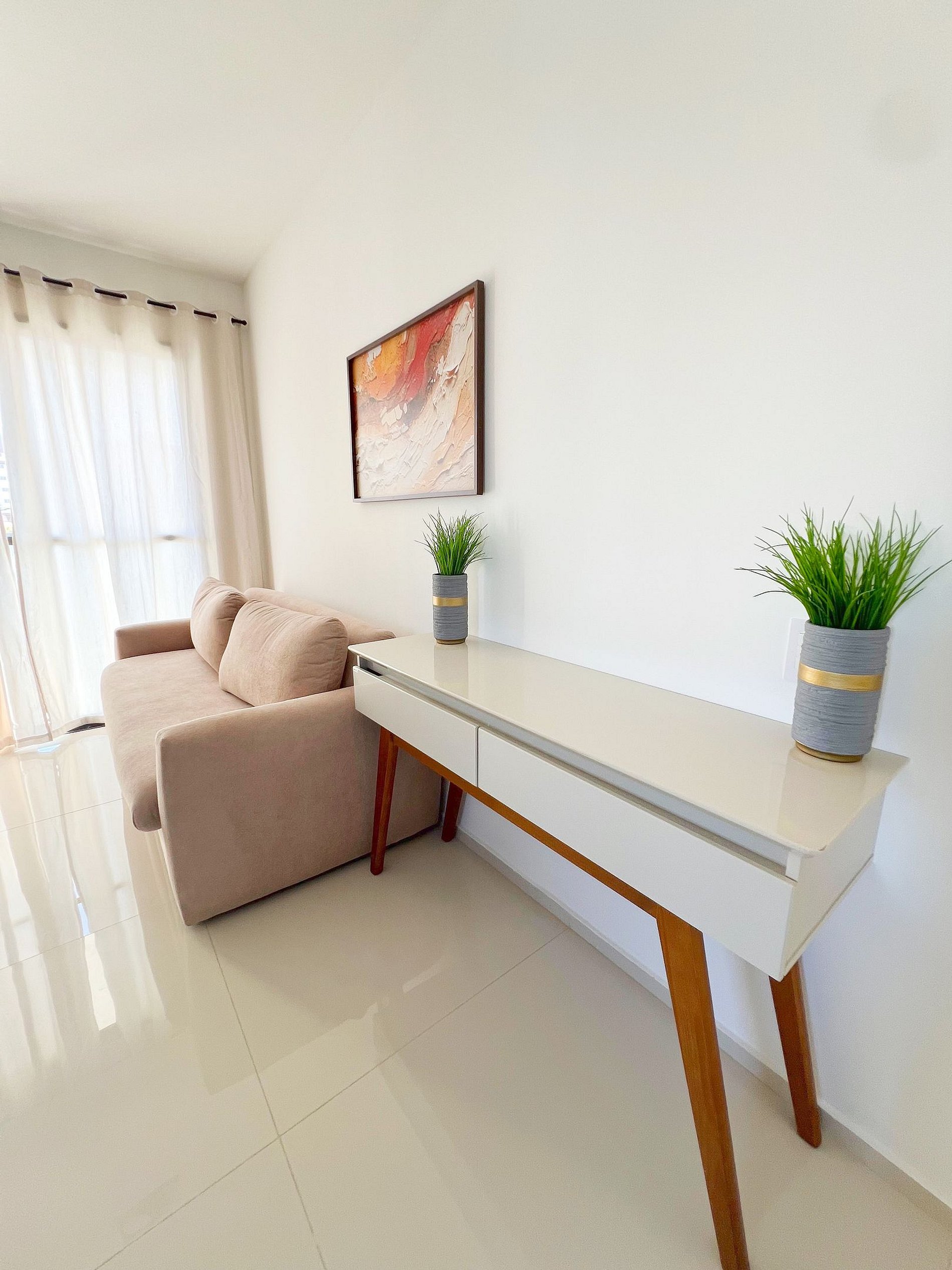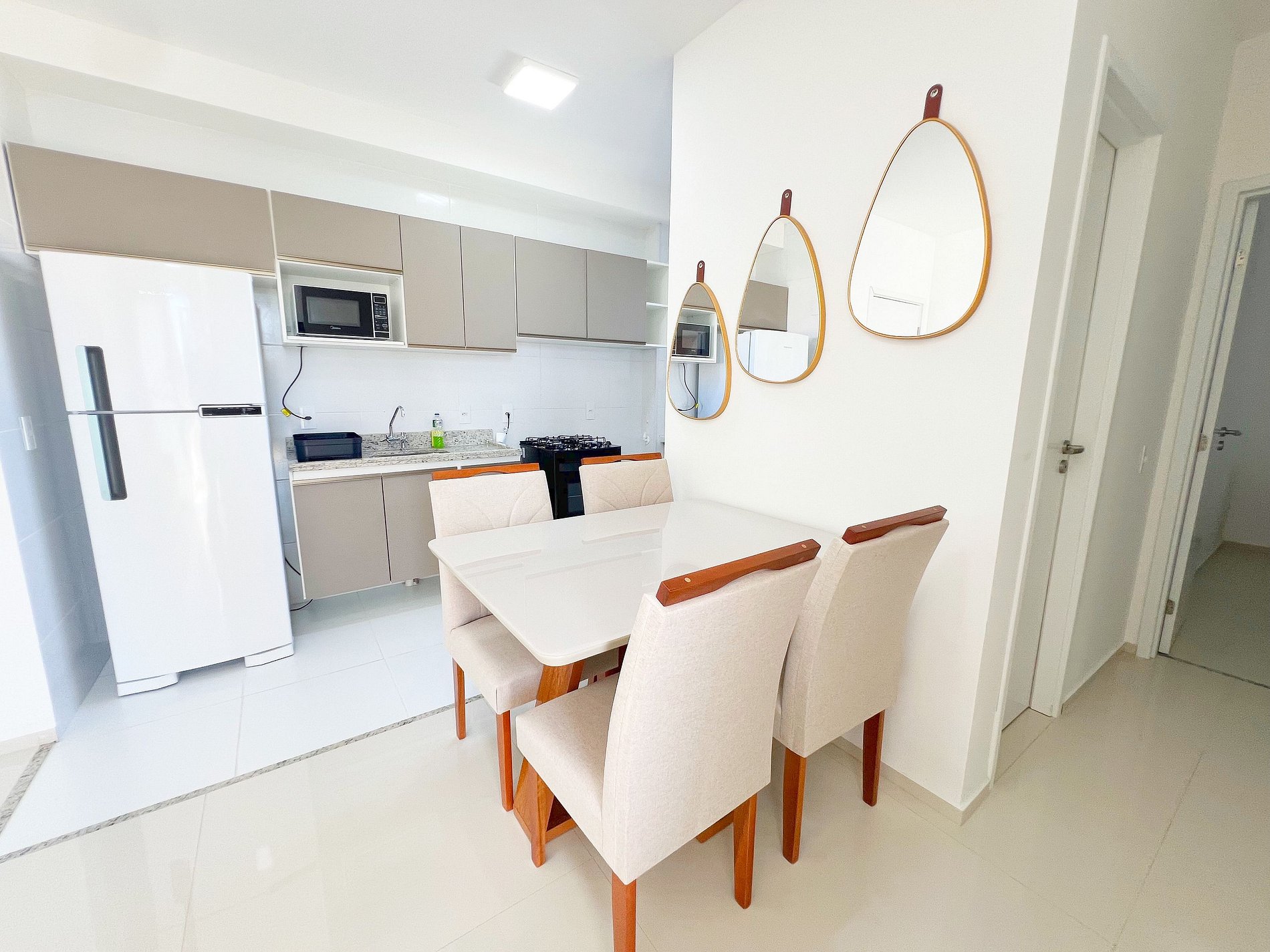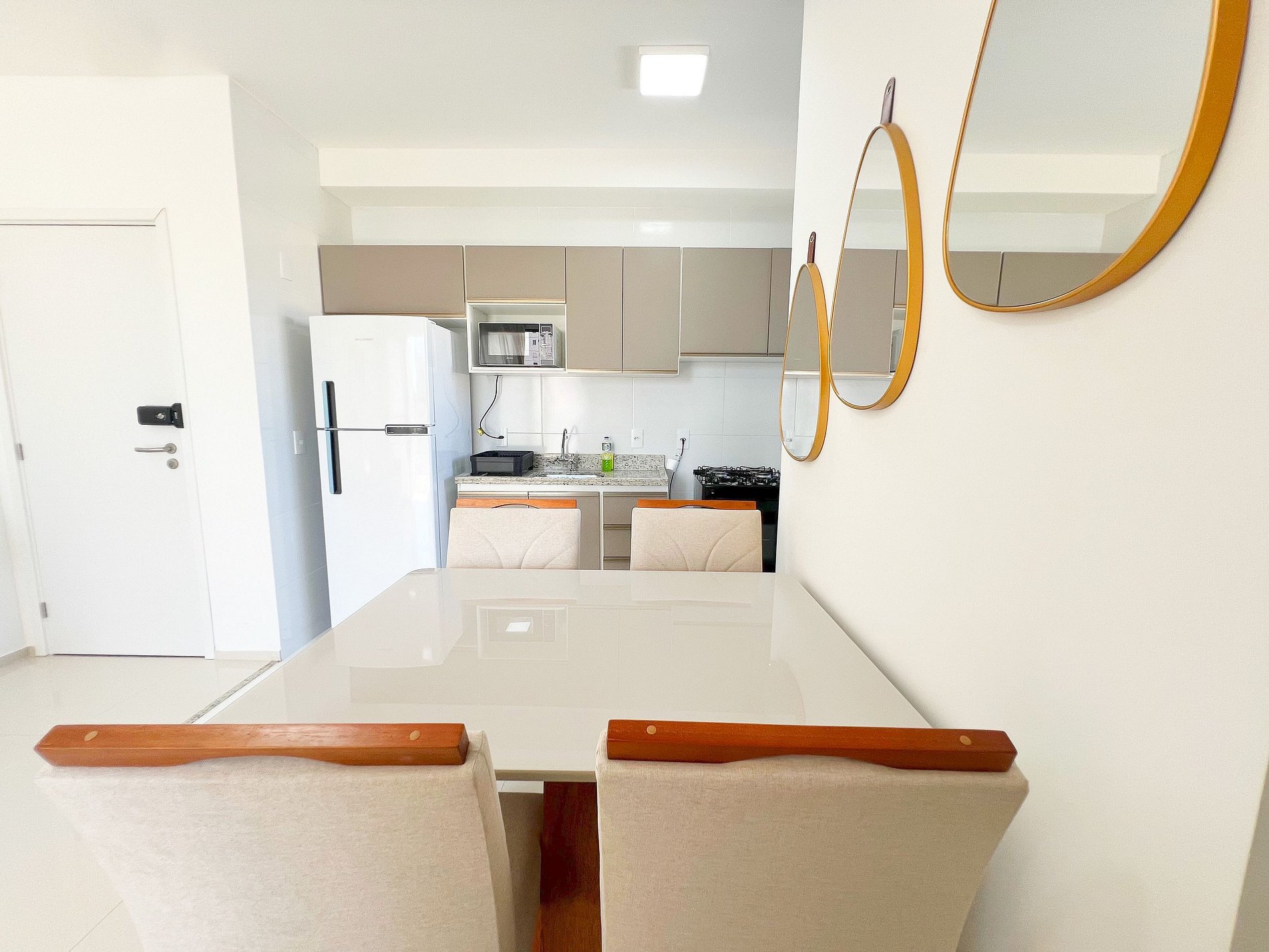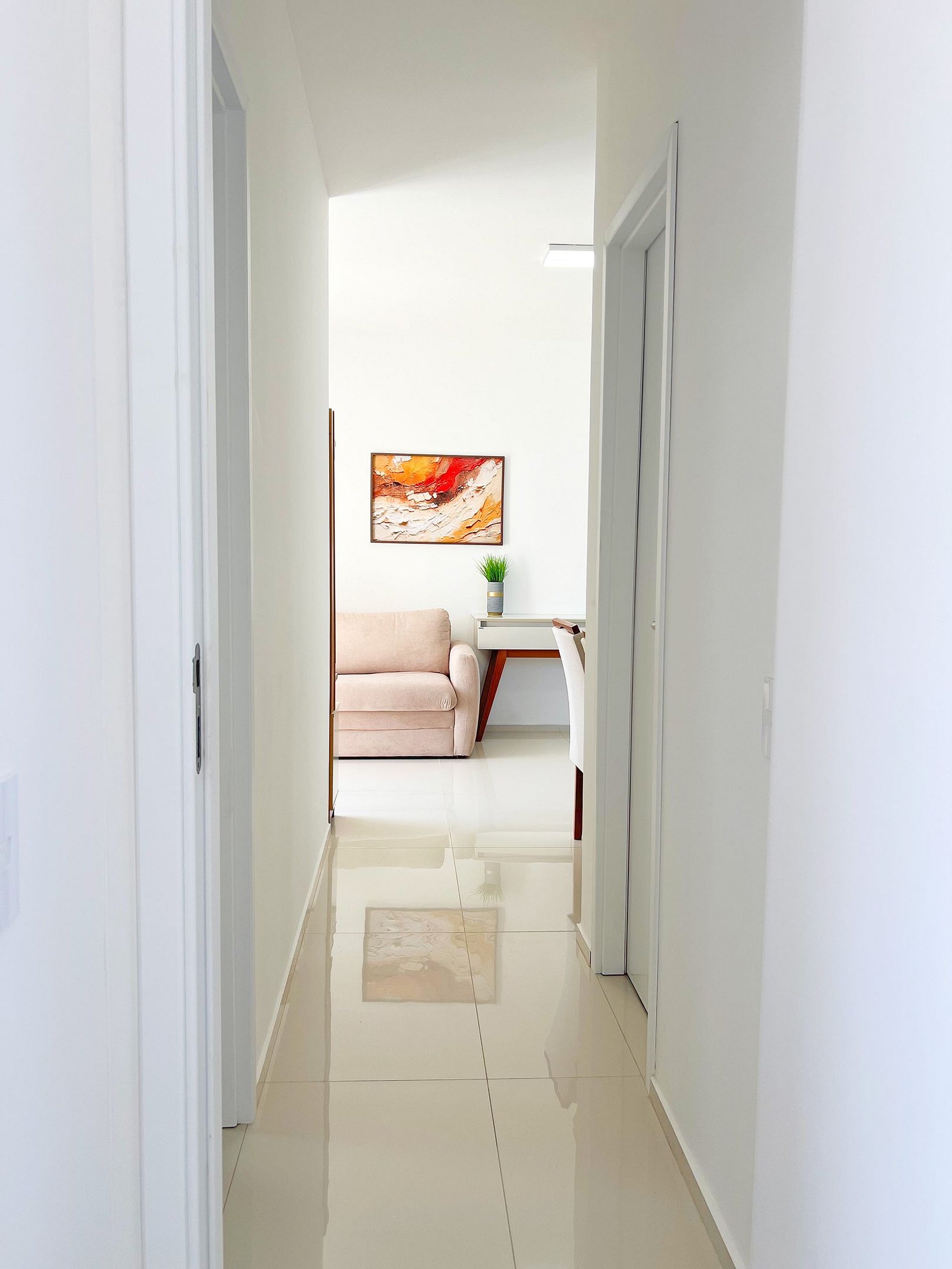 Design Moderno e Aconchego Real Esqueça apartamentos impessoais. Nosso espaço foi planejado com uma paleta de cores contemporânea para criar uma atmosfera de serenidade e sofisticação. É o lugar perfeito para quem busca a estética de um hotel com o calor de um lar.