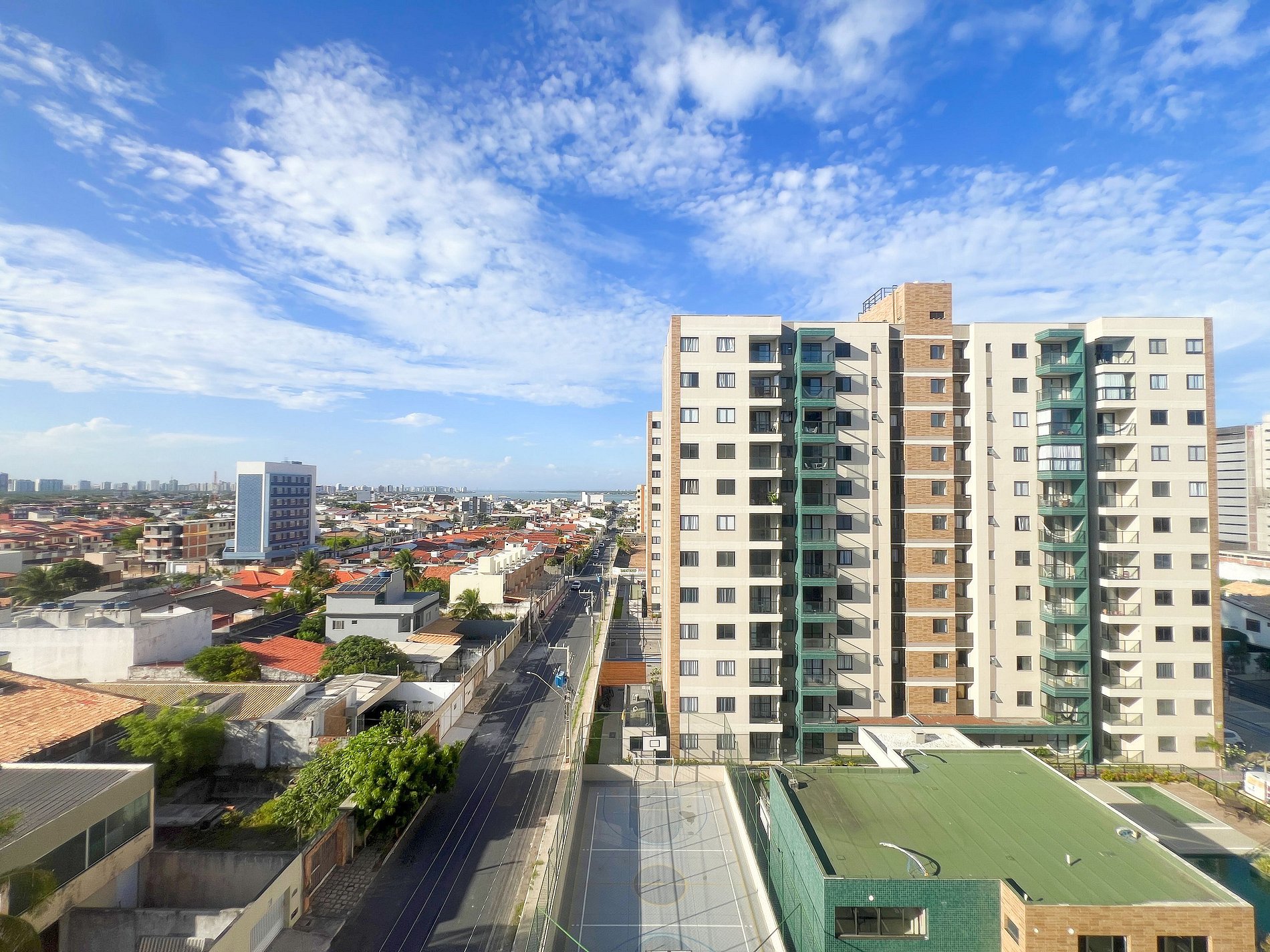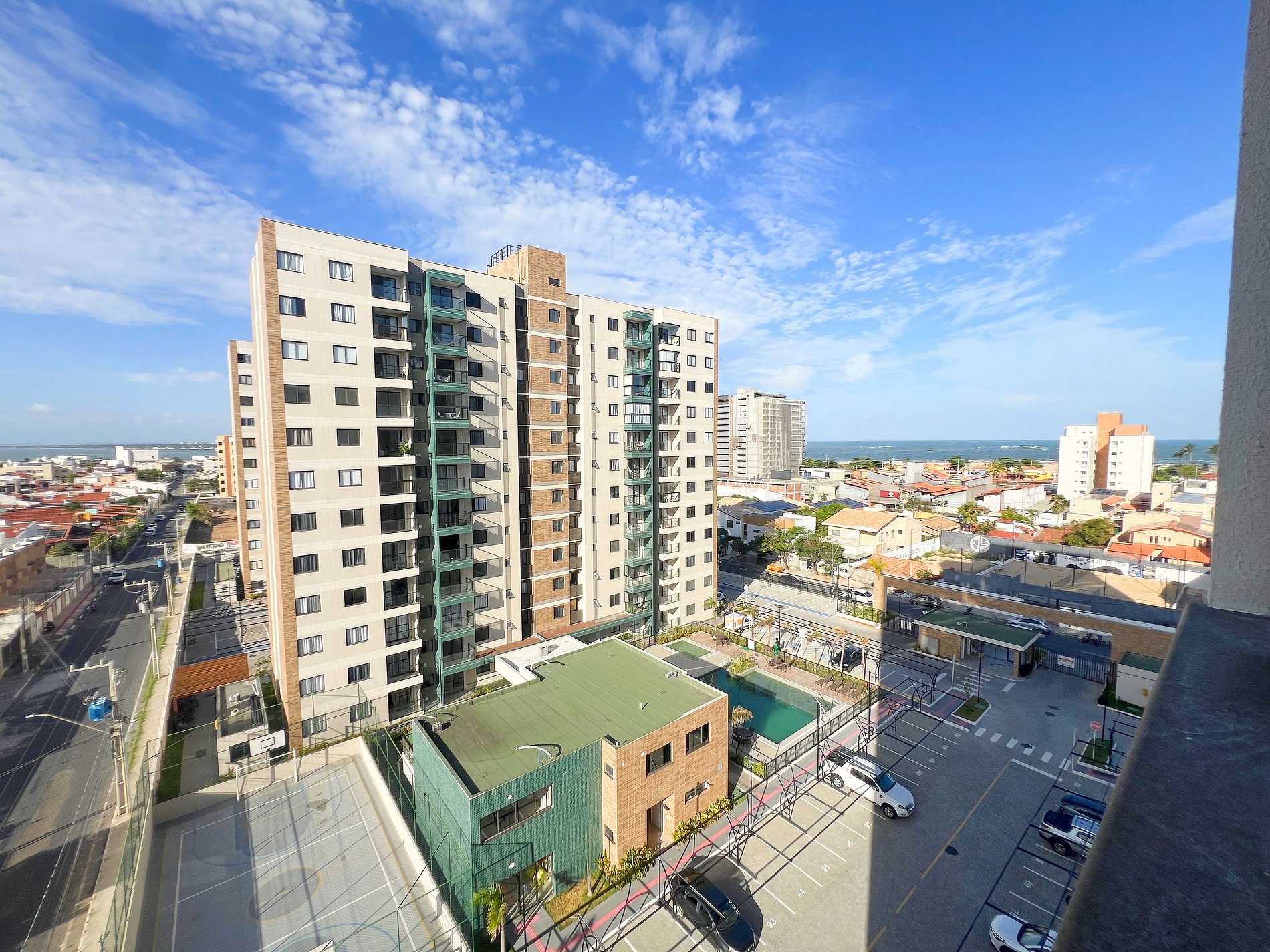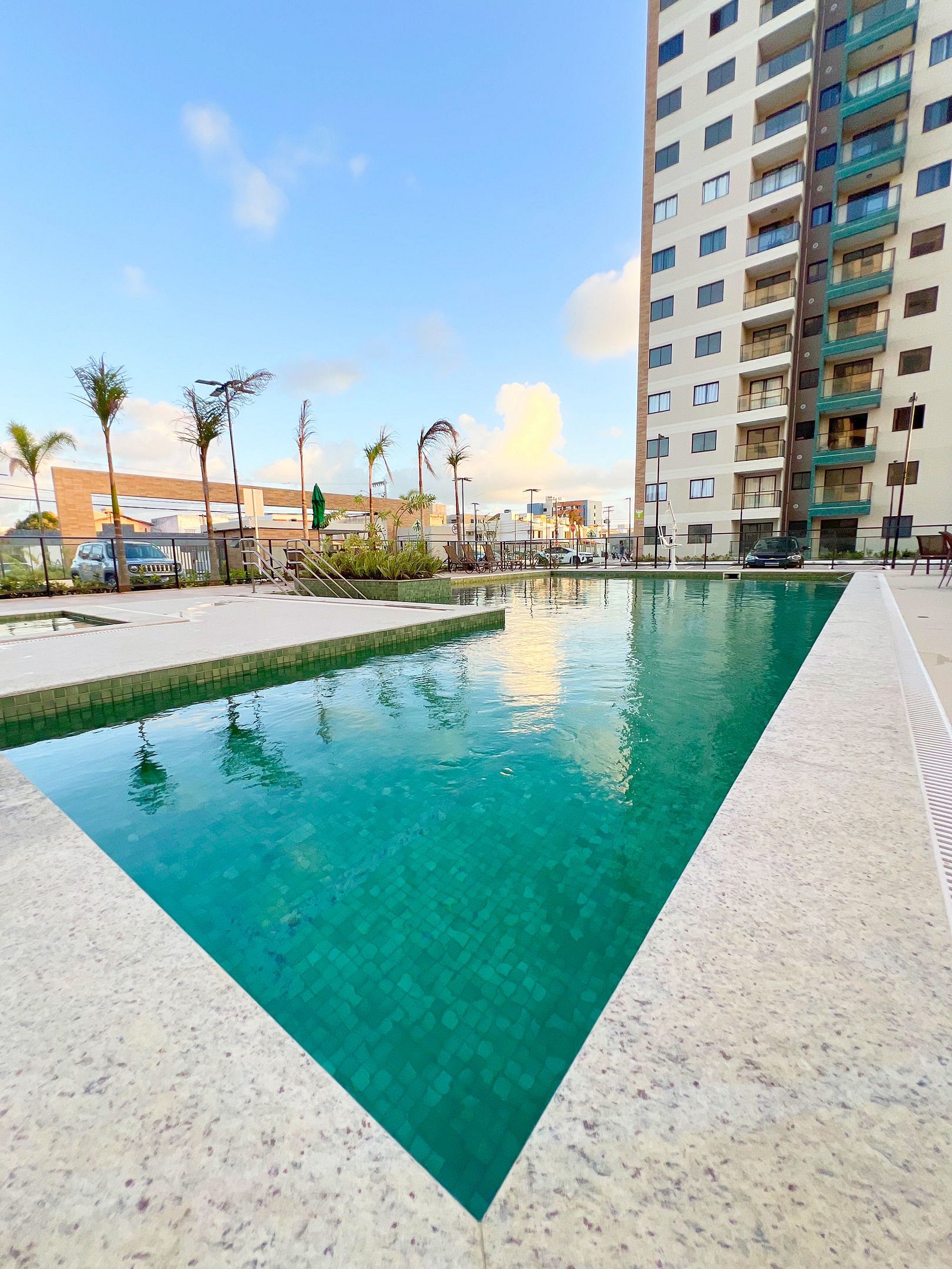O prédio é um verdadeiro resort: piscina, academia, quadra e área kids.
