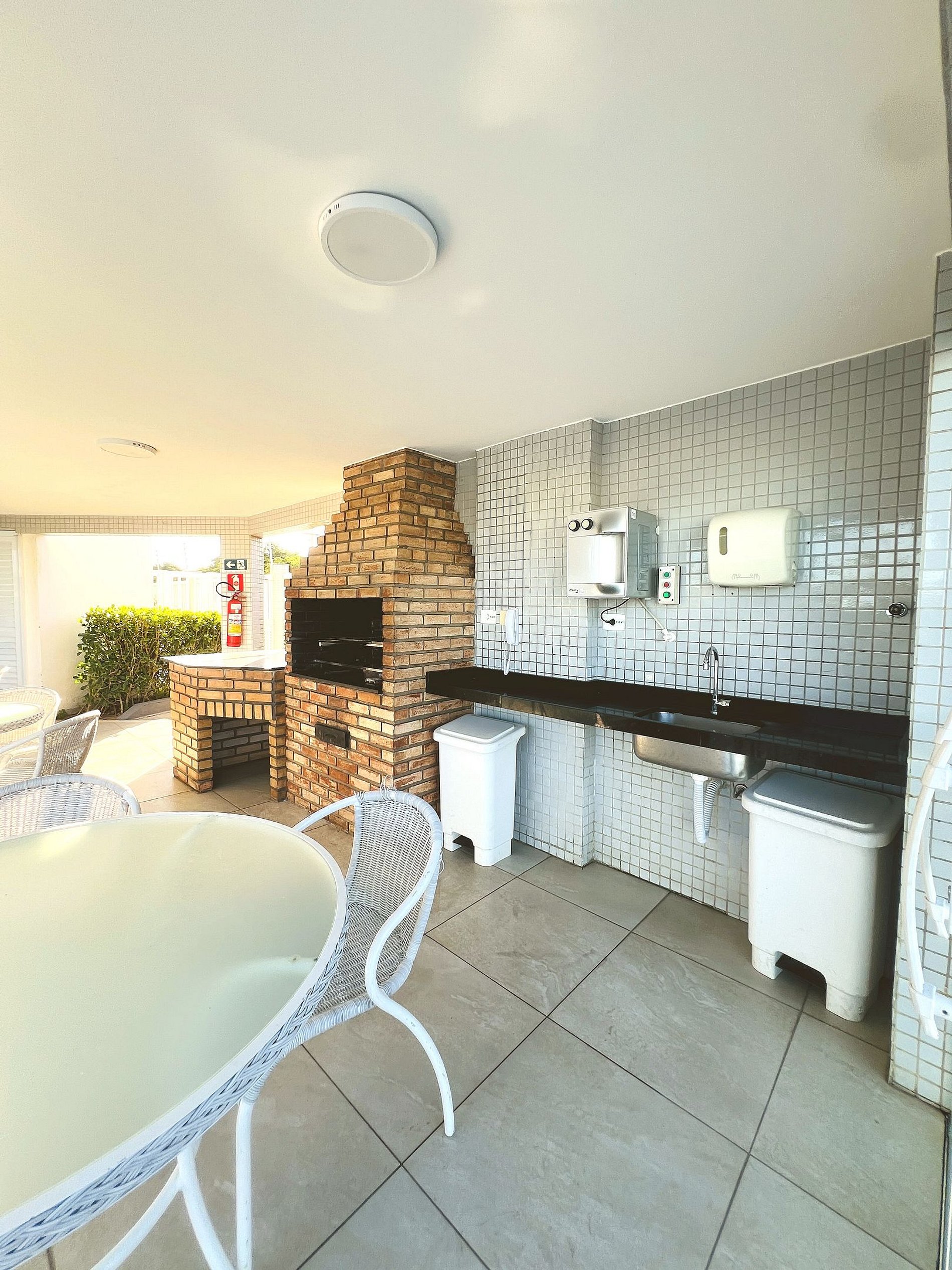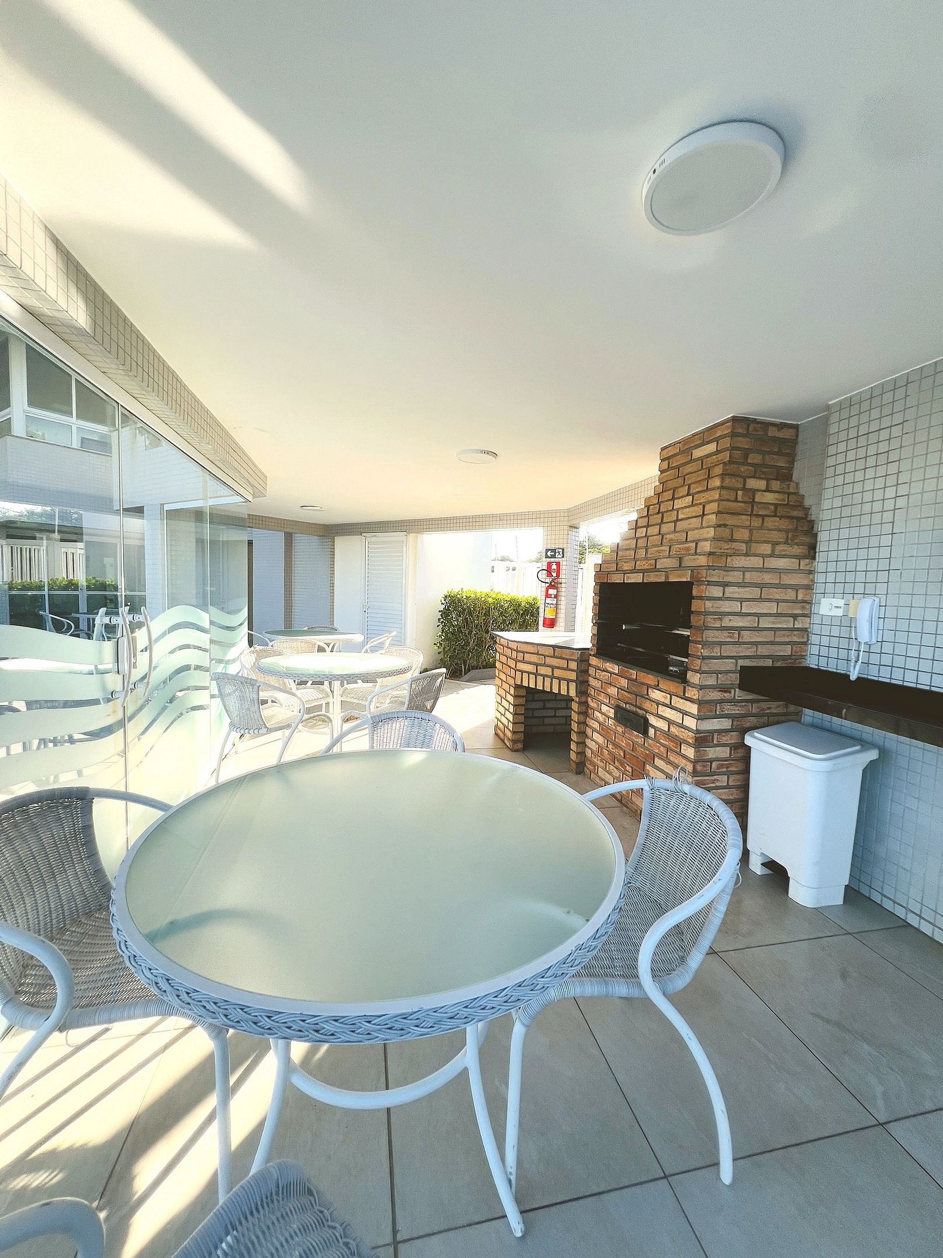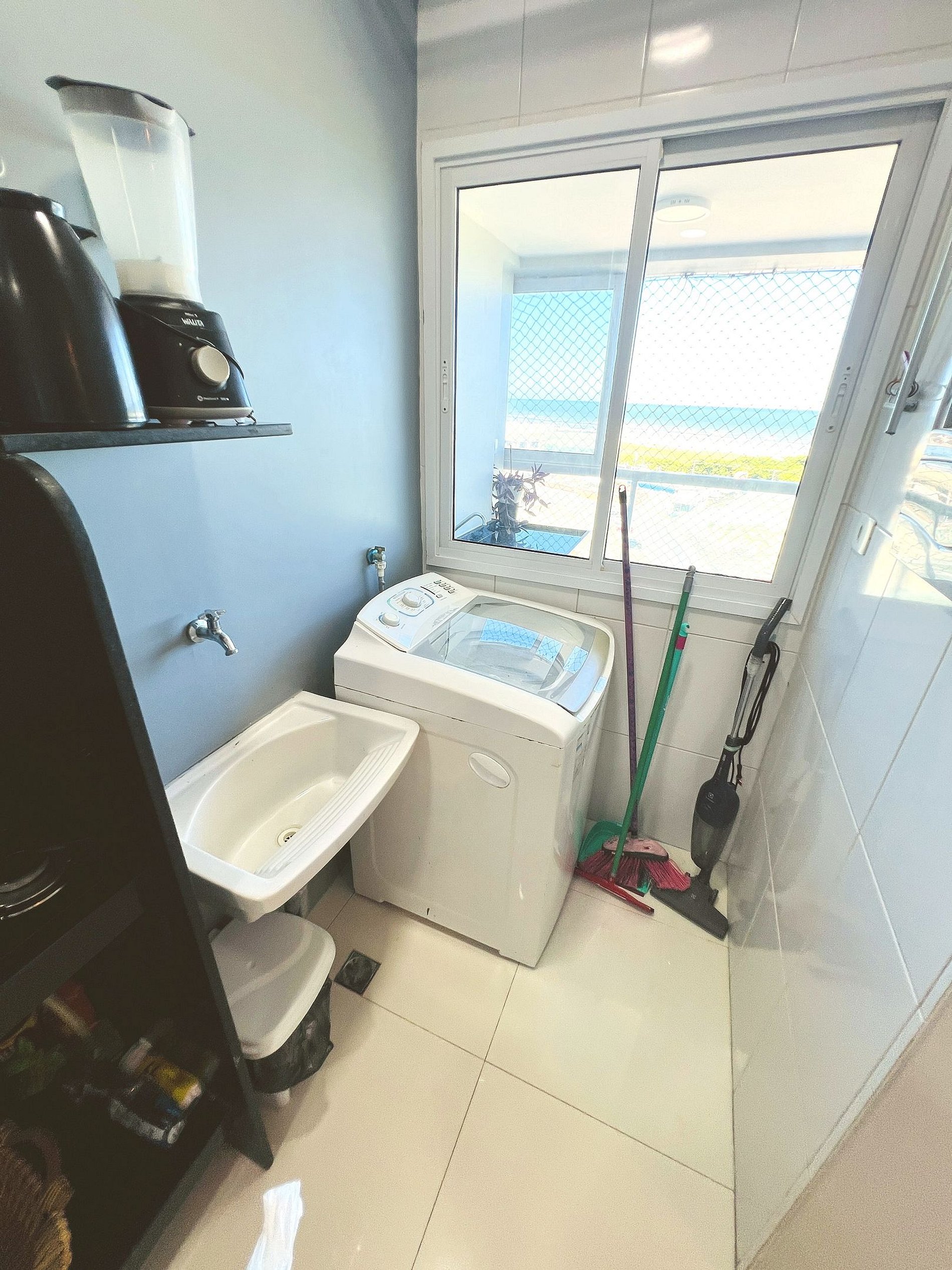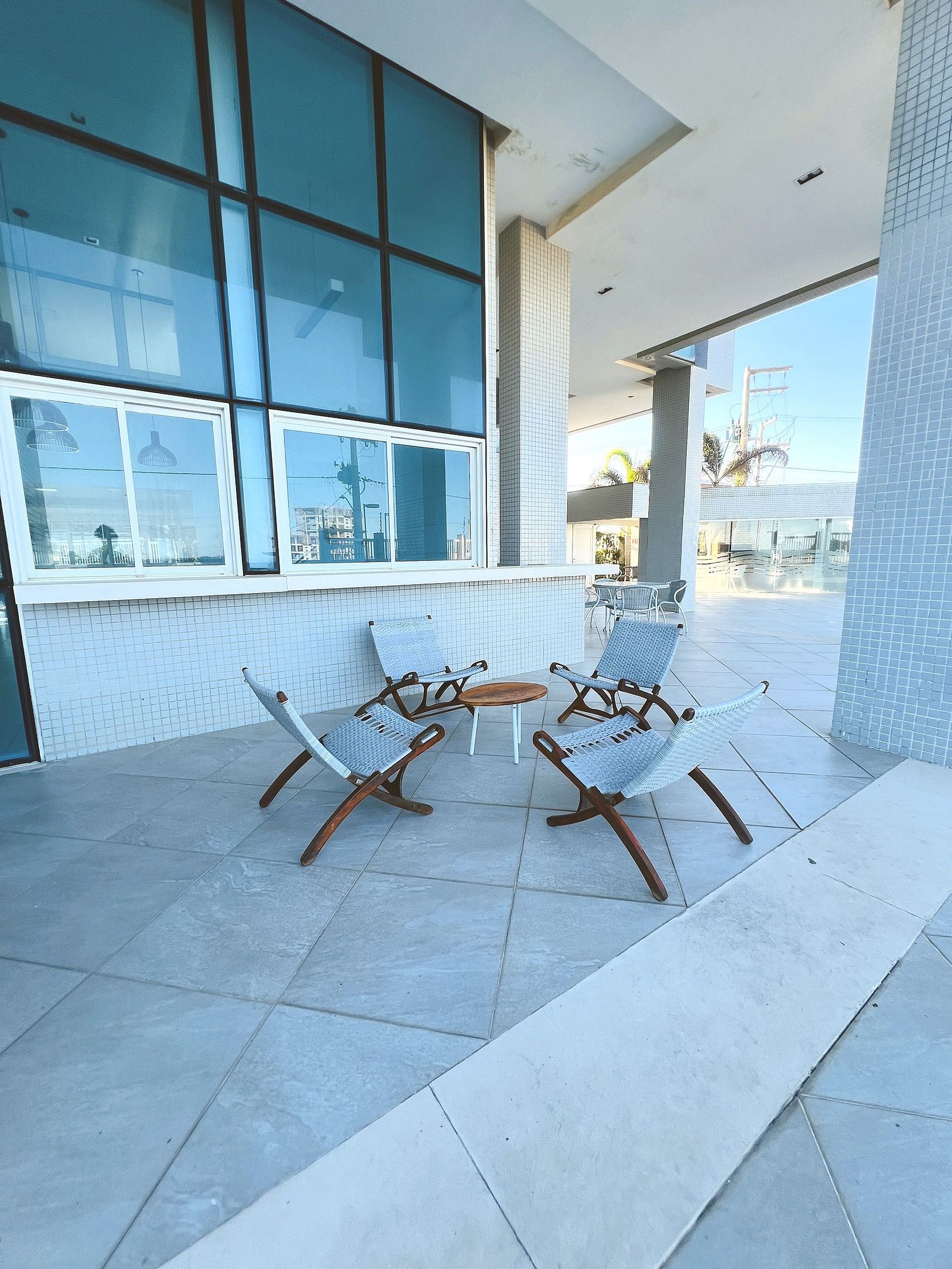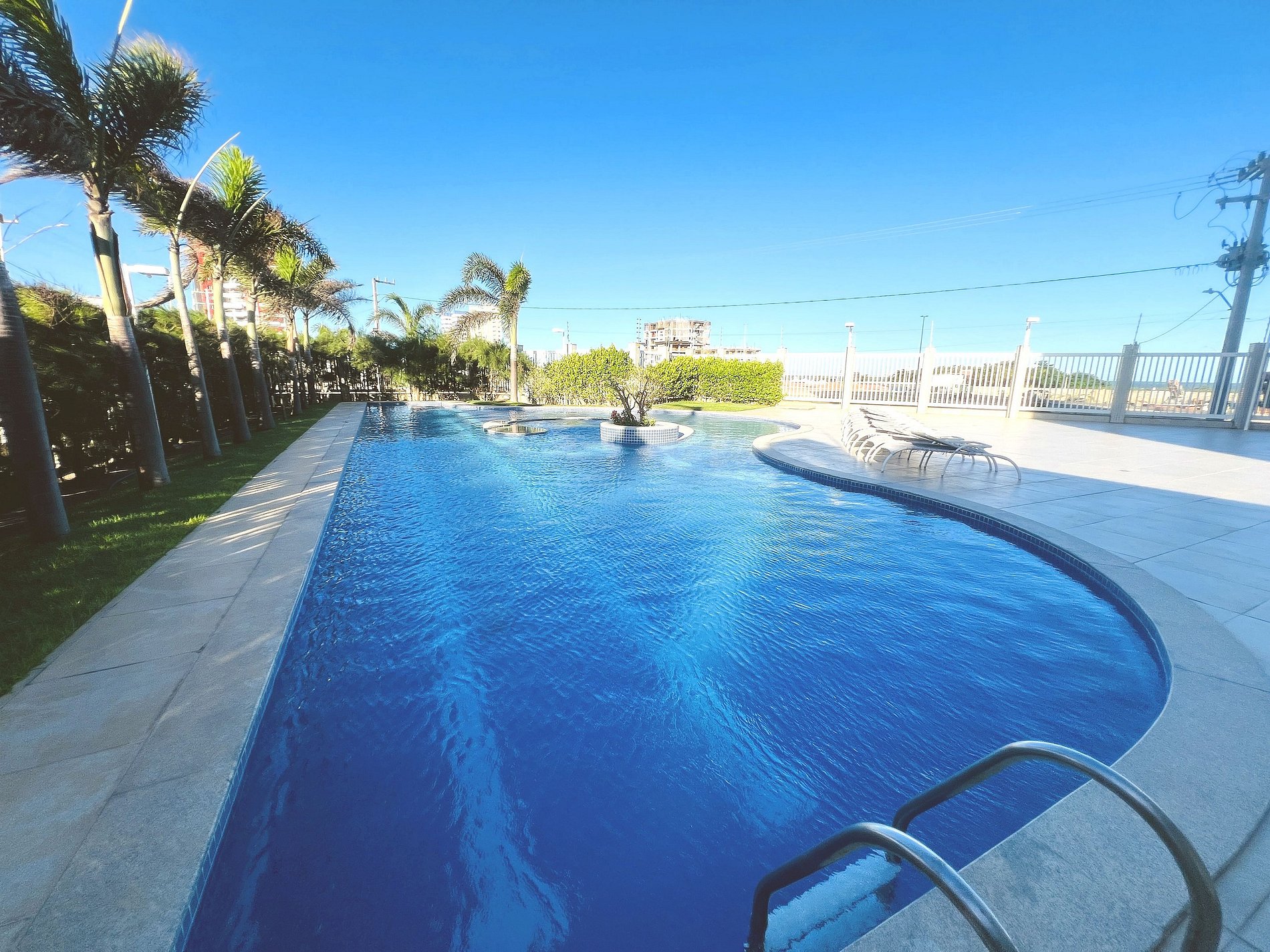 O condomínio é completo: piscina com hidro, academia de alto padrão e vista para o mar e churrasqueira.