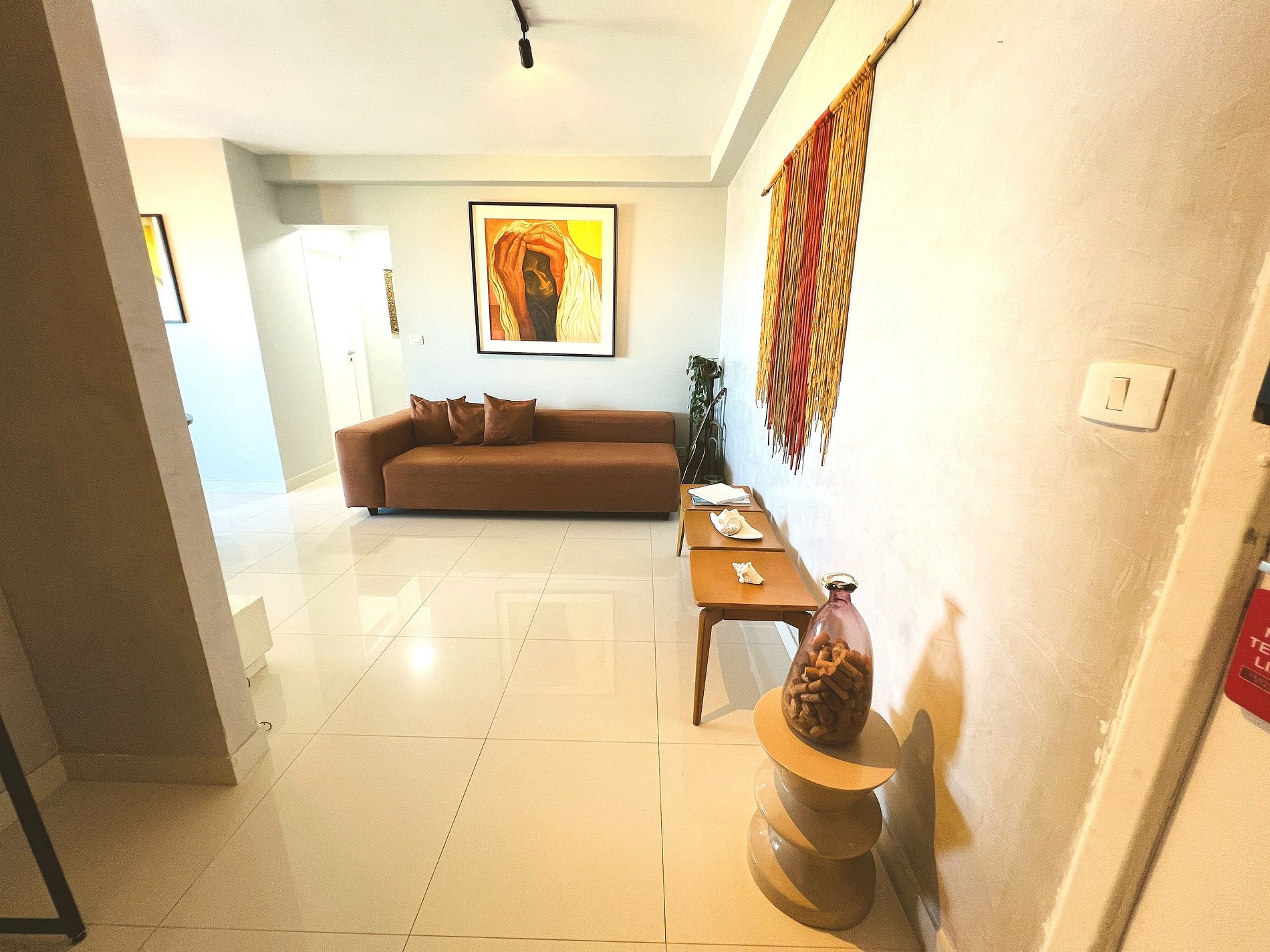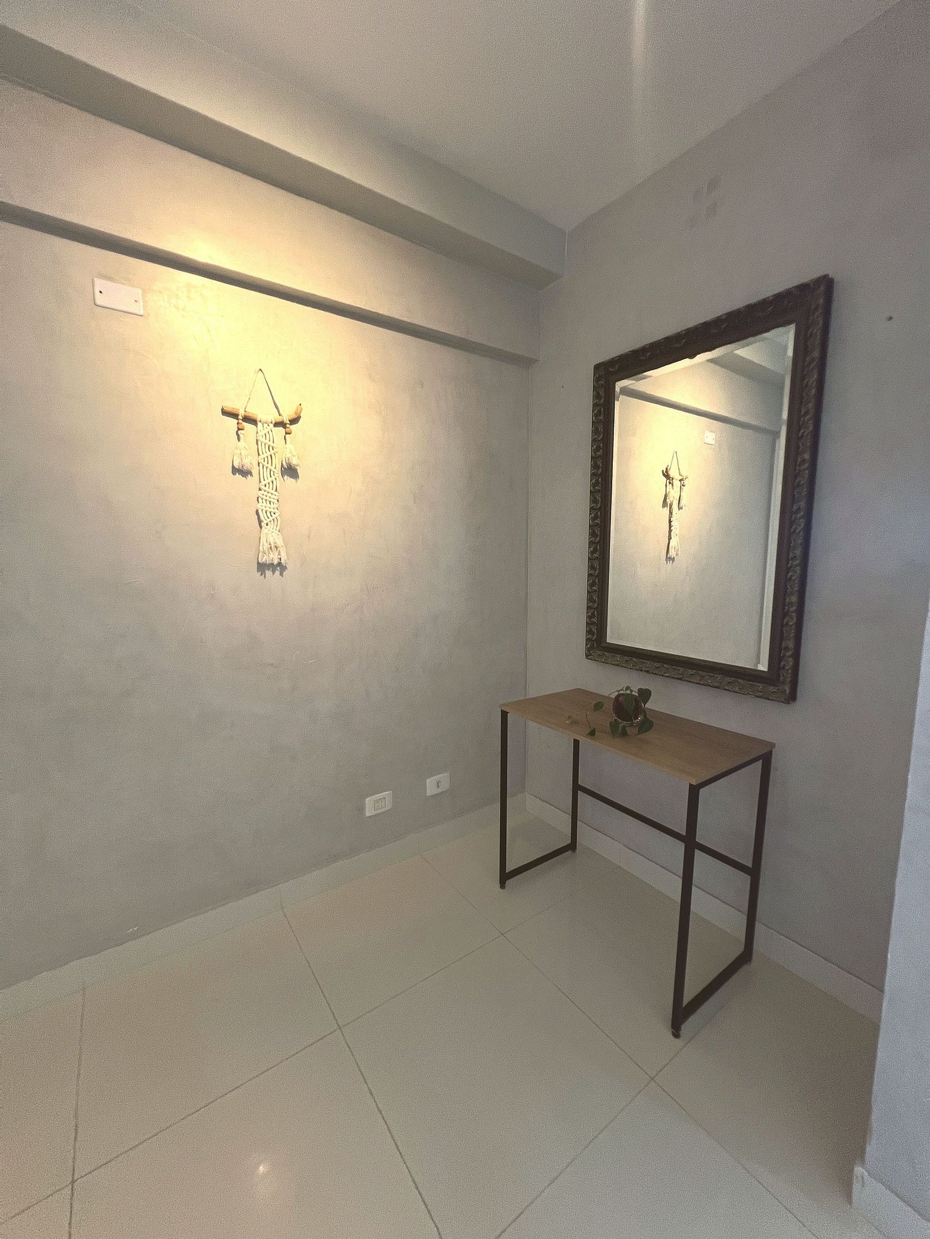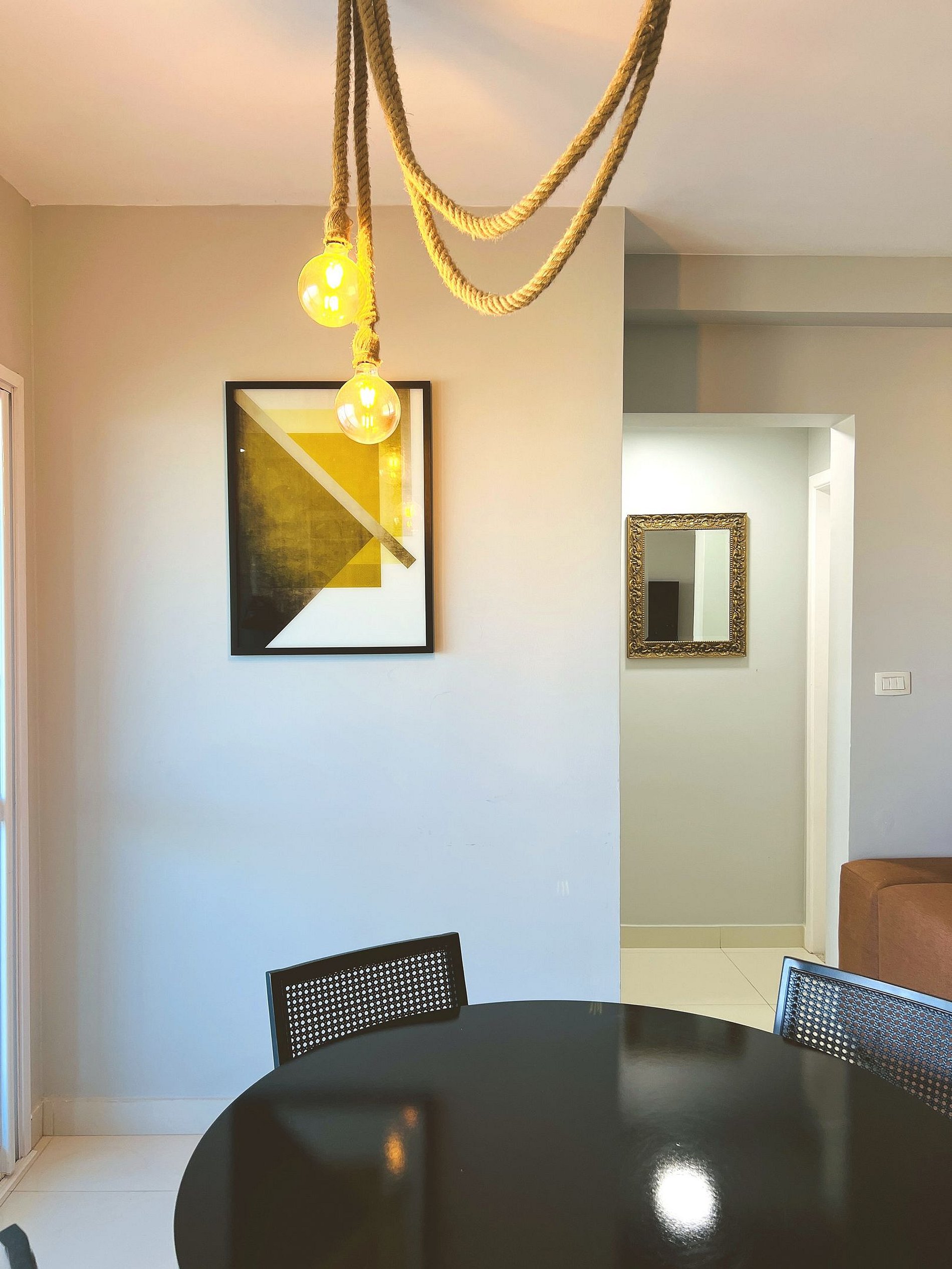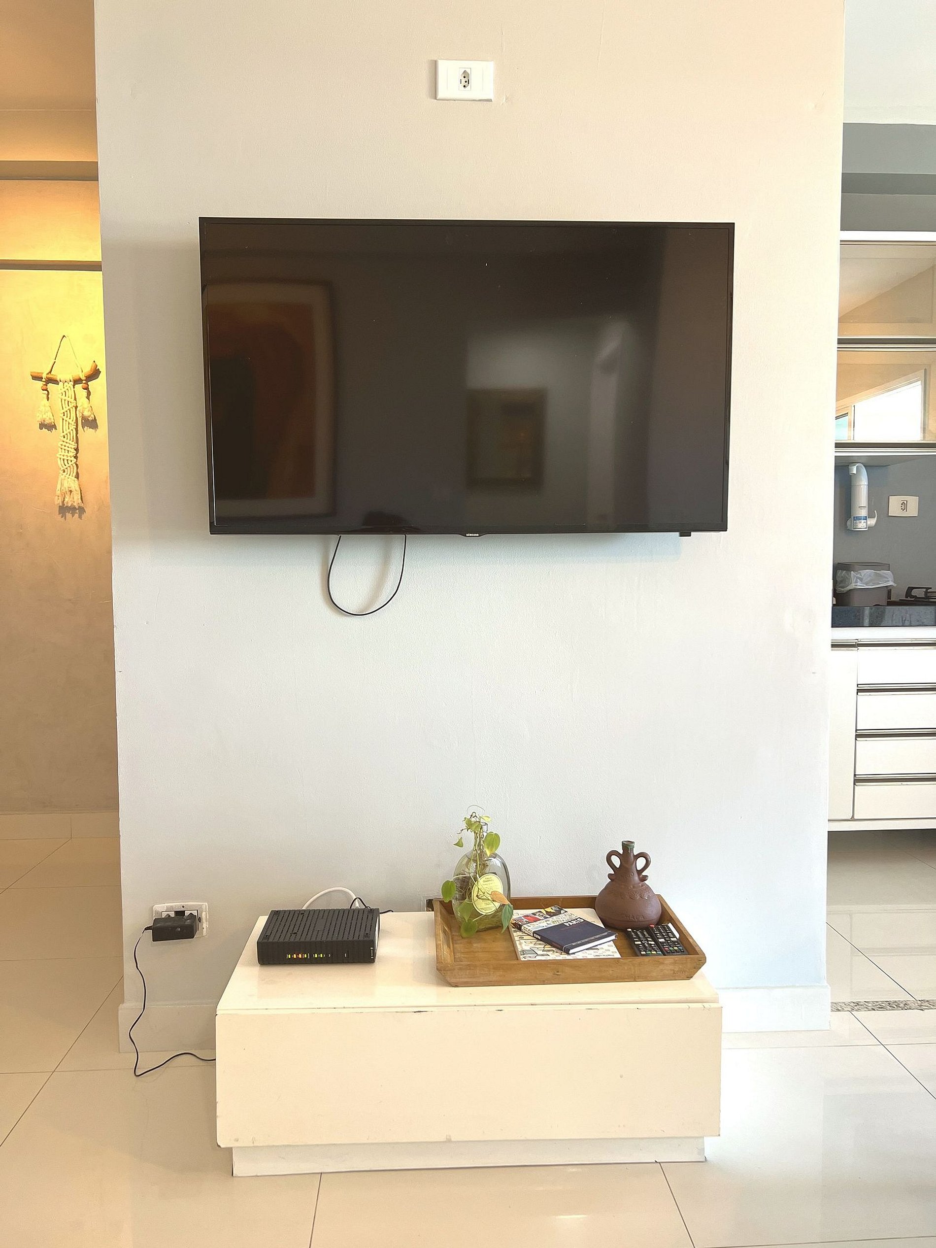 Ambiente amplo e integrado, com sofá confortável, Smart TV e decoração autoral com quadros e tapeçaria artesanal. A mesa redonda para 4 lugares é ideal para refeições em família. Wi-Fi de alta velocidade disponível em todo o apartamento.