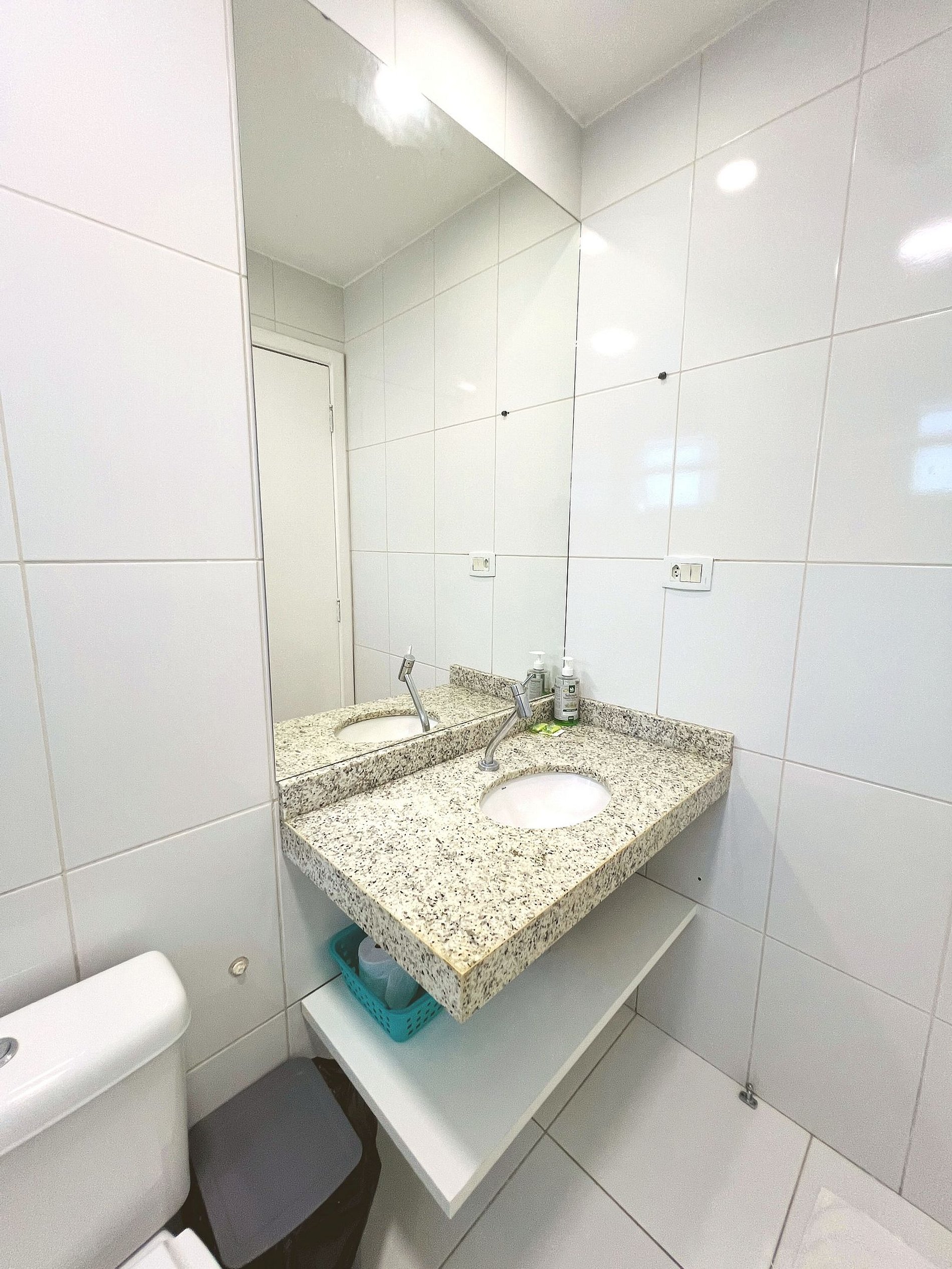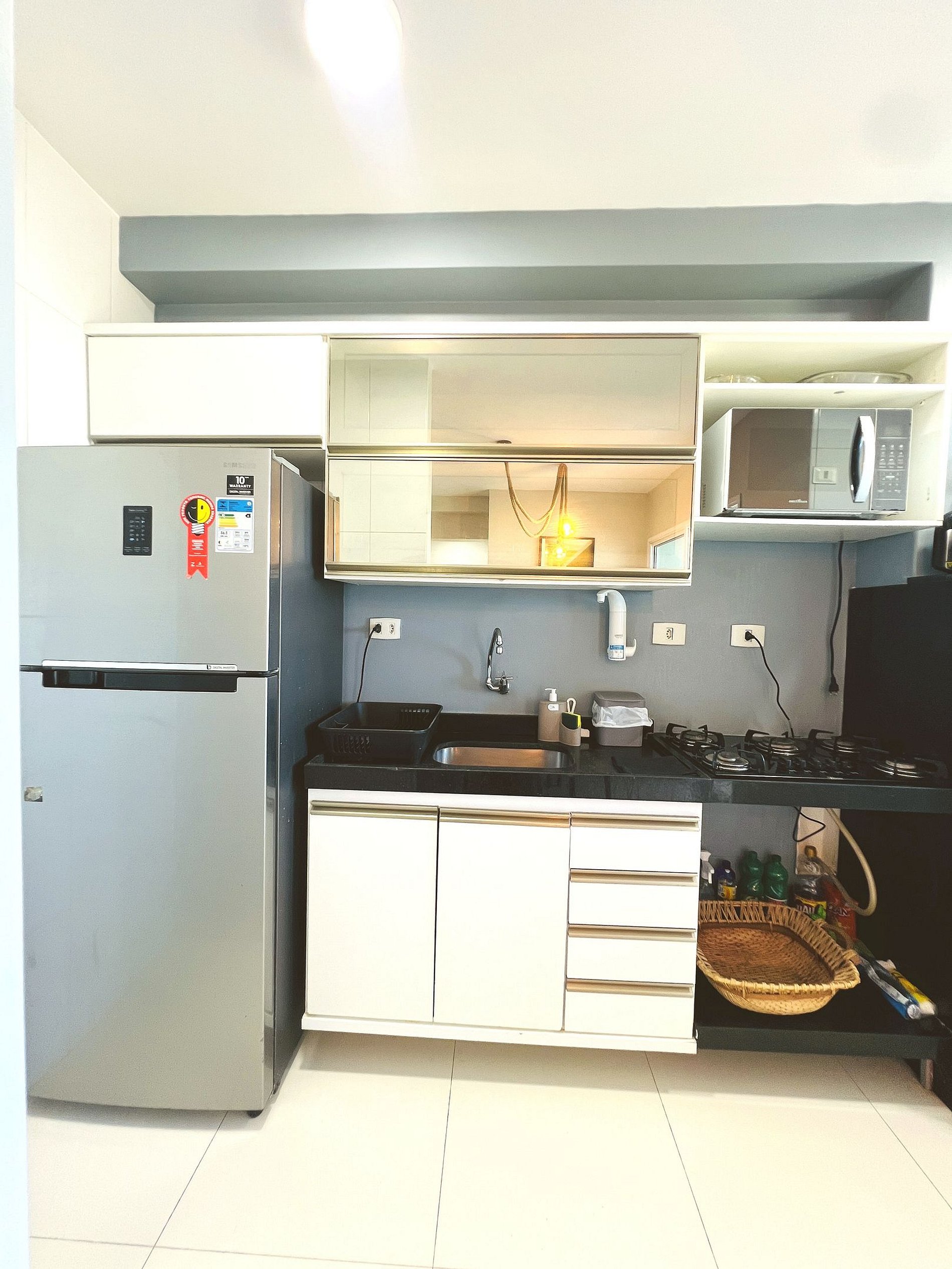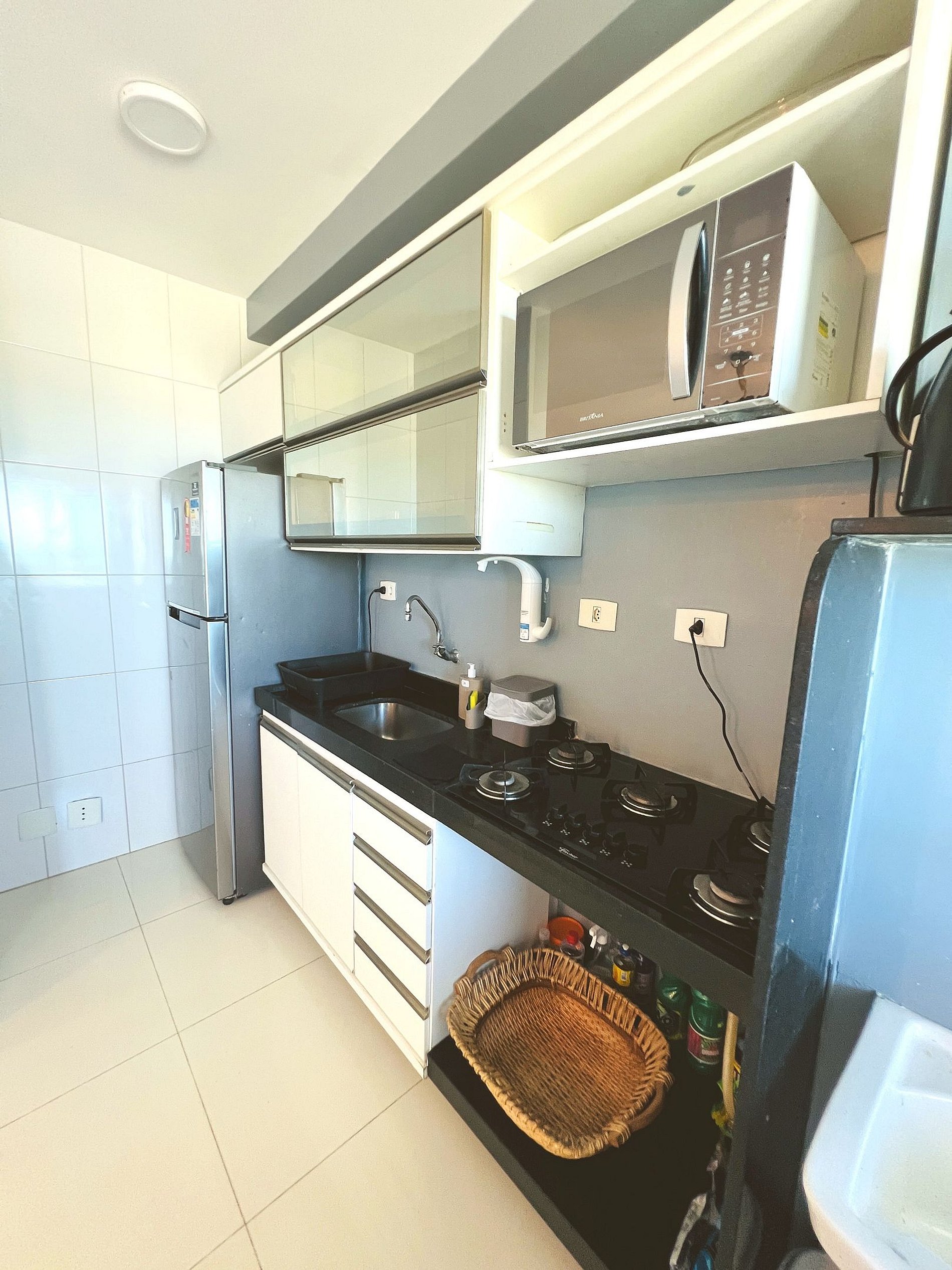 Totalmente equipada para que você prepare suas refeições com praticidade. Conta com geladeira, cooktop 4 bocas, micro-ondas, armários planejados e todos os utensílios básicos. Máquina de lavar roupas disponível, ideal para quem vem aproveitar a praia ou está em estadia mais longa.