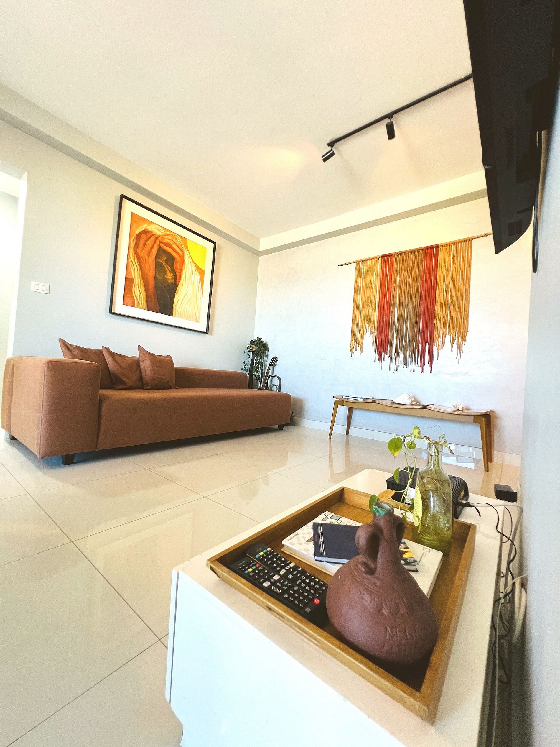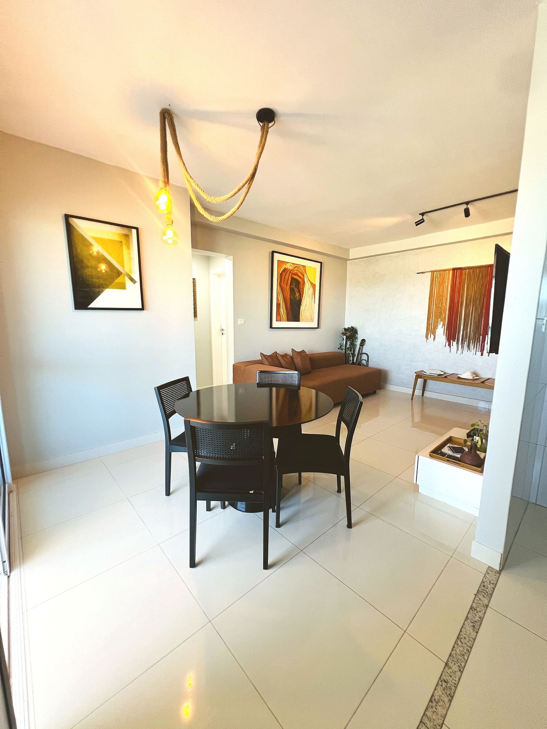 Nosso apartamento no 7º andar do Inovatto Atalaia foi pensado para que você se sinta em casa desde o primeiro momento. A decoração contemporânea com toques artesanais, a brisa constante do andar alto e a vista para o mar criam o cenário perfeito para suas férias ou viagem a trabalho.