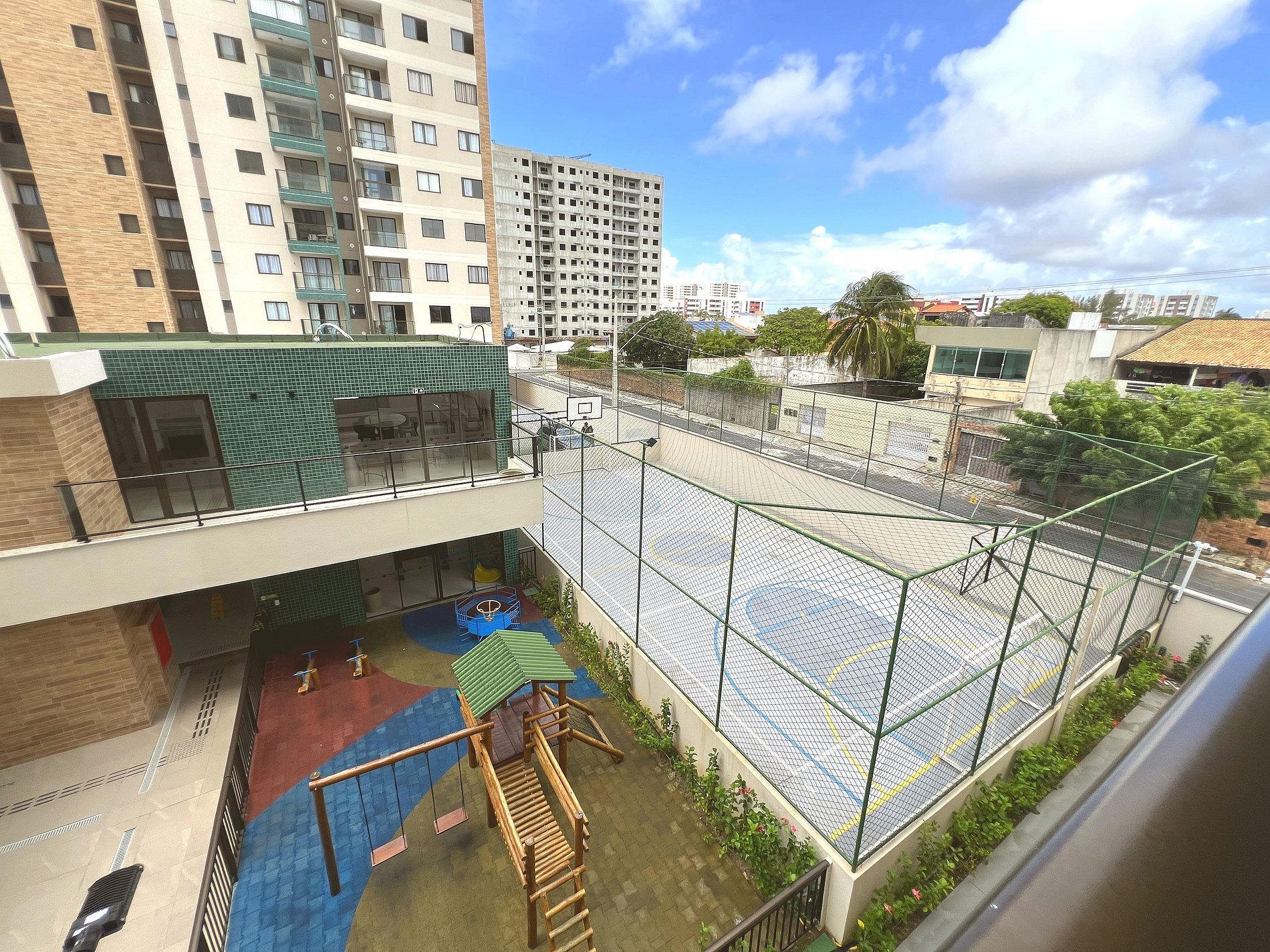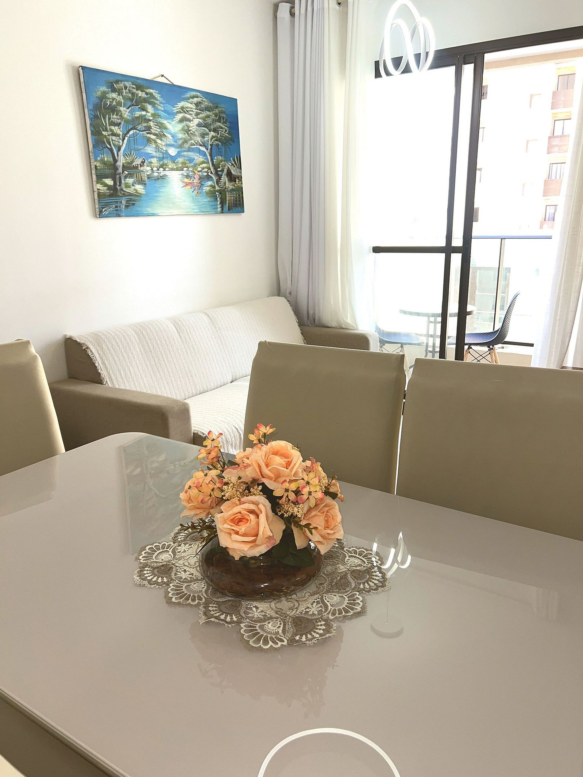 Seu espaço para começar o dia com tranquilidade. A varanda conta com mesinha e cadeiras, ideal para tomar um café apreciando a vista do condomínio e sentindo a brisa que vem do mar. Daqui você já avista a quadra e o playground, perfeito para acompanhar as crianças enquanto relaxa.