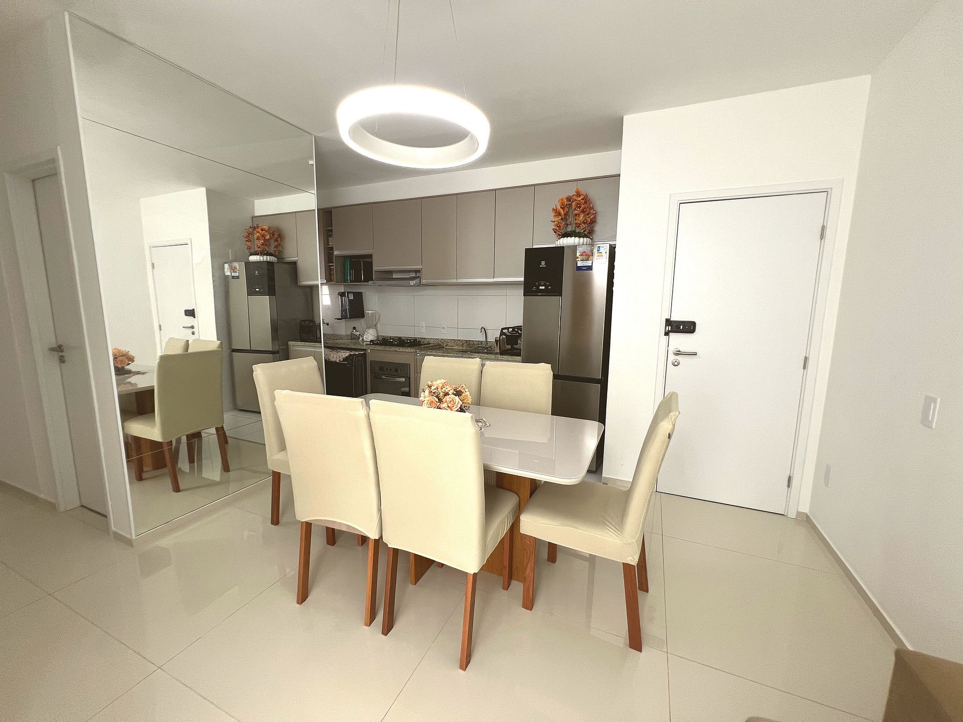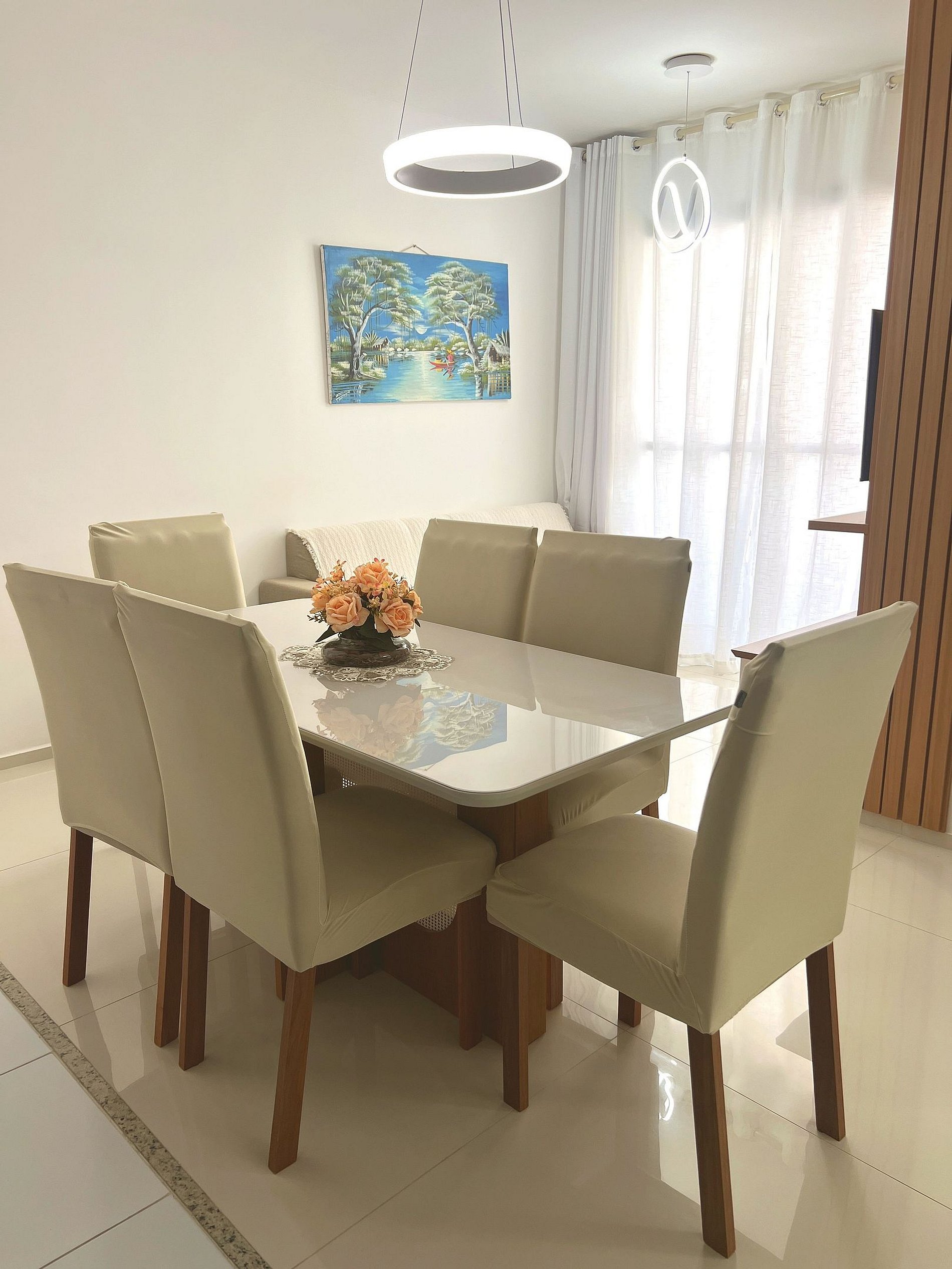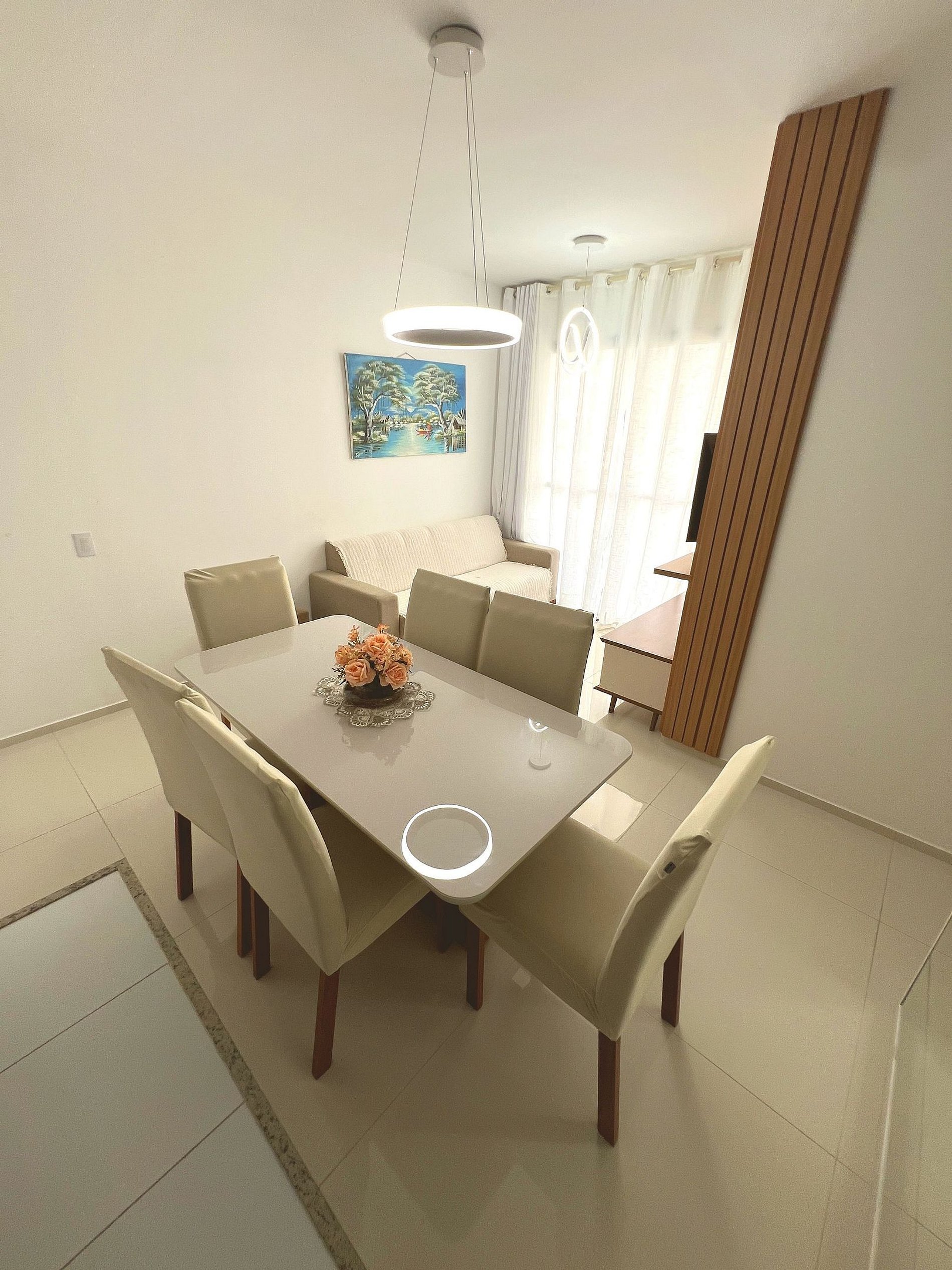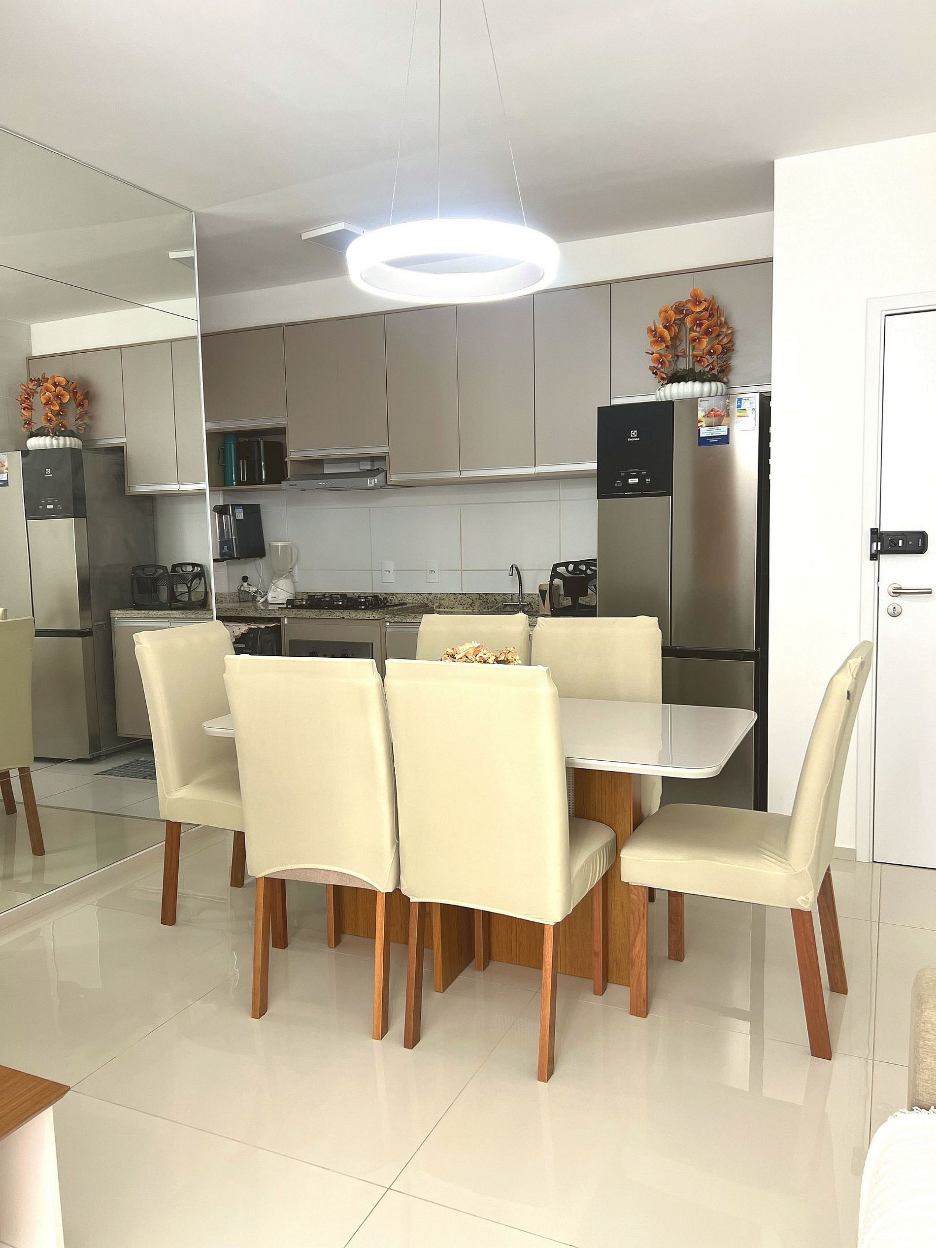 ● Mesa de jantar com 6 cadeiras, ideal para refeições em família.
