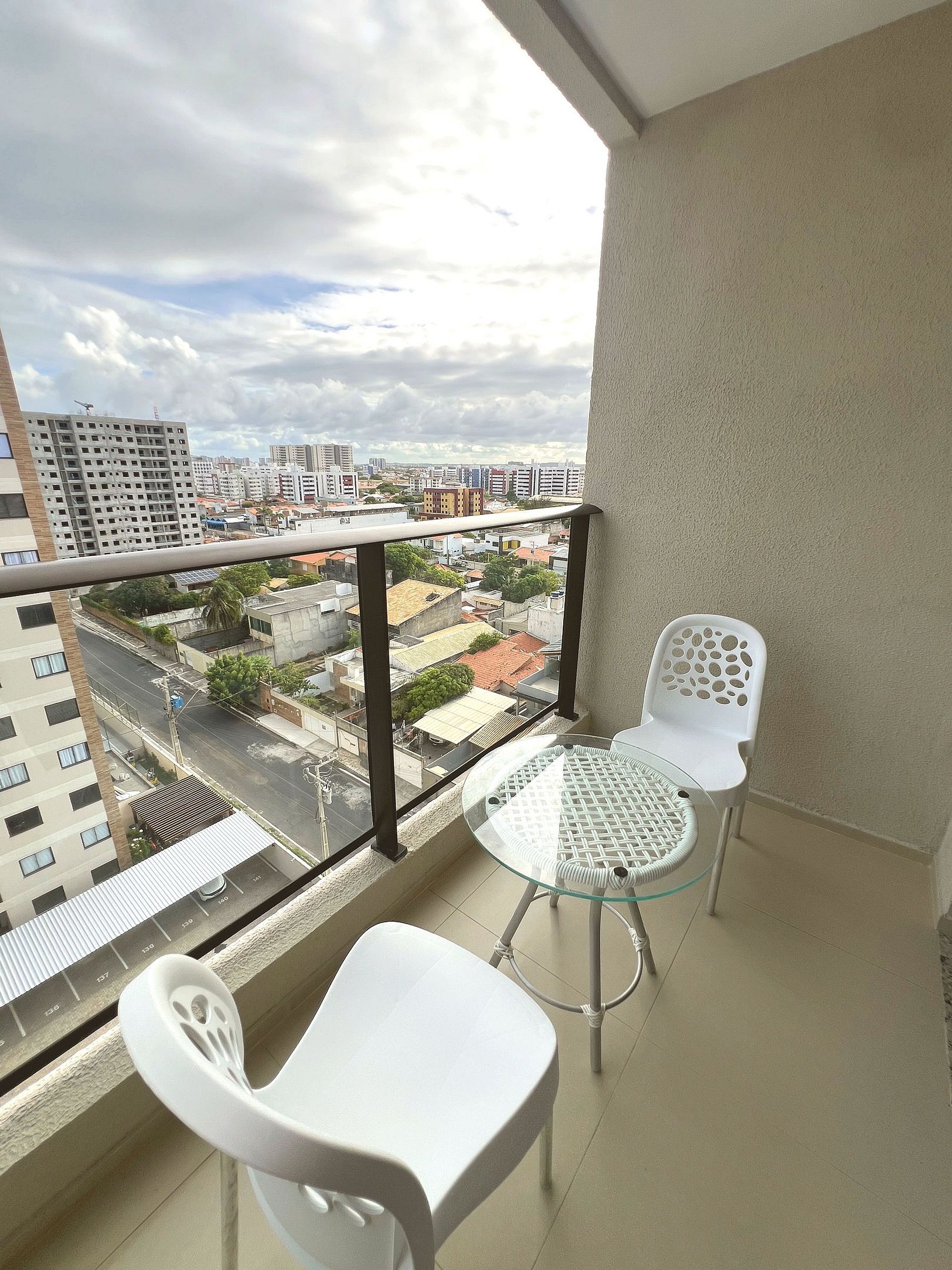 O destaque do apartamento! No 9º andar, a varanda oferece uma vista aberta da cidade e ventilação natural privilegiada. Equipada com mesinha e cadeiras, é o cenário perfeito para tomar seu café da manhã sentindo a brisa ou apreciar o entardecer aracajuano.