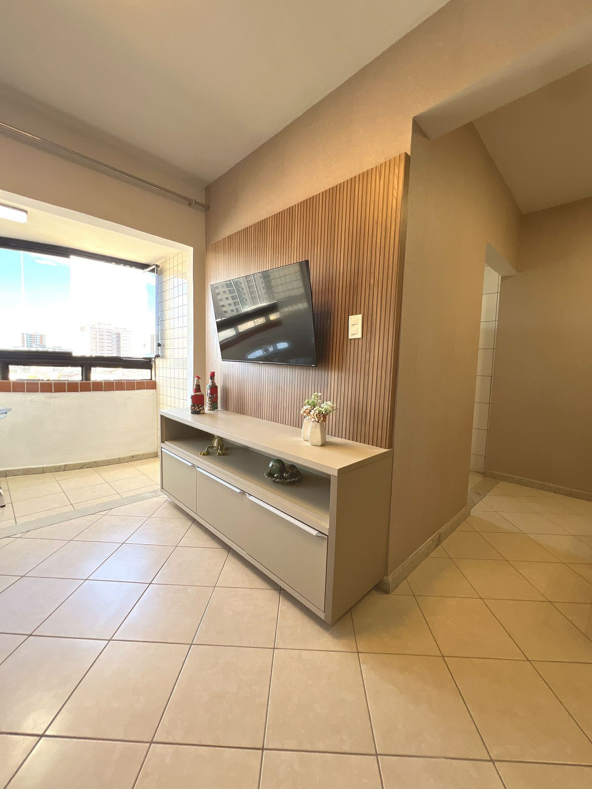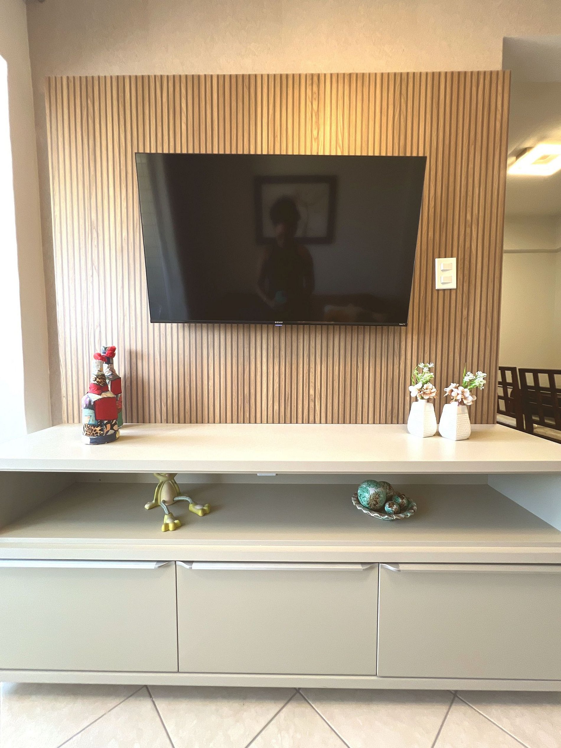 ● Smart TV na parede para seu entretenimento.