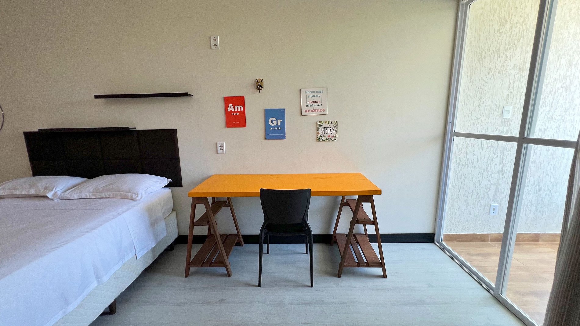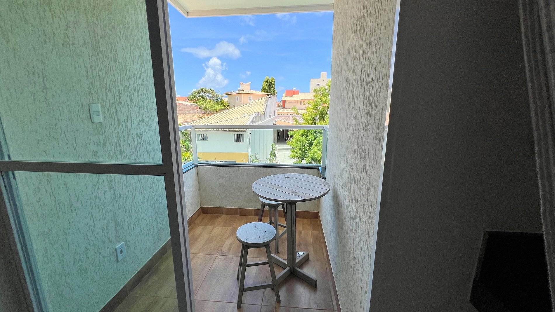 E o melhor? Com uma mesinha na área externa de frente para a piscina compartilhada, te espera para momentos inesquecíveis ao ar livre.