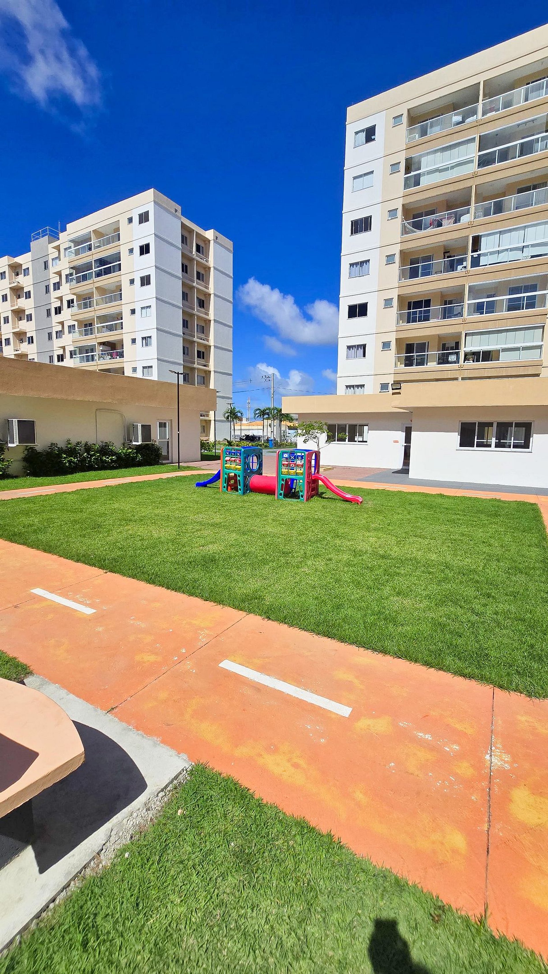 Viva dias incríveis neste apê encantador em condomínio estilo resort! 2 quartos com ar-condicionado (casal + 2 solteiros), varanda arejada, cozinha completa e máquina de lavar. Curta uma estrutura de lazer completa: piscina, churrasqueira, mercadinho, pista de cooper, espaço kids e pet. Conforto, praticidade e diversão te esperam!