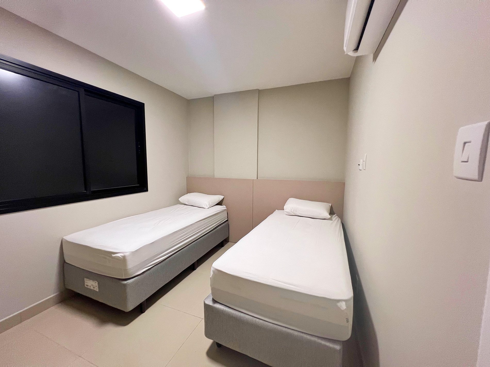 Climatização em todos os quartos, colchões de qualidade, cozinha completa com todos os utensílios necessários, Smart TV, Wi-Fi rápido e máquina de lavar roupas são apenas alguns dos itens que garantem uma estadia prática e agradável. O espaço é ideal tanto para quem busca relaxar quanto para quem precisa manter uma rotina durante a viagem. O prédio com elevador, portaria e vagas cobertas também traz segurança e comodidade. Tudo foi preparado para que os hóspedes se sintam verdadeiramente em casa.