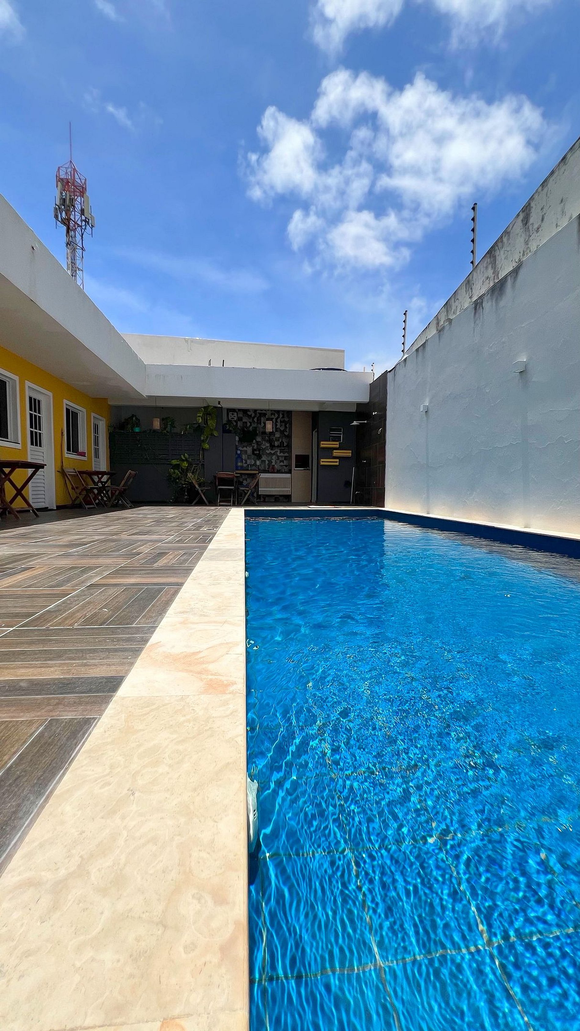 Conta ainda com Wi-Fi, banheiro privativo e uma charmosa área externa com mesinha voltada para a piscina compartilhada — perfeita para curtir momentos relaxantes ao ar livre.
