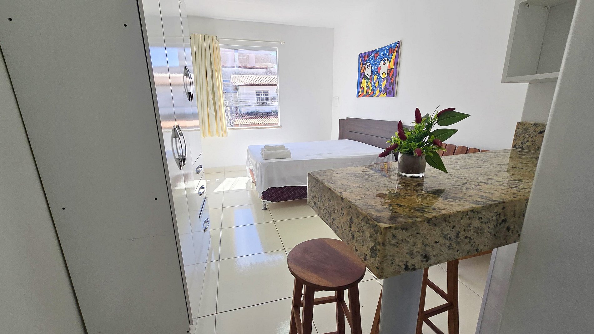 Studio completo com ar condicionado e banheiro privativo a poucos passos da Orla de Atalaia.